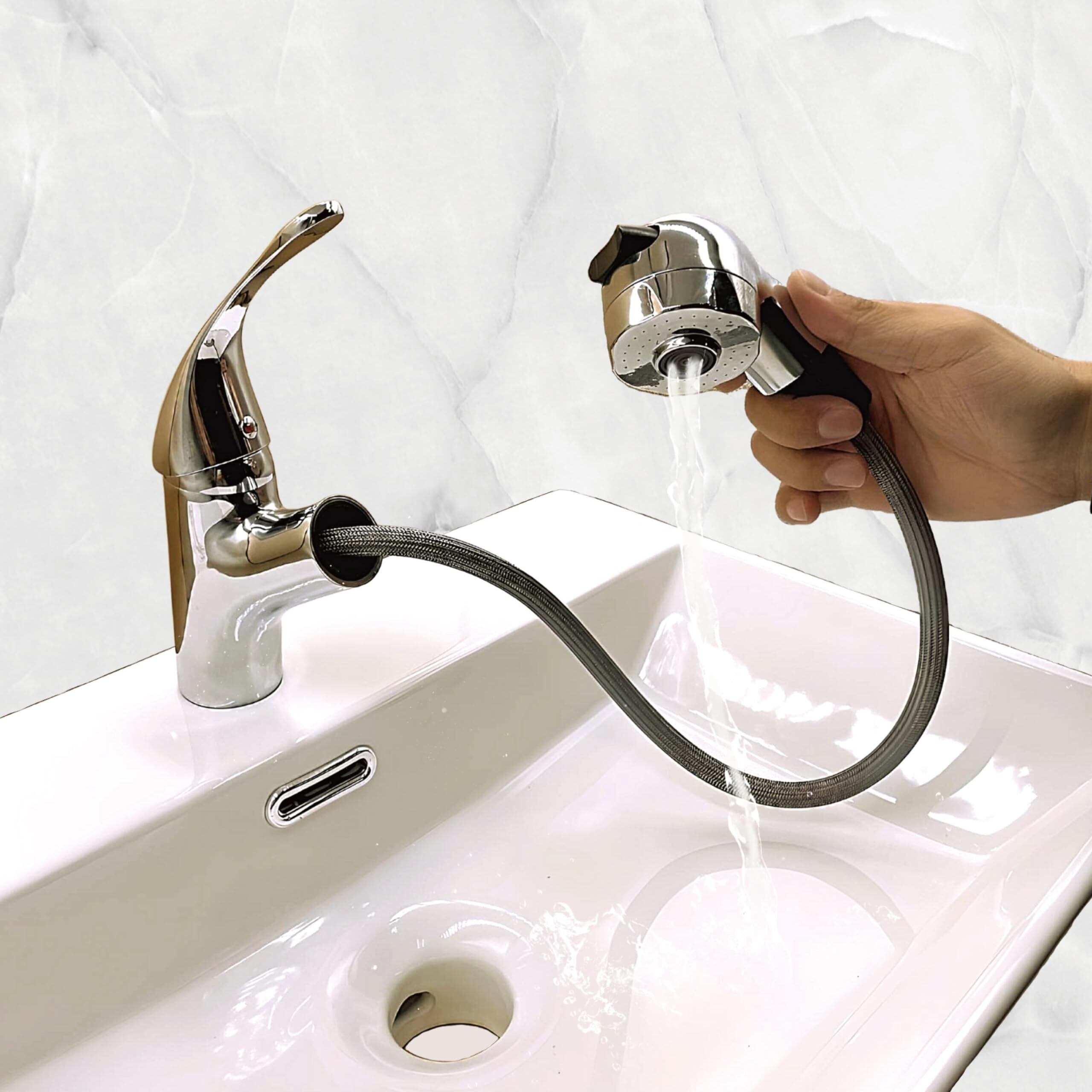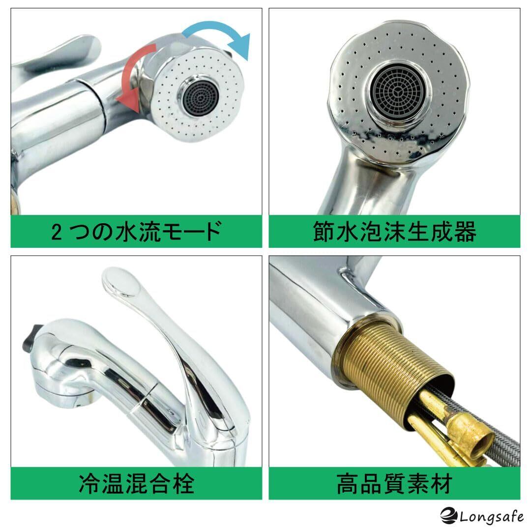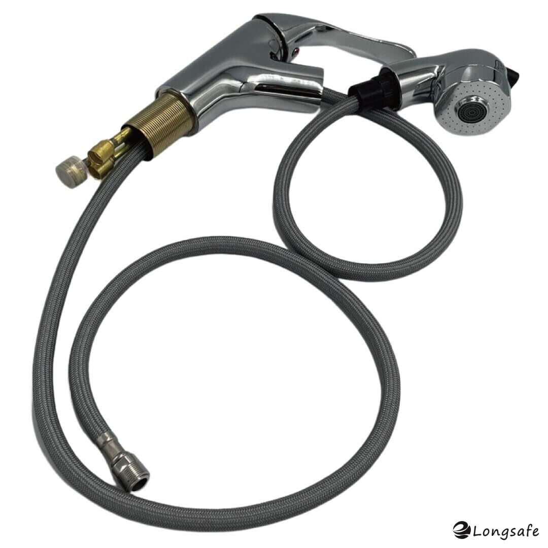 洗面蛇口 混合栓 水栓 シャワー ホース 引き出し式 シングルレバー 切り替え キッチン 蛇口 交換 家庭用 洗面台 浴室 TOTO Lixil SANEI KVK 交換用 ワンホール (MIX02-SI)