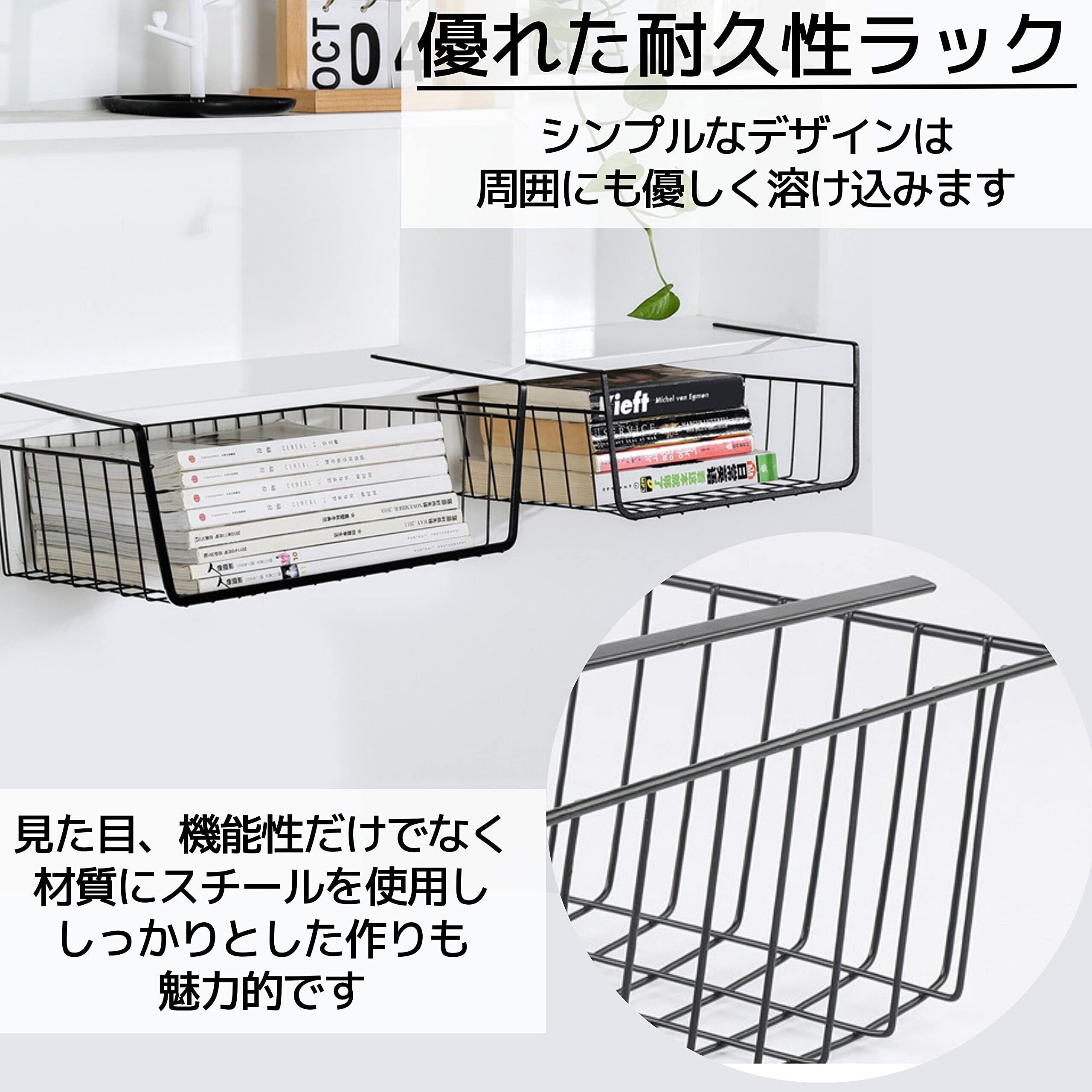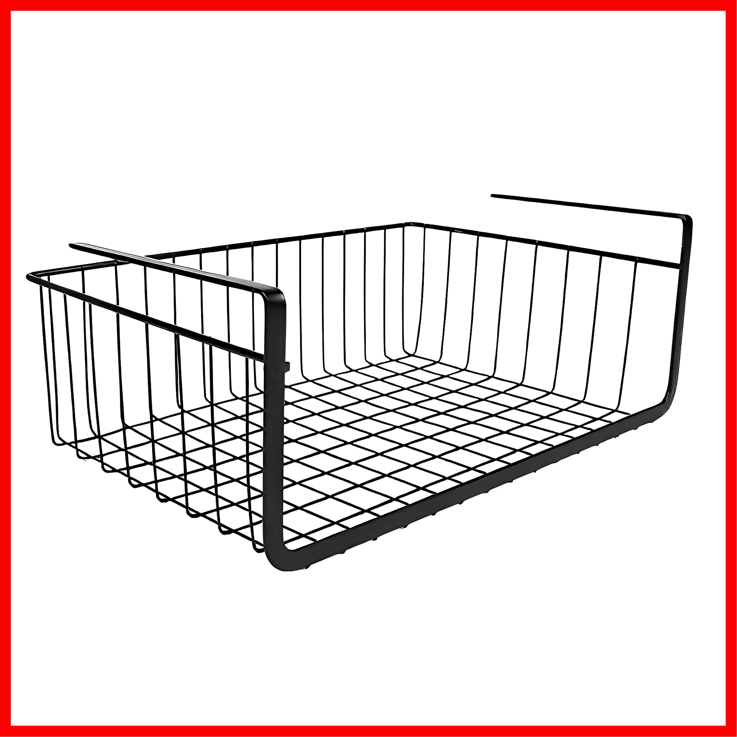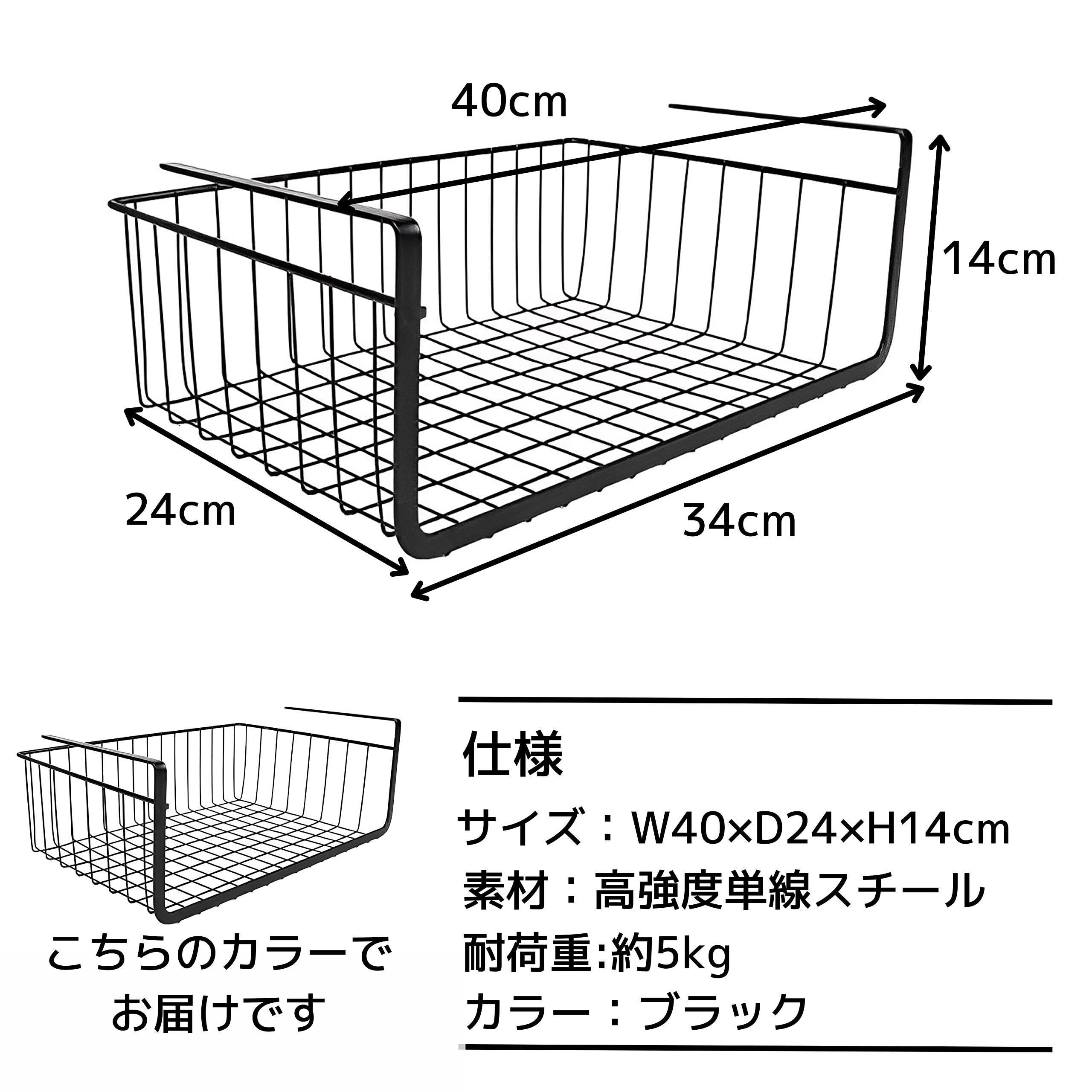 East Leaf 吊り下げ収納 吊り下げ棚 吊り戸棚 収納 カゴ バスケット スチール製 工具不要 キッチン クローゼット 40x24x14cm ブラック