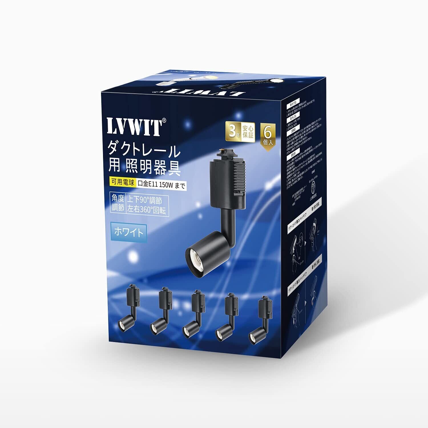 LVWIT ライティングレール用 スポットライト E11口金 ソケット ダクトレール用照明器具 角度調節可能 ブラック 6個セット