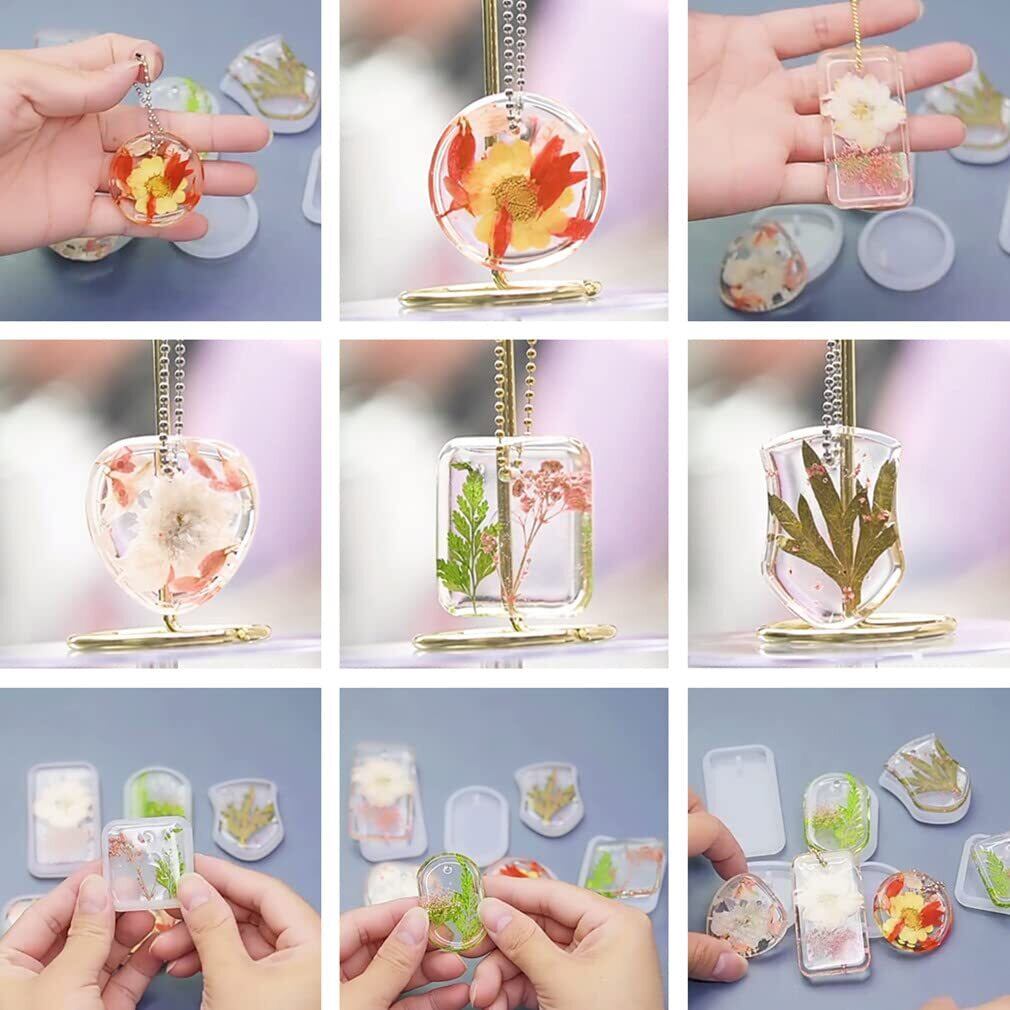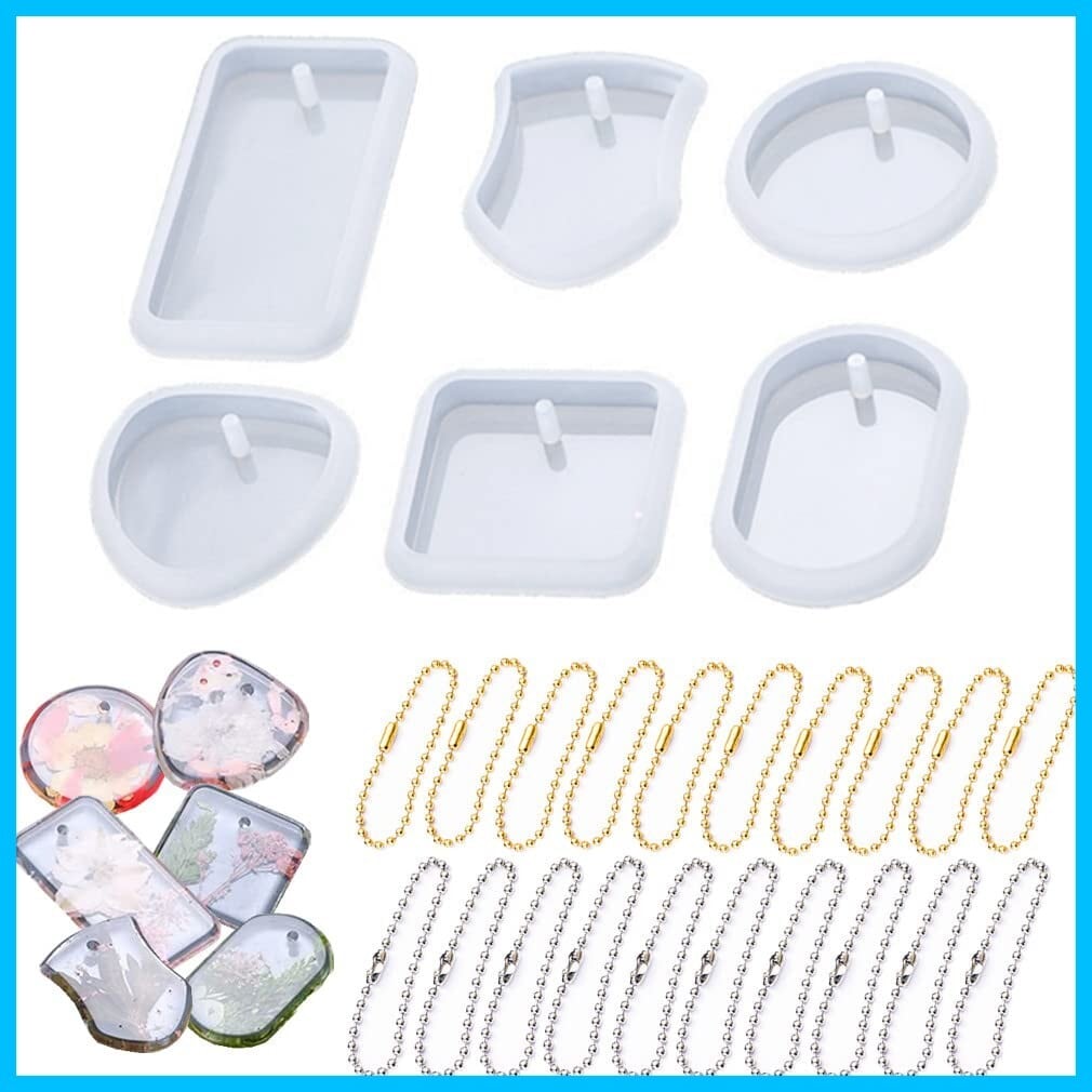 Morices 6個 シリコーン レジン 型 と 20個 ボールチェーン、 小さい ジュエリーペンダント 鋳造樹脂型、DIY エポキシ キーホルダーモールド にとって DIYクラフトプロジェクト ジュエリー作り イヤリング