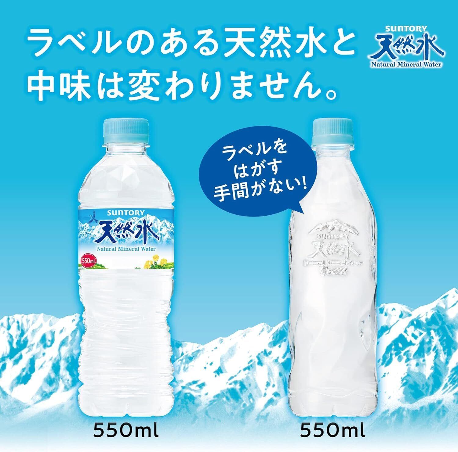 サントリー 天然水 ラベルレス ナチュラルミネラルウォーター 550ml×24本 まとめ売り実施中