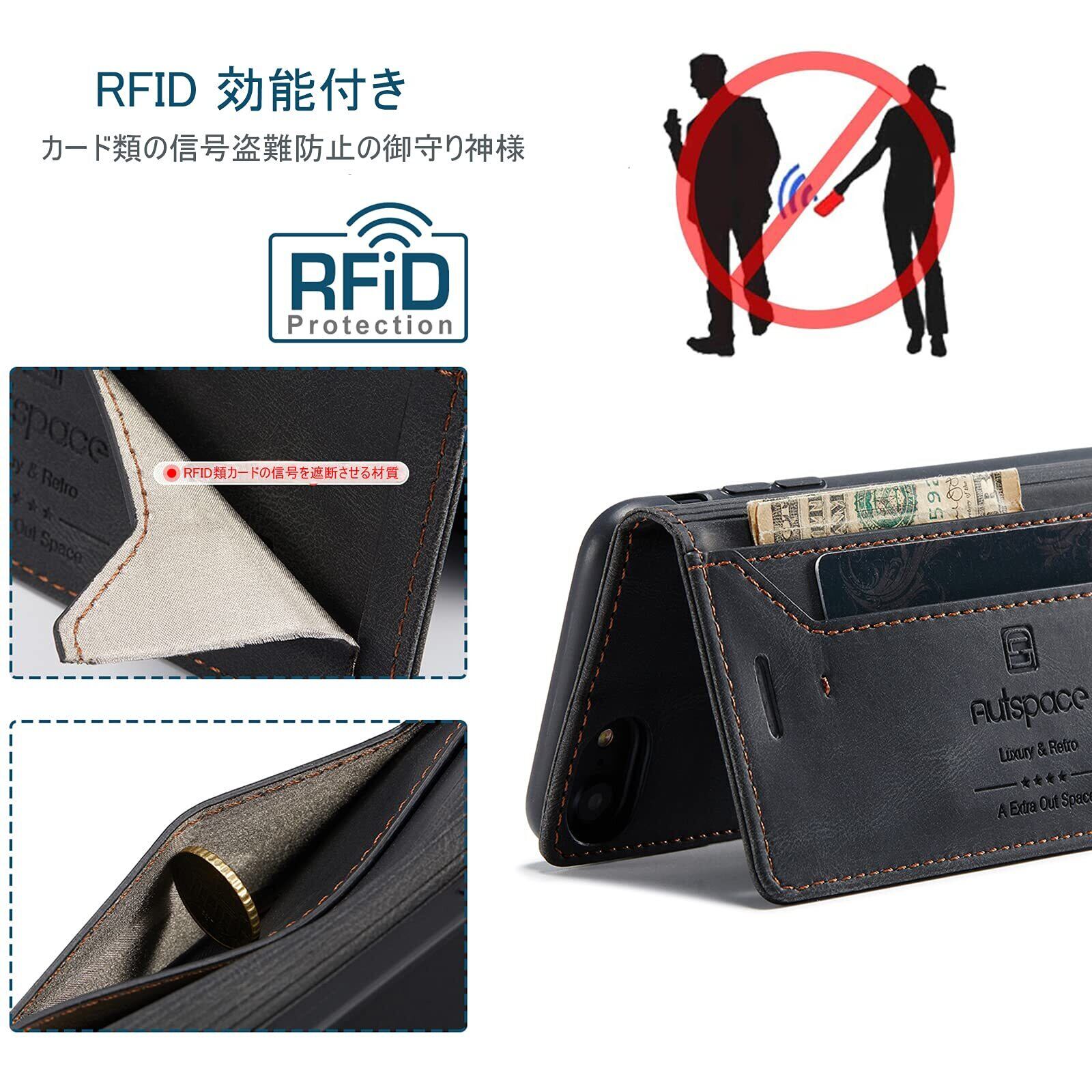 【磁気防止RFID功能 &機能性 4in1】磁気カードを保護するために磁器遮断功能があり、スキミング防止、不正アクセスから大切なクレジットカード、キャッシュカード、IDカードなどの個人情報を守れるRFIDスキミング防止の機能も備えています;①横置きスタンド機能:動画視聴でも手に持つ必要がなく、超楽々動画視聴が可能です;②財布型:ケースの裏側に一つのカードポケットとお札入れのフリーポケット一つあり、ショップでのポイントカード、交通機関でのスムーズな移動をサポートでき、 SUICA / PASMO / ポイントカード / メモ 等収納でき、ちょっととしたお出かけてもこれで十分です;③留め具なし、マグネット内蔵 ベルトなし、片手でも簡単操作できる;④ストラップホールはTPUケースの右下にあり、お好きなストラップを使用し、生活にもっと便利になり、または各種ボタンの使用、カメラ撮影、スピーカーホール等、すべての機能もそのまま立て掛けて稼働します;