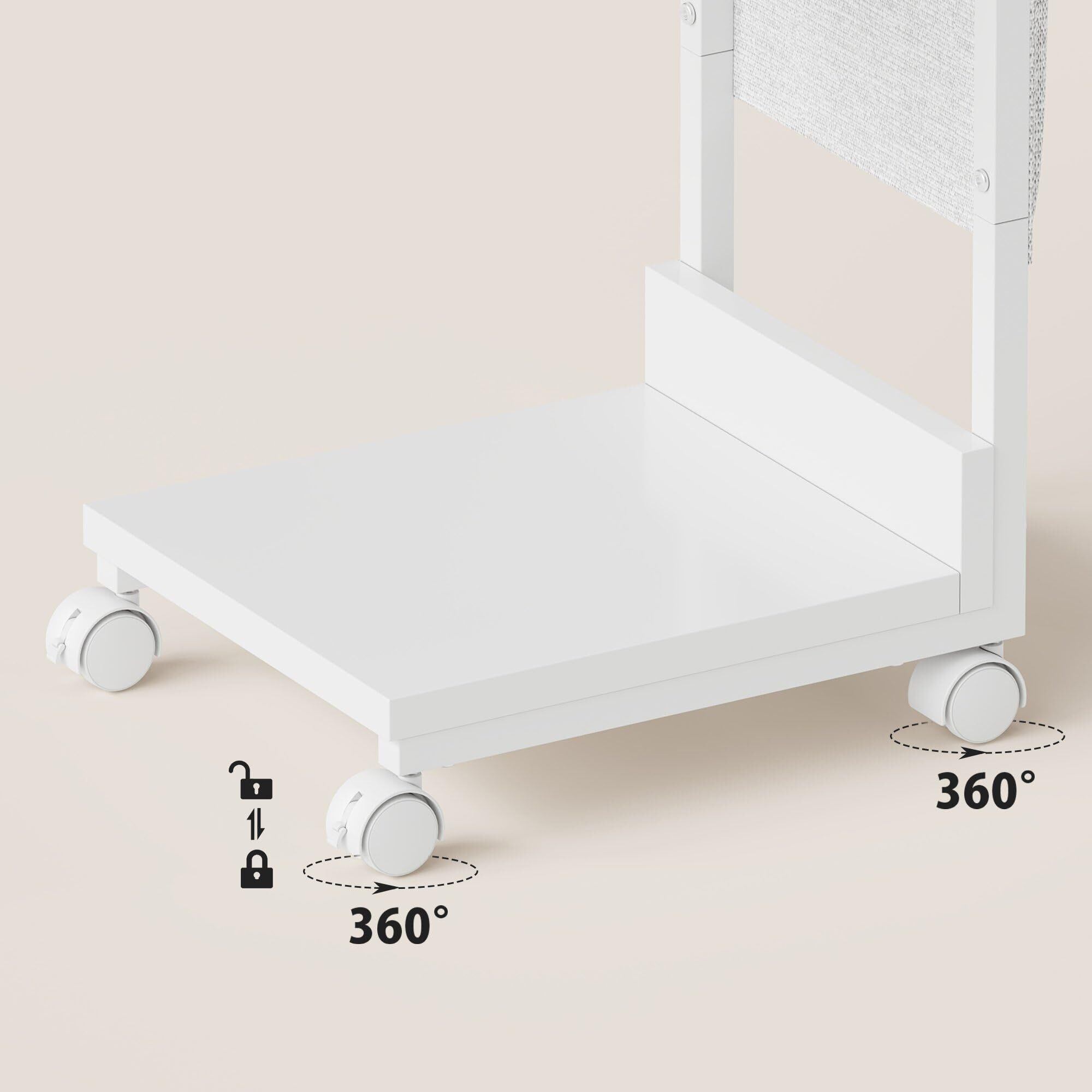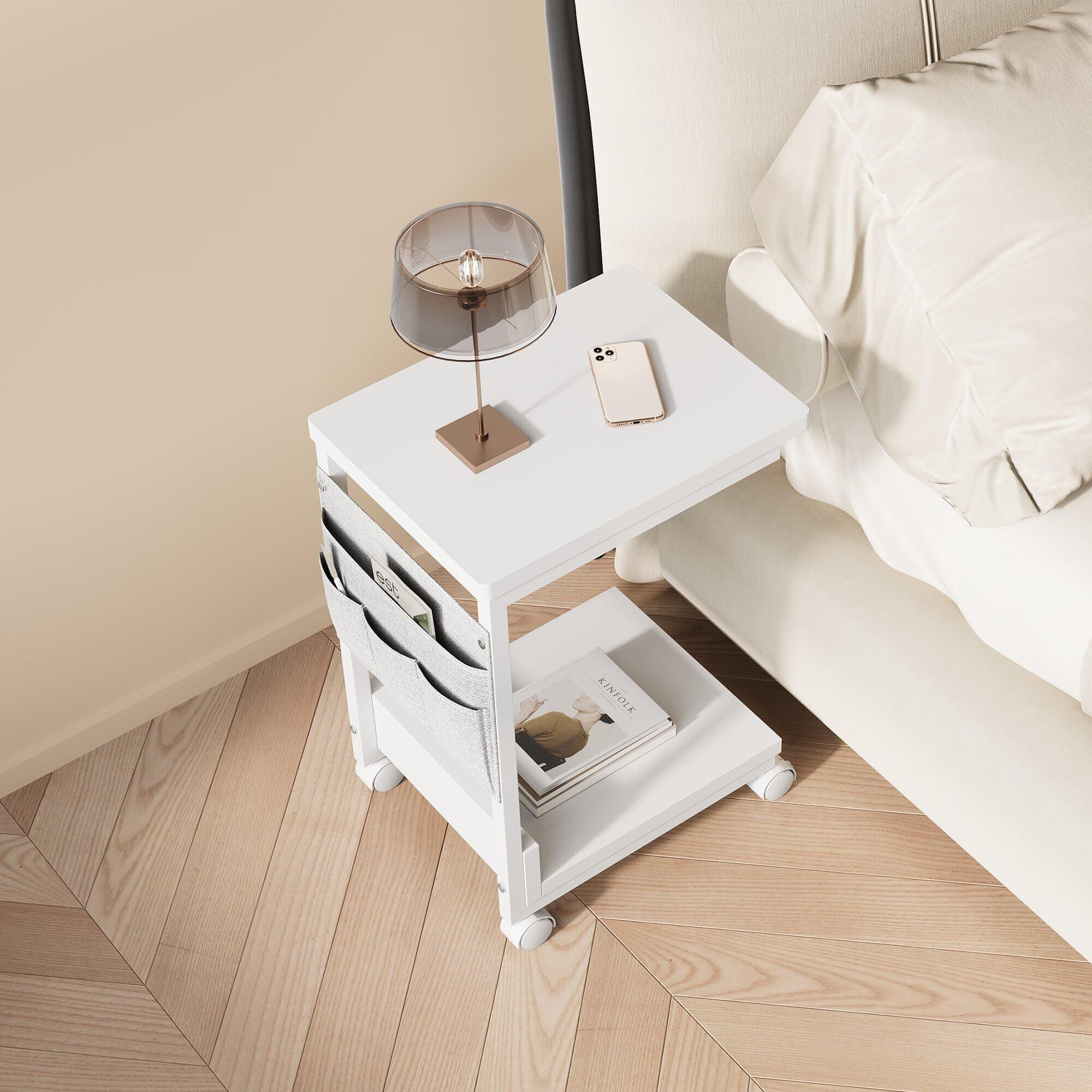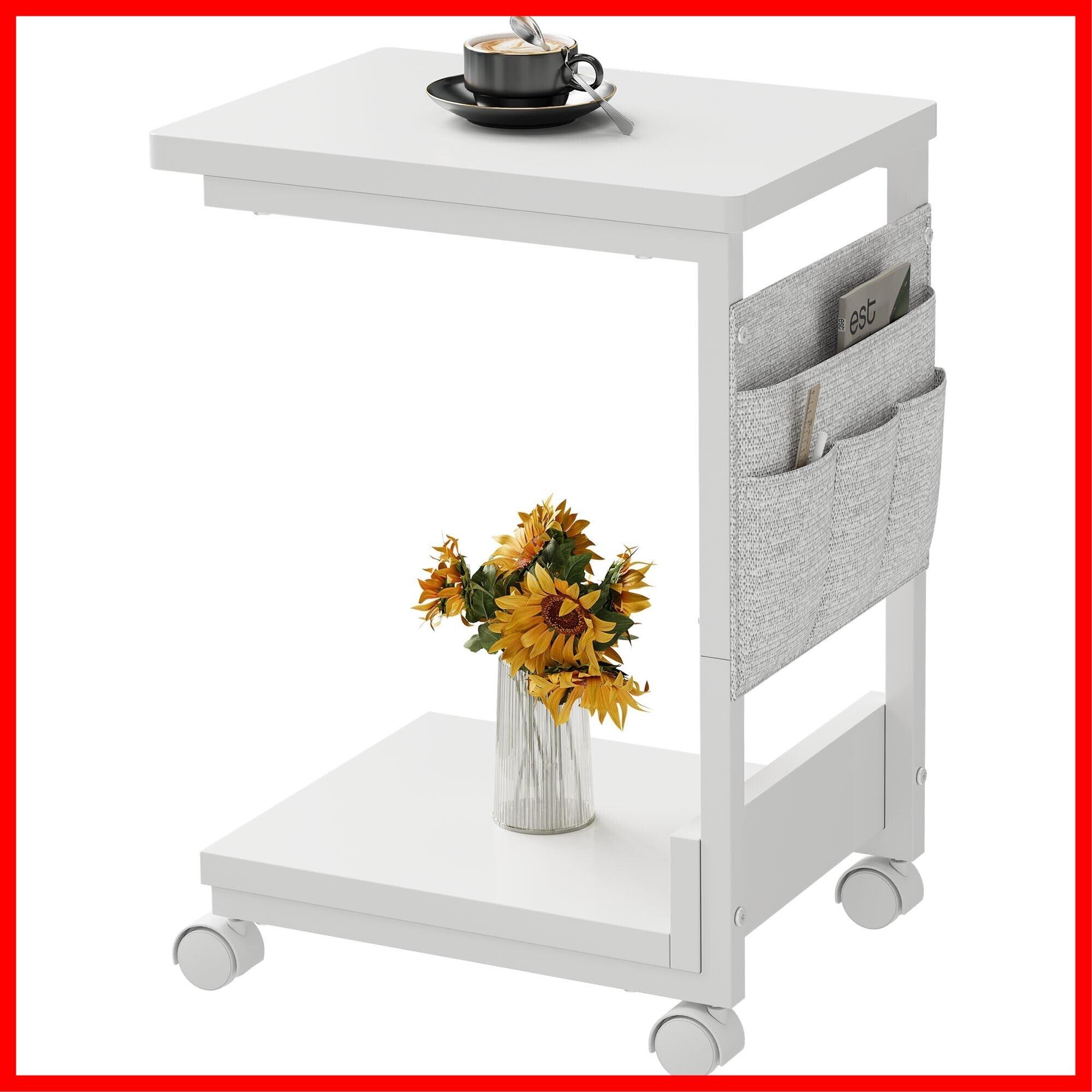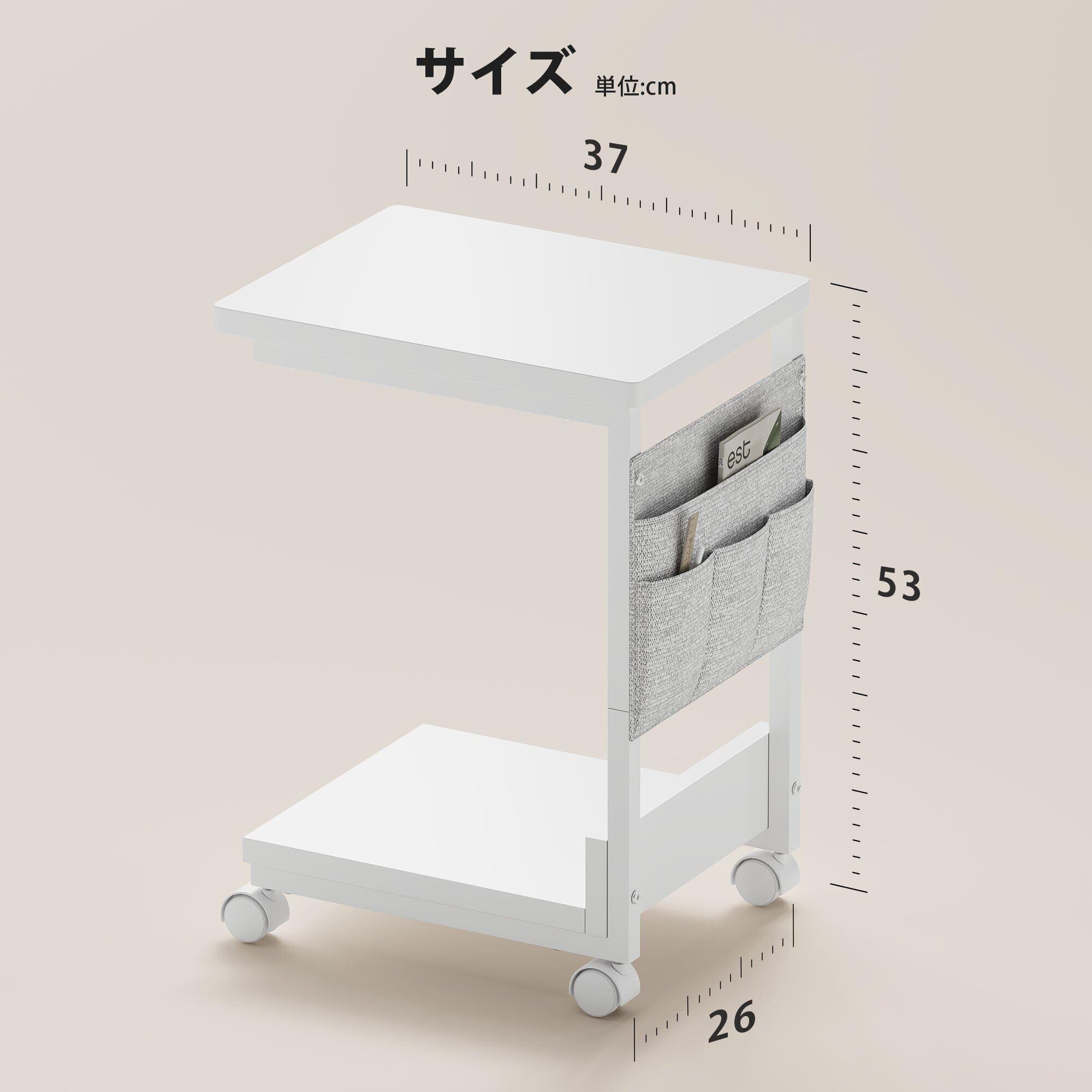 YeTom サイドテーブル キャスター付き サイドテーブル ベッド横 スリム 収納袋付き ソファーテーブル bedside table サイドデスク 幅36.5×奥行26×高さ47.8cm(キャスター約5CM) ホワイト