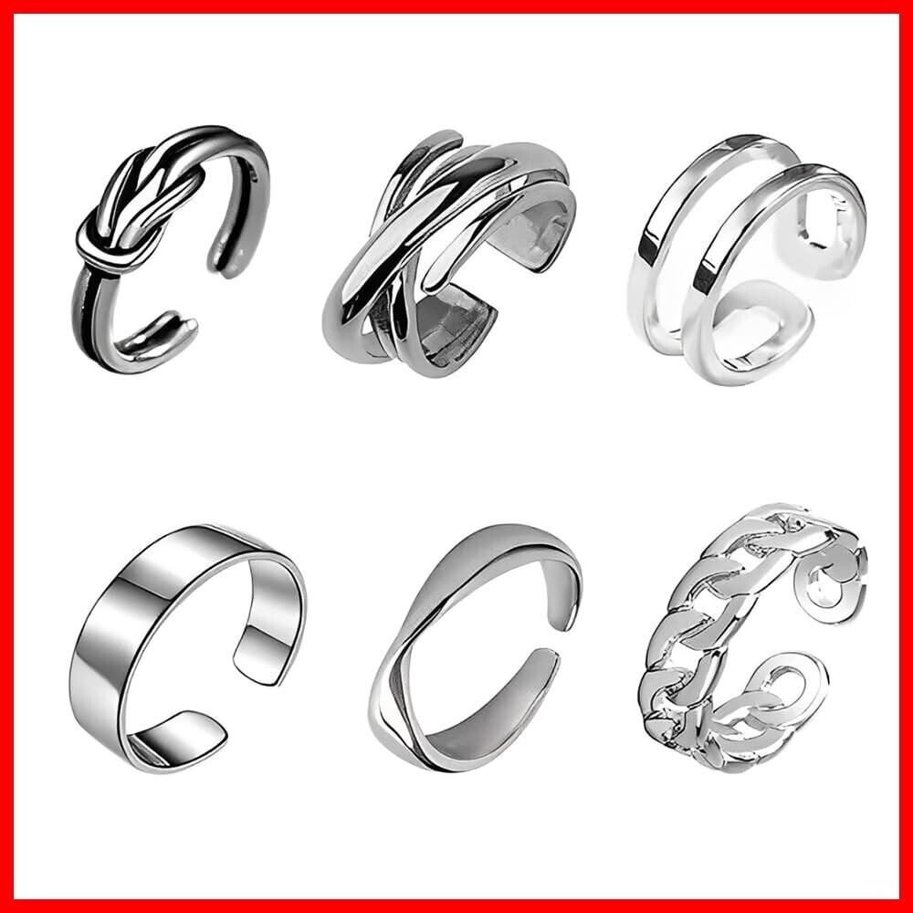6点セット 指輪 レディース メンズ リング アクセサリー ファッションリング シルバー おしゃれ シンプル 調節可能 人気 アクセサリー プレゼント ユニセックス
