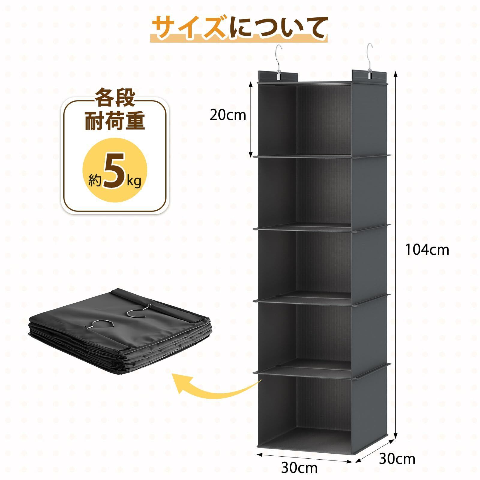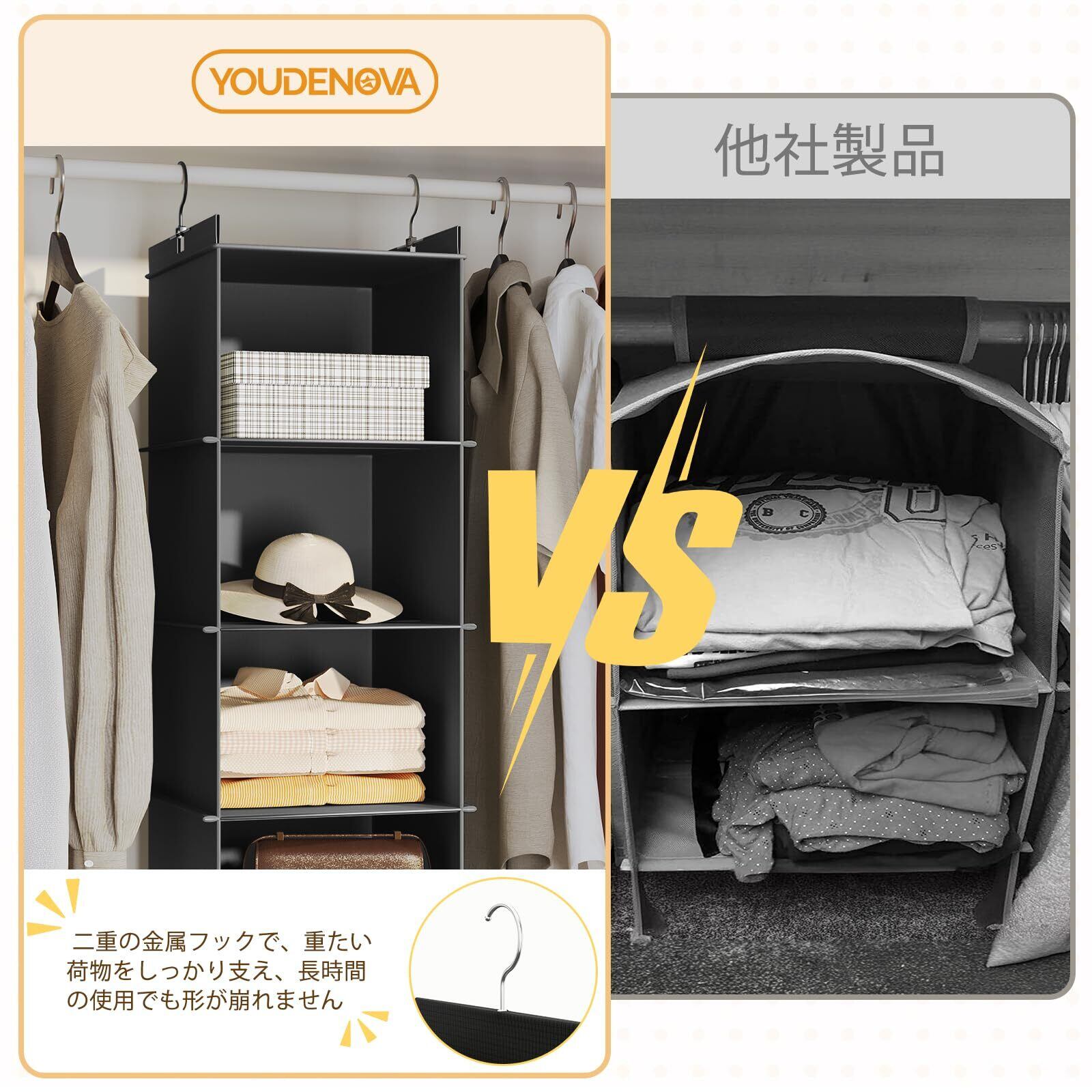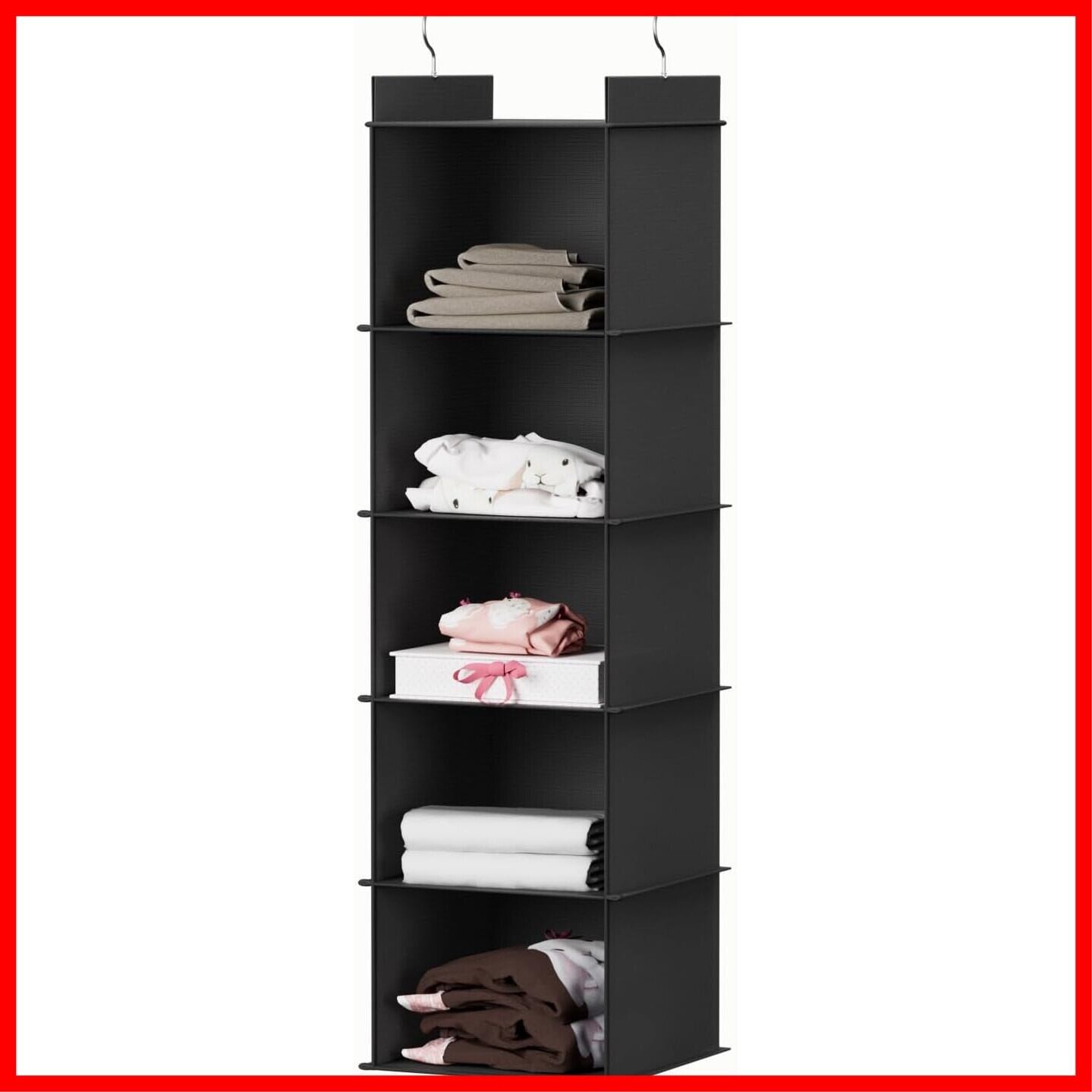 YOUDENOVA 吊り下げ収納 衣類ラック 収納 クローゼット 折りたたみ 旅行 便利グッズ 水洗い可能 防湿防カビ 洋服収納 衣類収納 帽子収納 (ブラック、5段)