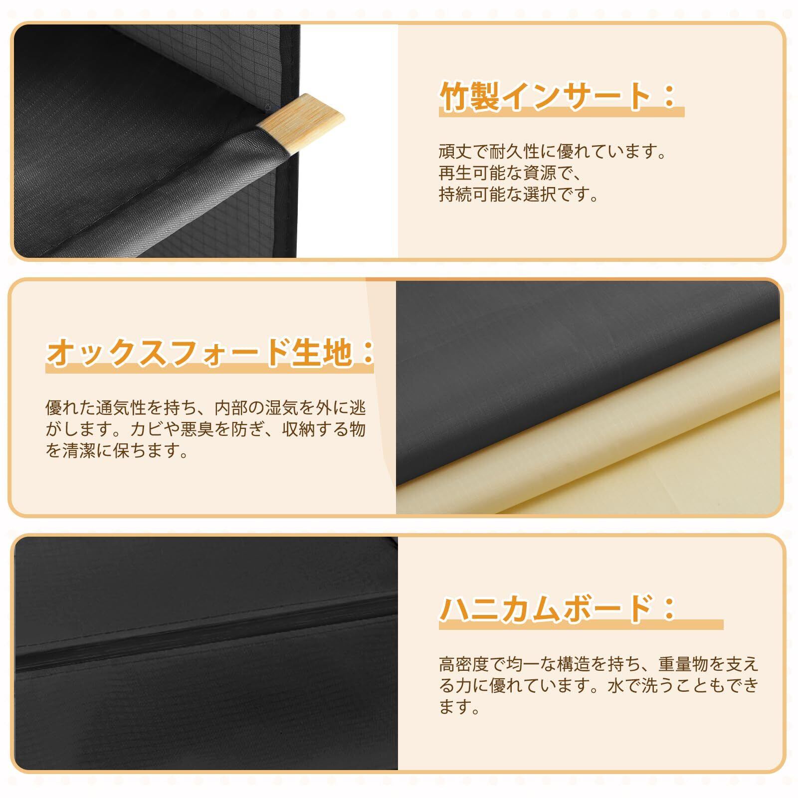 【収納に適用】厚手のしっかりしたポリエステルの生地を採用して、長時間の使用しても大丈夫。ハニカムボードの芯材入りなので、防湿性に優れ、耐力も強い!衣類や雑貨の収納など、様々な用途で大活躍します。