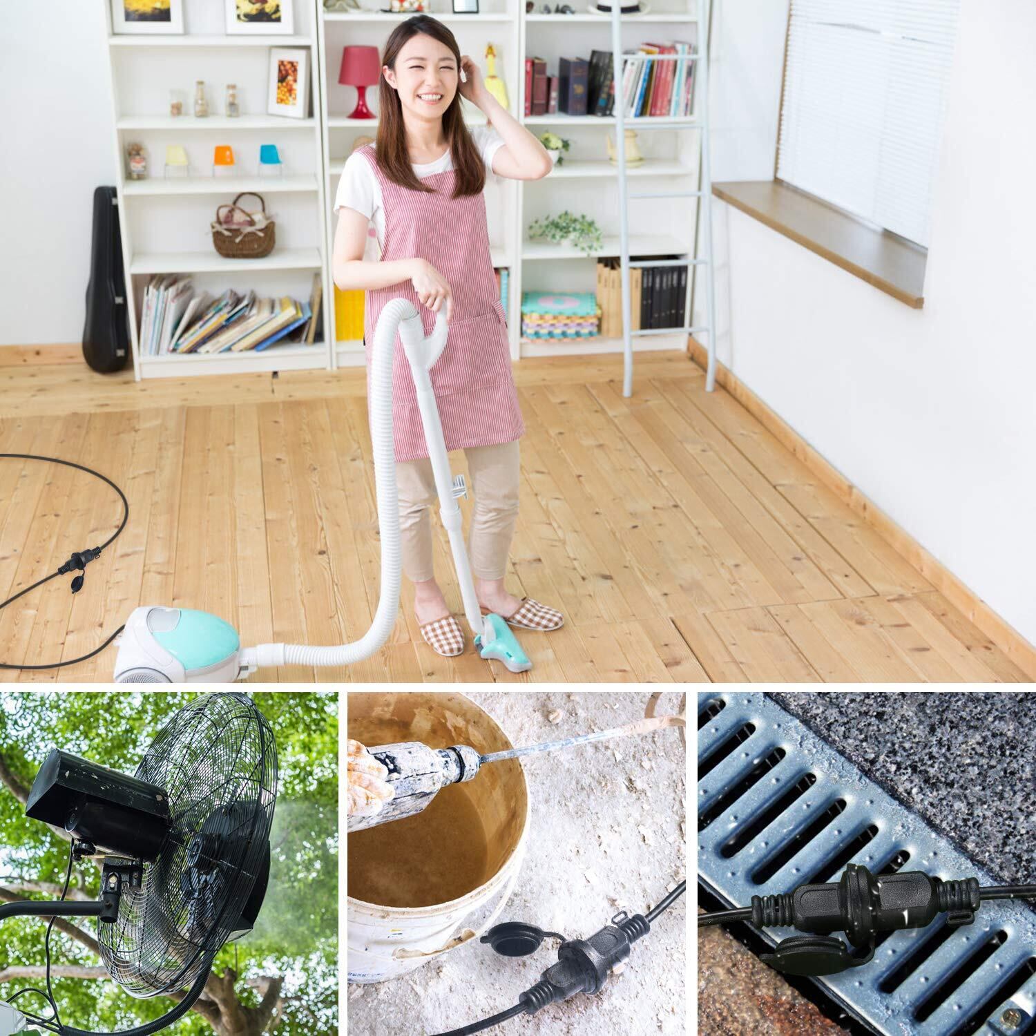 DanYee 防雨型 延長コード エコ 屋外 防雨キャップ付 作業用電源 延長ケーブル (1m)