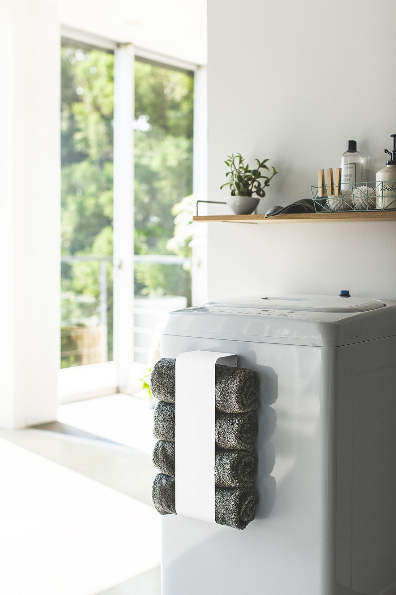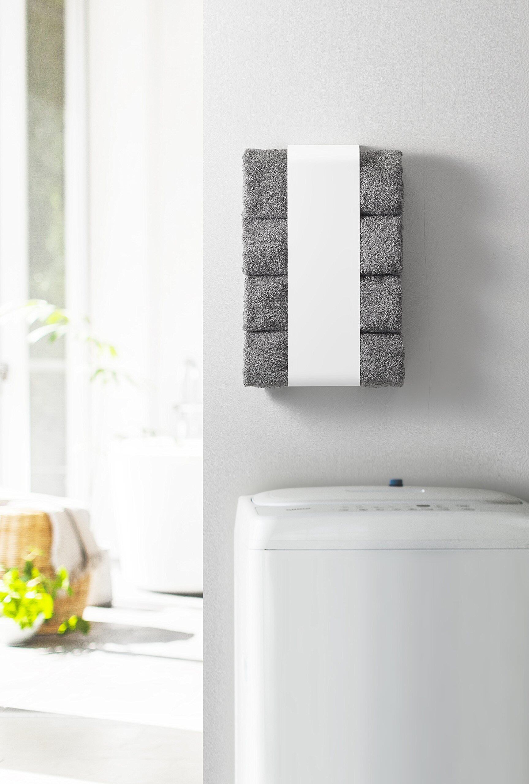 山崎実業 マグネット バスタオル収納 バスタオルストッカー バスタオルホルダー プレート ホワイト 約W12XD9XH40cm Plate 3583