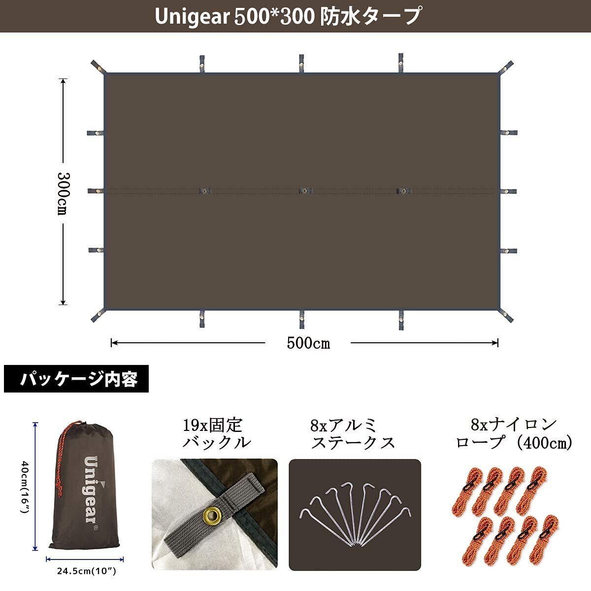 Unigear 防水タープ キャンプ タープ テント 軽量 日除け 高耐水加工 紫外線カット 遮熱 サンシェルター ポータブル 天幕 シェード アウトドア 収納ケース付 2-6人用 4サイズ (ブラウン, XXL(300*500))