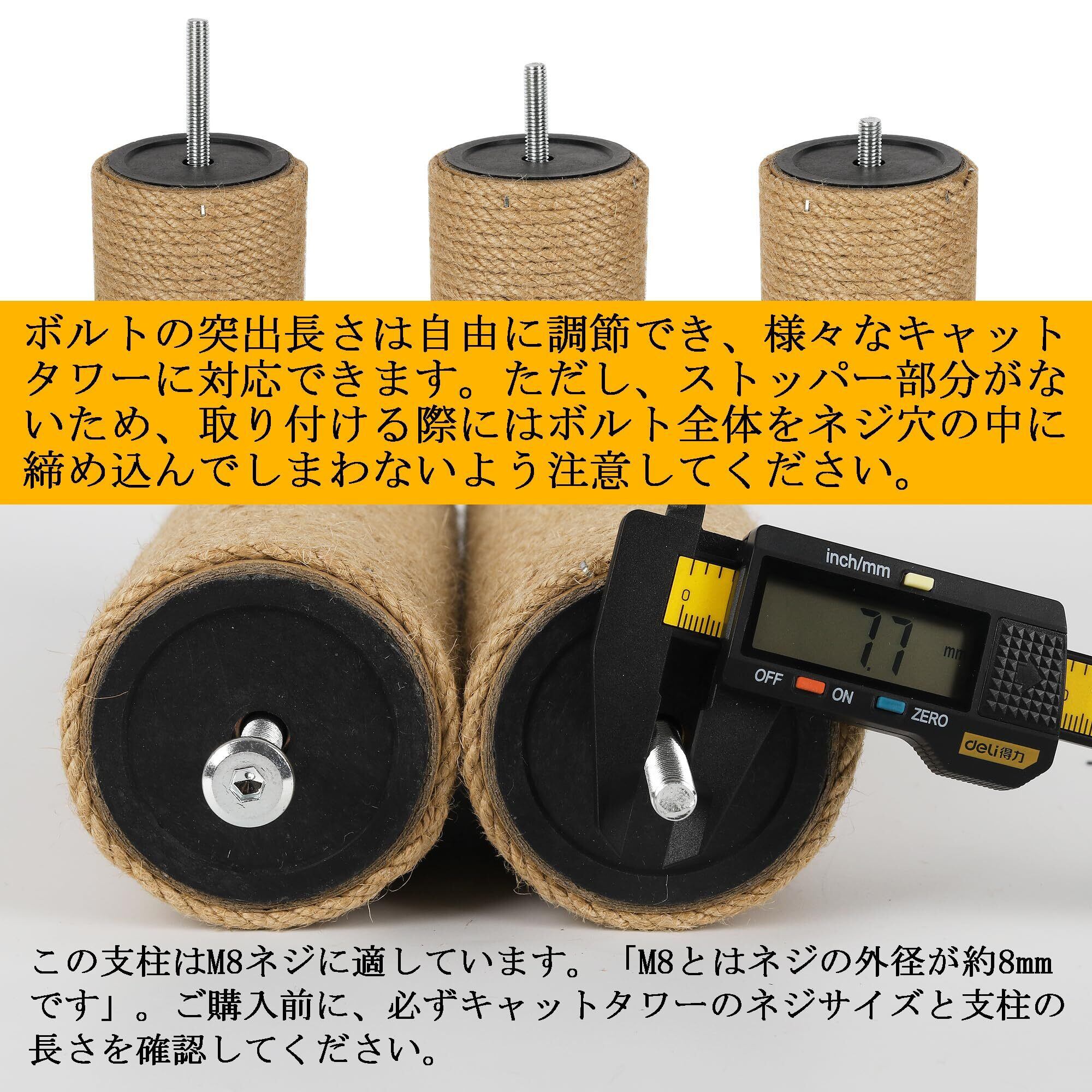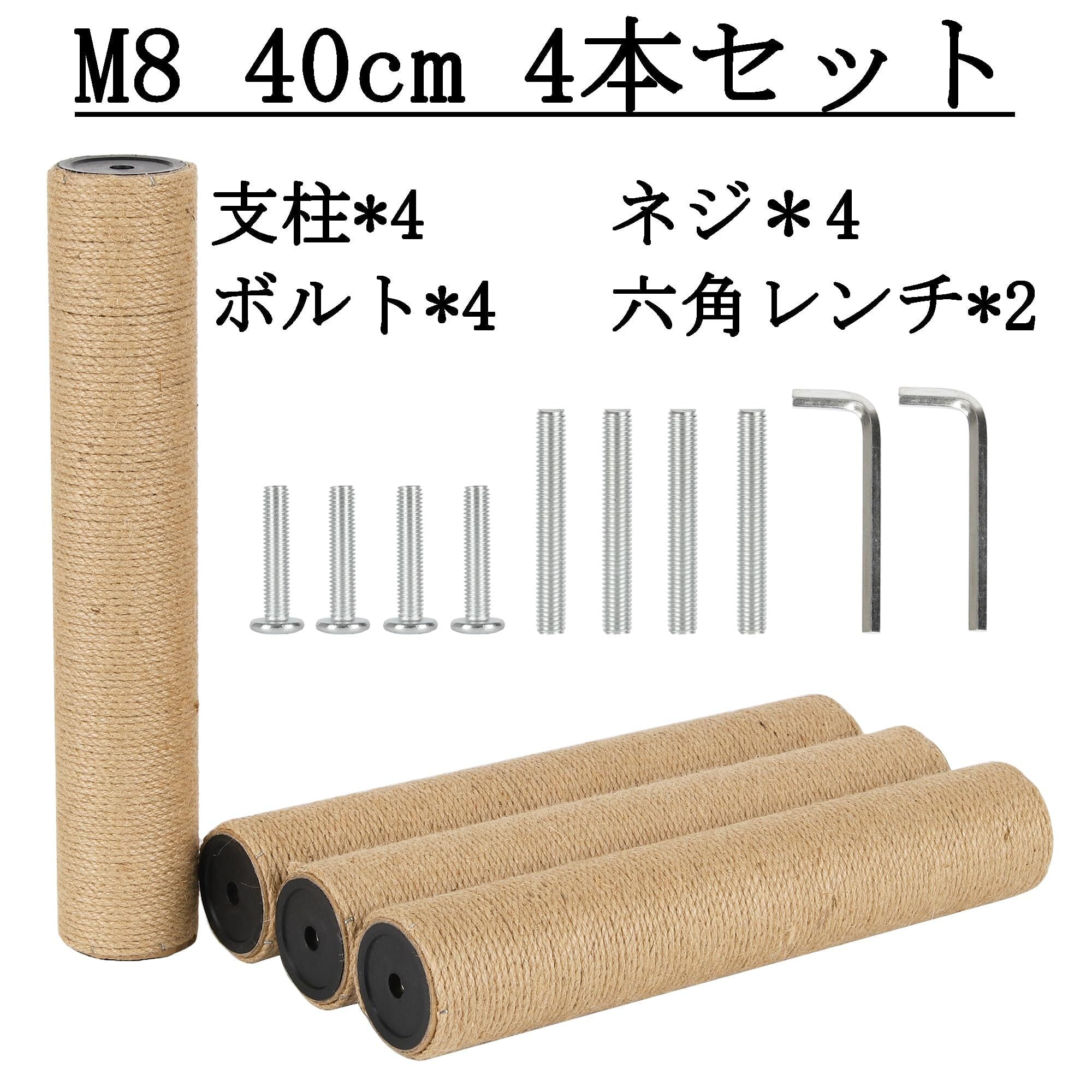 ECCIBOUN 4本セット 直径7.3cm キャットタワー 交換 柱 猫 爪研ぎ ポール 替え 麻柱 麻縄 (40cm*4本, M8)
