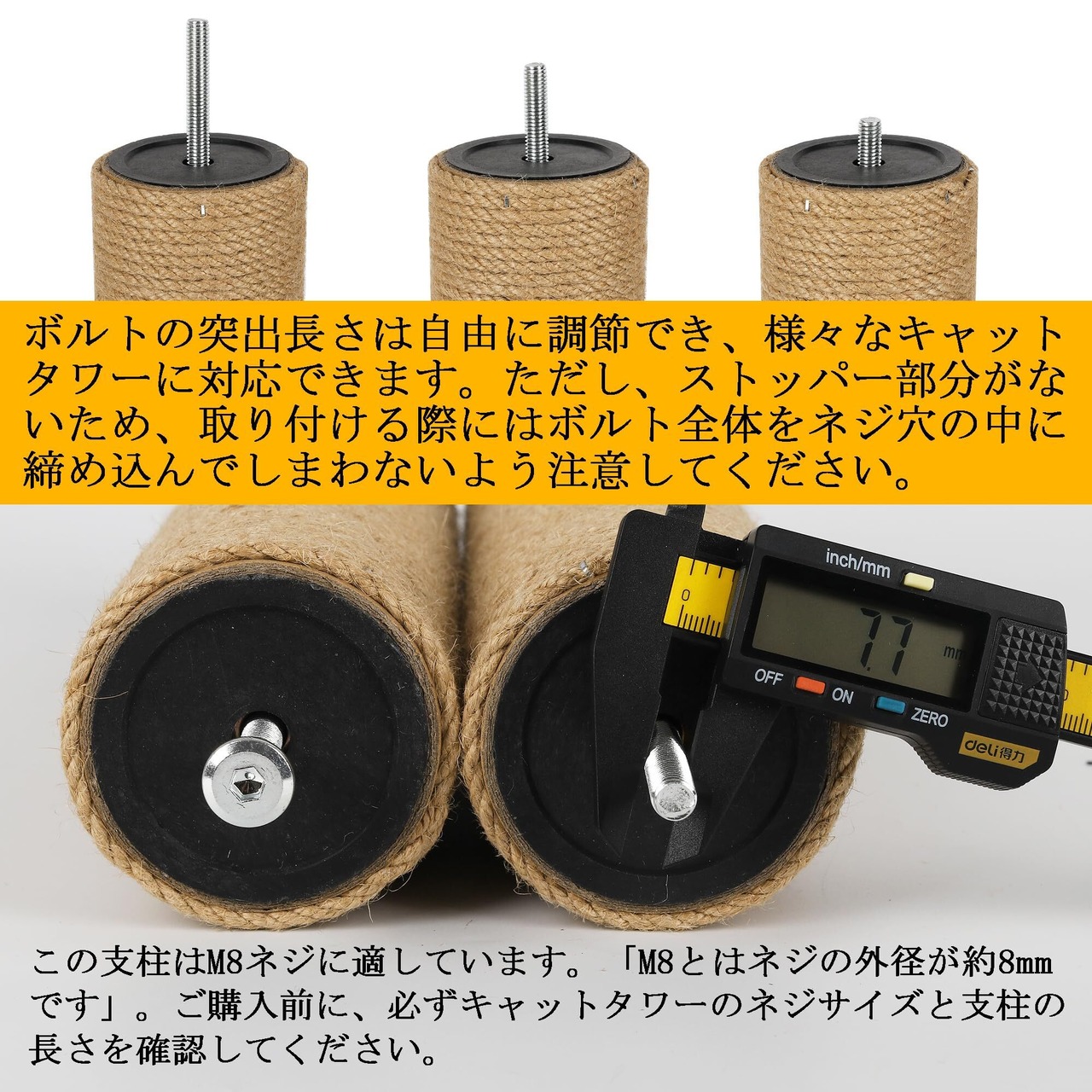 耐久性良い:他の爪とぎポールより、厚さ3mmの紙管と太さ4mmの麻縄で作た当製品はもっと丈夫で長持ちします。