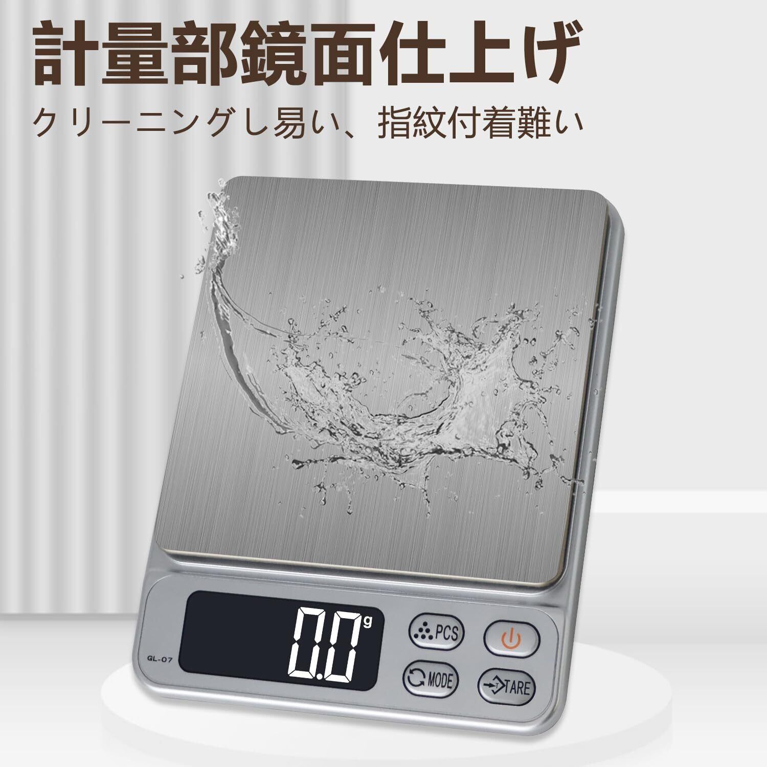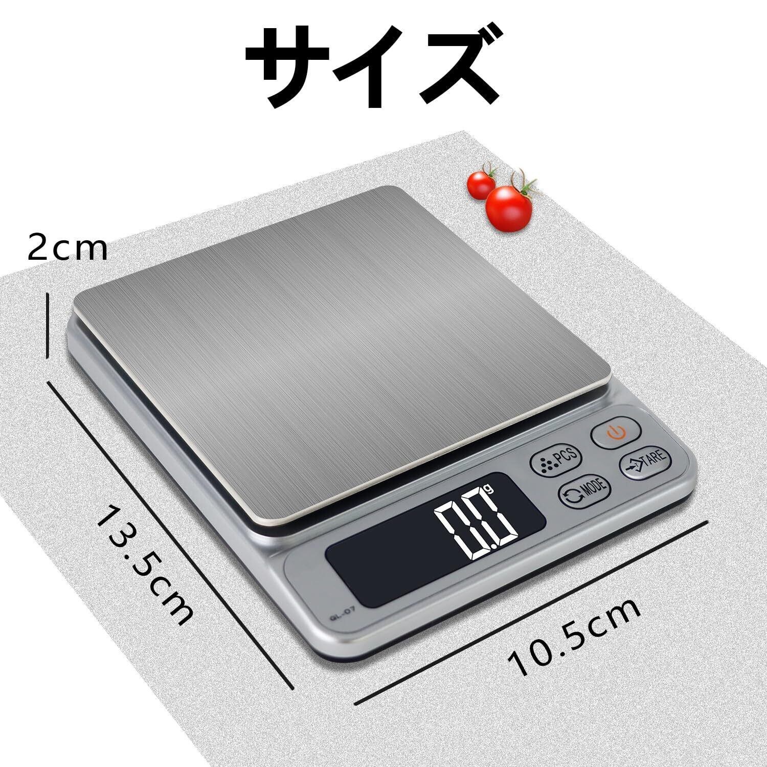 はかり デジタル デジタルスケールはかり 3000g 計量器 0.1g単位 3kg キッチン クッキングスケール (シルバー)