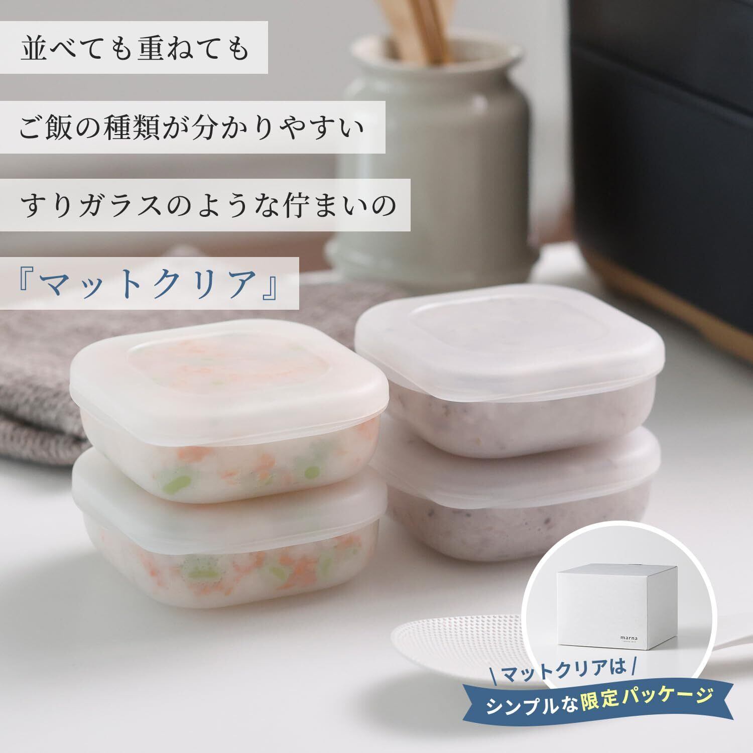 マーナ(marna) 極 冷凍ごはん容器 (web限定マットクリア/べたつきを防ぐ すのこ付き/電子レンジ) ご飯 御飯 冷凍ごはん 保存容器 ごはん冷凍保存容器 BPAフリー 4個入り R511CL