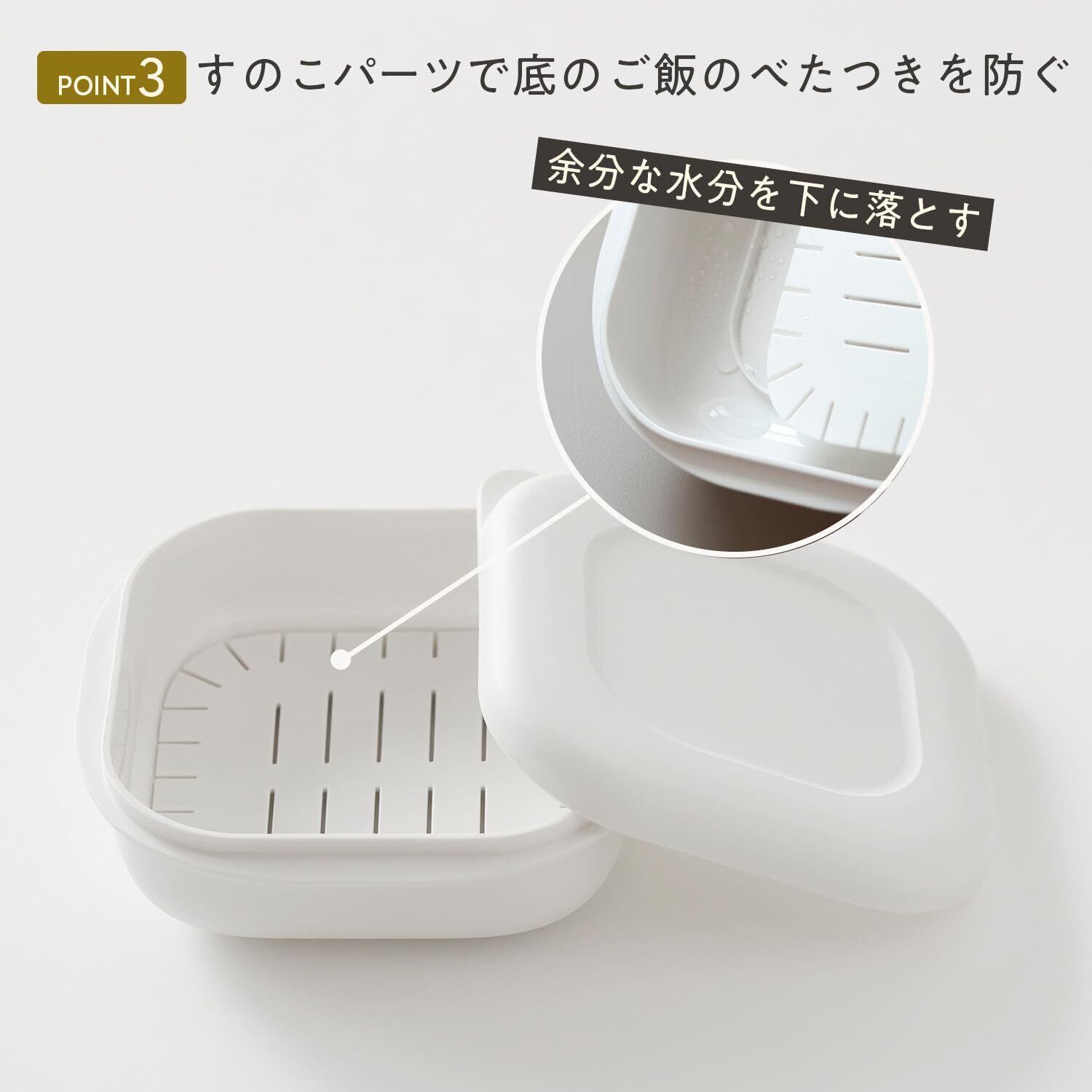 【べたつかず炊き立てのような美味しさを】すのこパーツで余分な水分が下に落ち、ご飯のべたつきを防ぎます。角や凹みがないシンプルなデザインでGOOD DESIGN受賞(※)。食洗機対応/少ないパーツでお手入れも簡単です。底のすのこパーツも取り外して洗えます。※2021年受賞 ※仕様変更に伴い、すのこの形状が変更となっております。なお、外観仕様等は、改善のため予告なく変更する事がありますため予めご了承下さい。