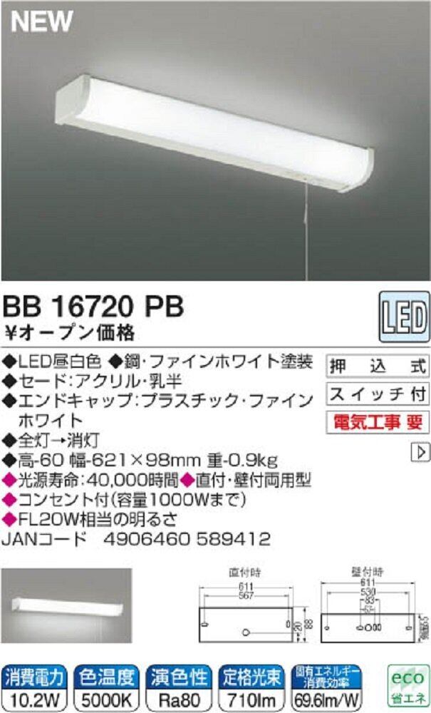 コイズミ LED流し元灯 直付・壁付両用型 昼白色 BB16720PB