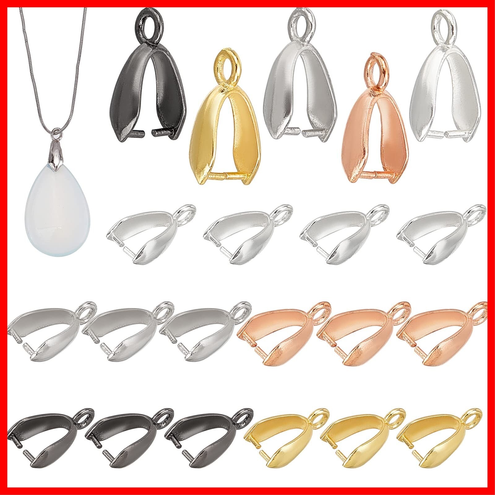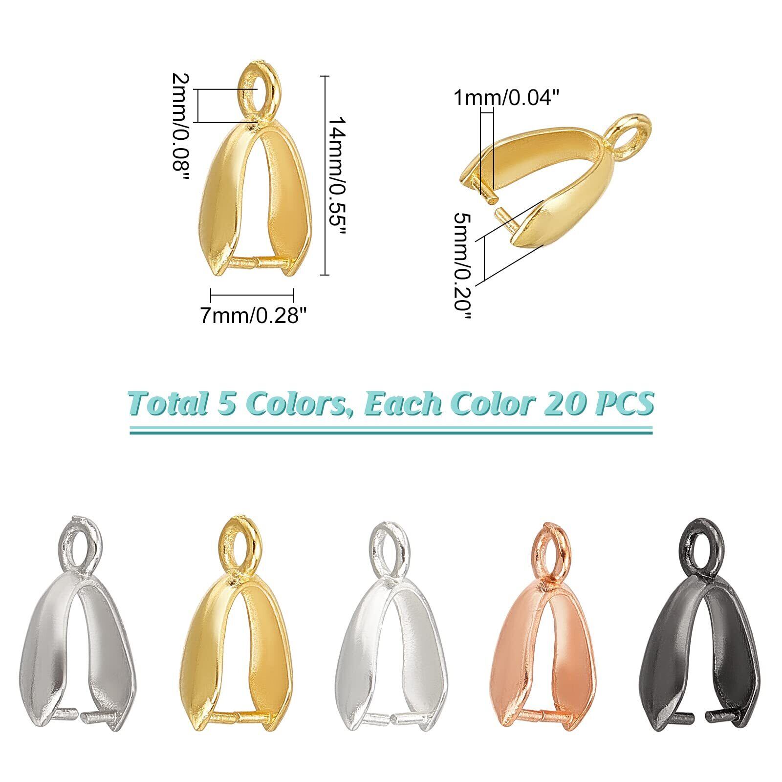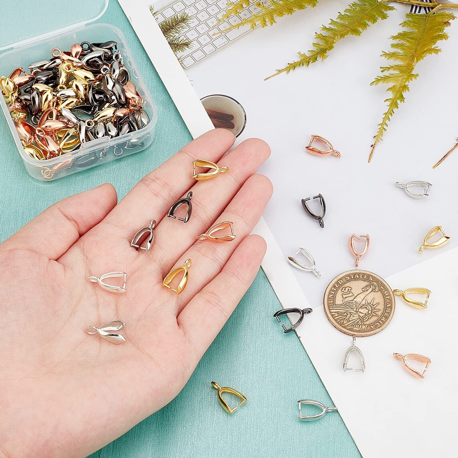 PH PandaHall 約100個/箱 真鍮 バチカン ピンチベール ペンダントパーツ ネックレス ペンダント 留め具 接続金具 チャーム アクセサリートップ 手芸用品 ジュエリー用 アクセサリーパーツ 手作り素材 混合色
