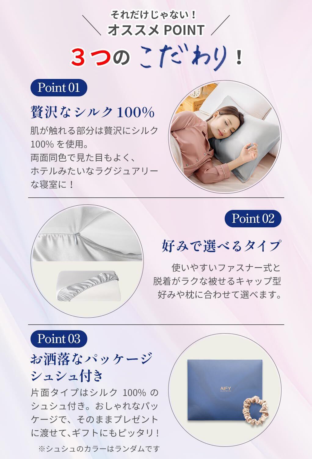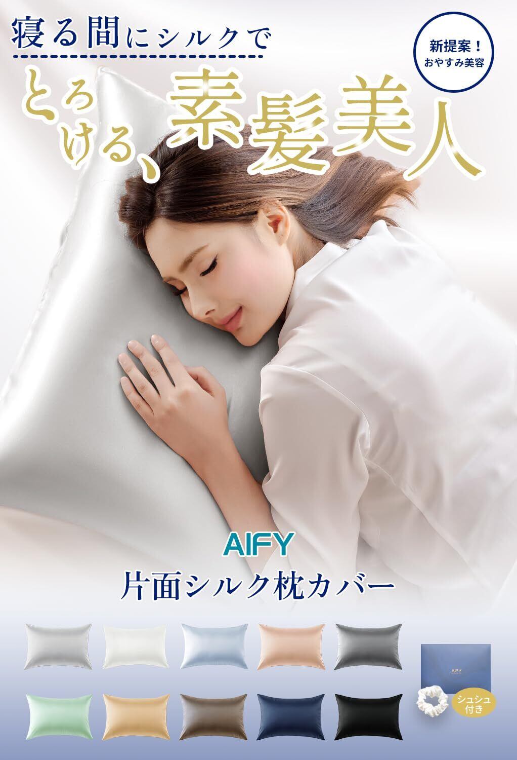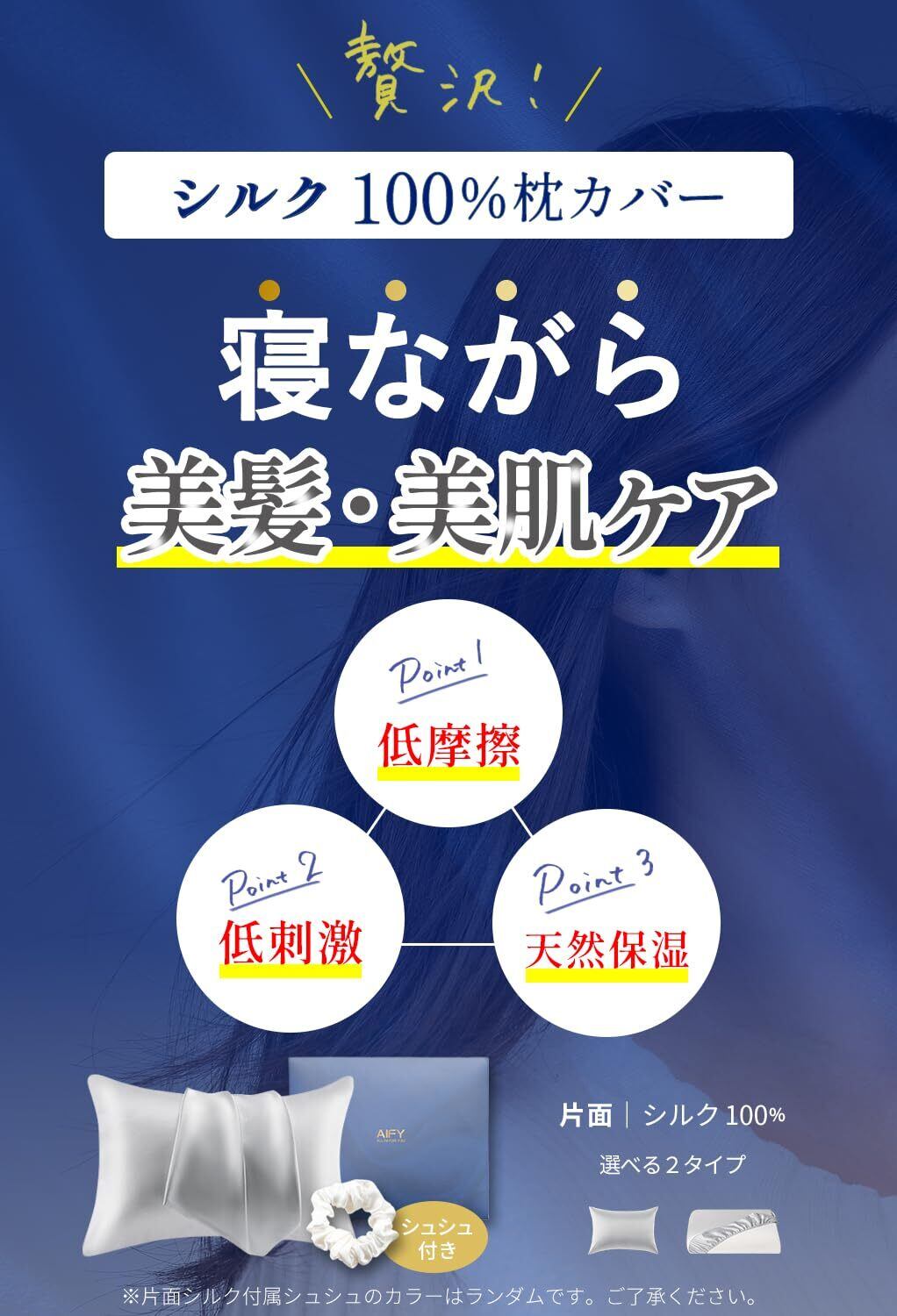 AIFY シルク枕カバー 片面100%シルク 6Aクラス 枕カバー 美髪 美肌 髪の毛のダメージ減少 サラサラ ひんやり 保湿 通気性 洗える 敏感肌に優しい 抗菌防臭 静電気防止 摩擦軽減 ファスナー式 43×63cm(枕対応) 1枚セット 45×65cm シルバーグレー