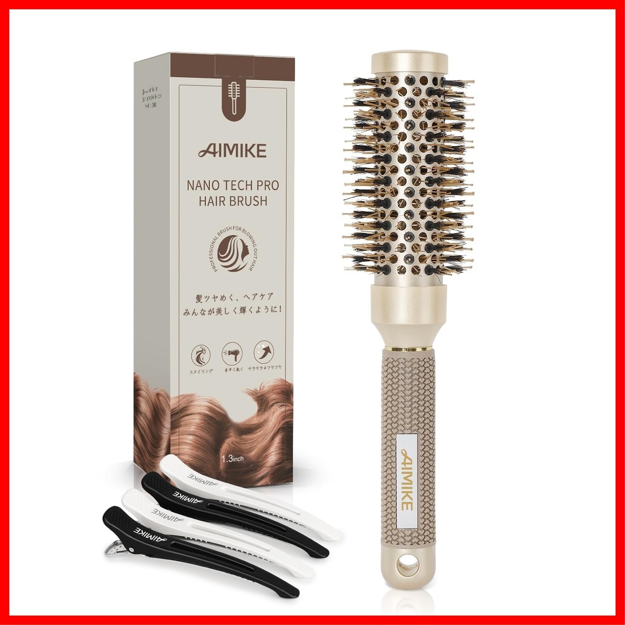 AIMIKE ミディアム ロールブラシ ブロー時間短縮 カールブラシ ストレート&カール用 ヘアブラシ ナノセラミックイオン技術 ラウンドブラシ ボリュームアップ ロールカールブラシ 豚毛+ナイロン ラウンドヘアブラシ 猪毛 耐熱 縮れを減らす サラツヤ(バレル直径3.2cm、総直径6cm)