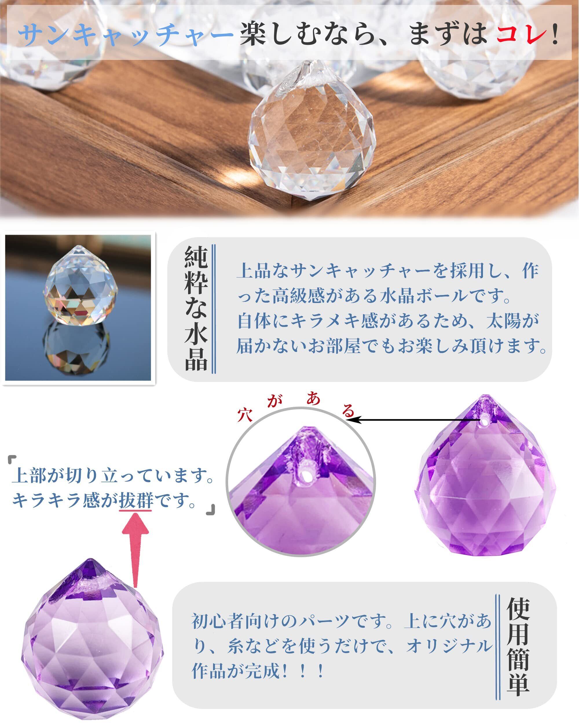 カラフル 水晶サンキャッチャー プリズム クリスタル ガラス ボール パーツ インテリア飾り 手作り セット (30mm15個)