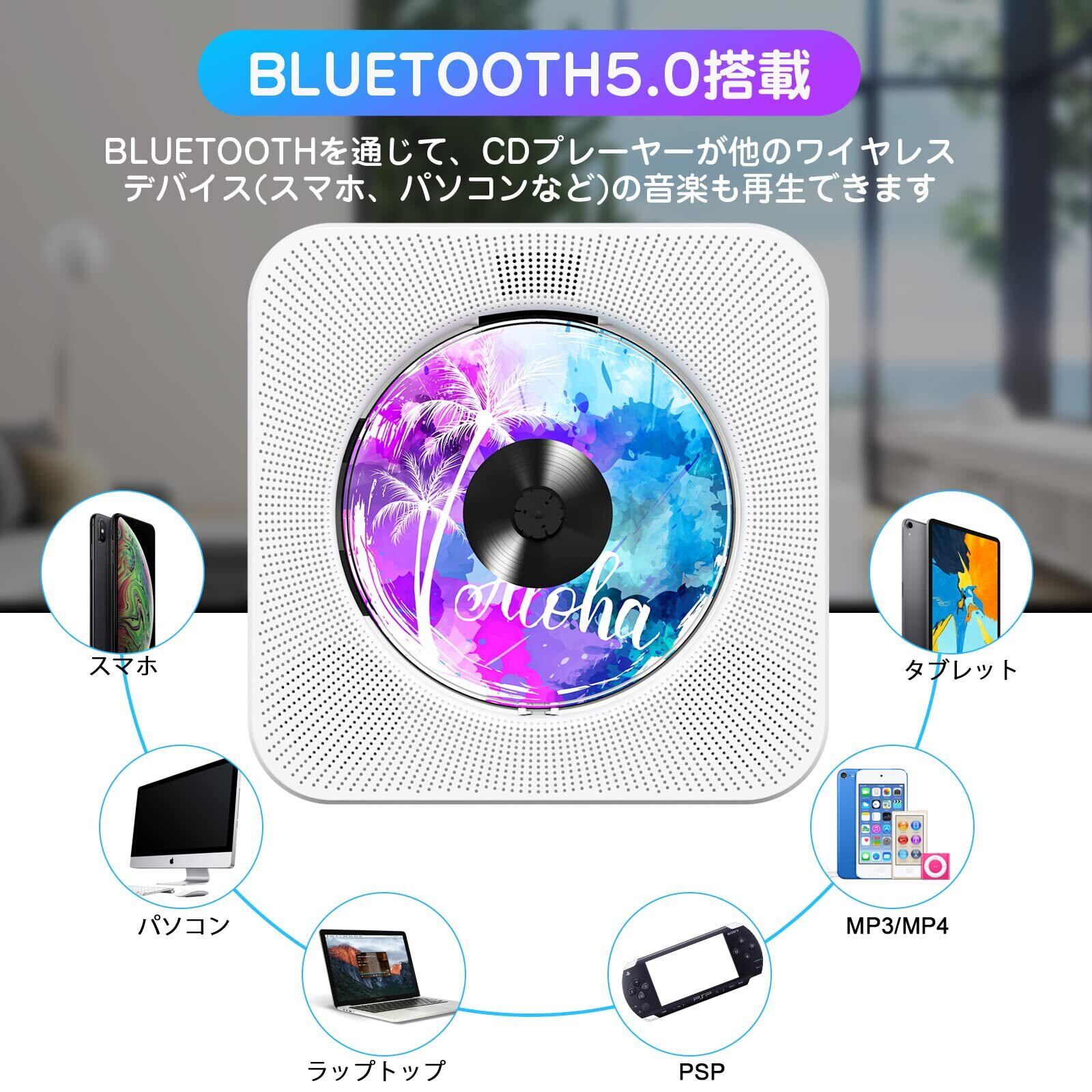 「多彩なファイル形式に対応」本製品はCD,CD-R,CD-RW,MP3,WMA,WAVなどのフォーマットに対応した幅広く使えるコンパクト音楽CDプレーヤーです(ご注意:ブルーレイディスクが再生できません、ご了承ください)。新バージョンのリモコンを付き、ボタンの押し心地がよく、手ごろなボタンのレイアウトガ気持ちいいです。6mの範囲内で楽々簡単に操作できます。 ご注意:ブルーレイディスクが再生できません、ご了承ください