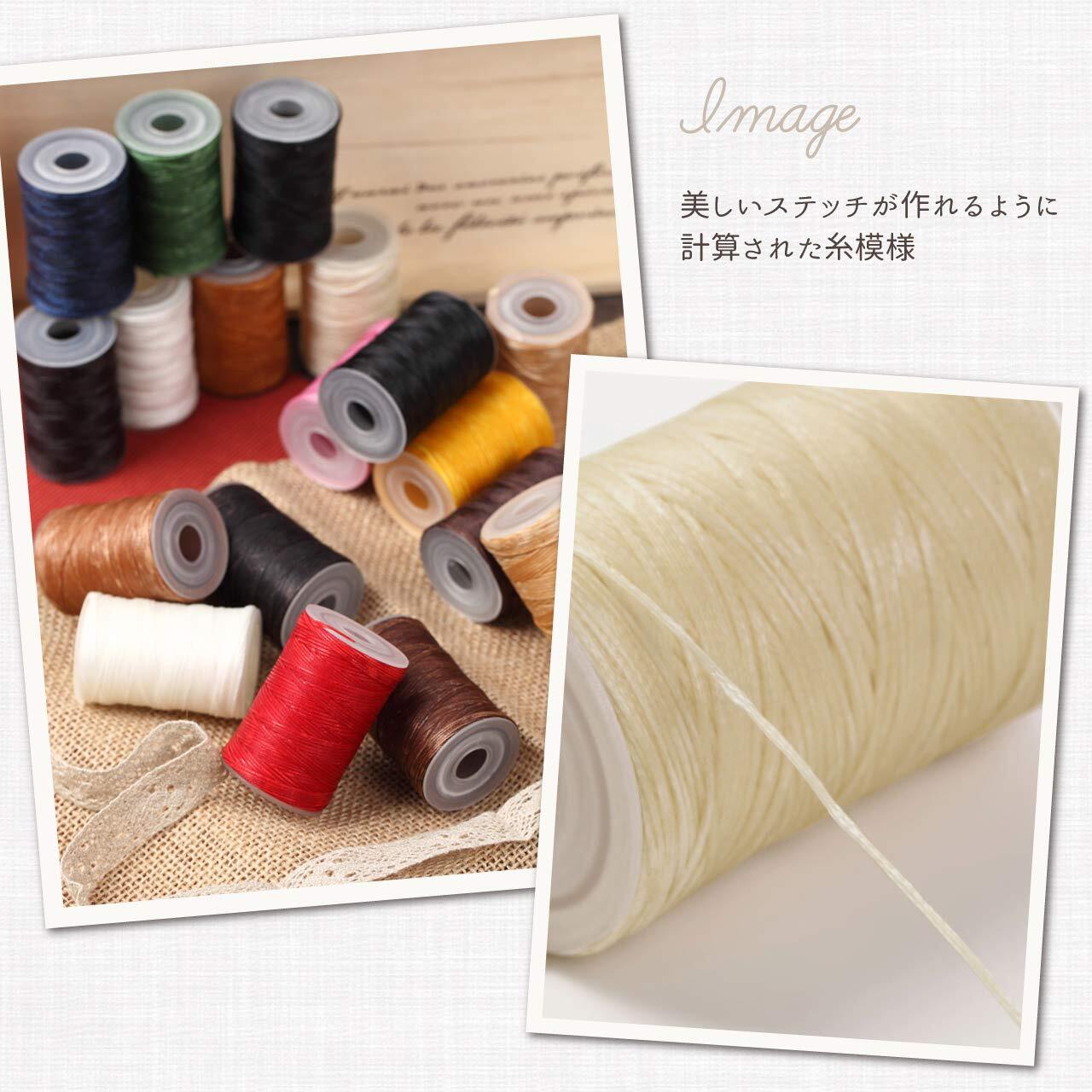 ロウ引き済だからすぐに縫い始められ、細かいステッチにも耐える強度があります。