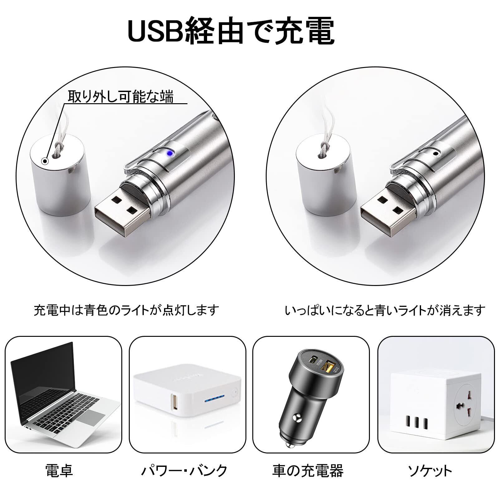【USB充電機能】本体にはUSBポートが付いており、急速充電が可能です。約1.5時間で充電完了し、1週間以上使用可能です。