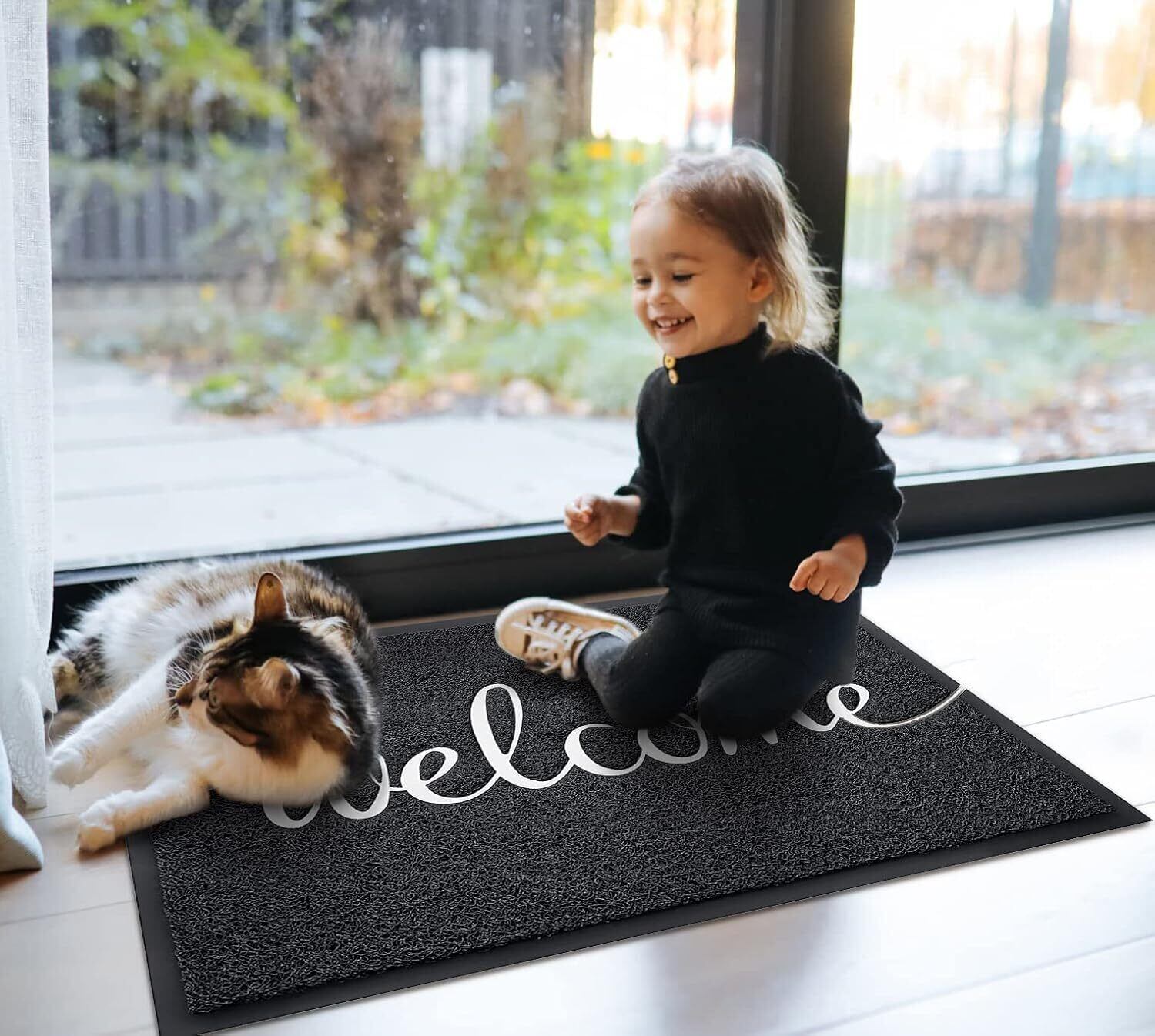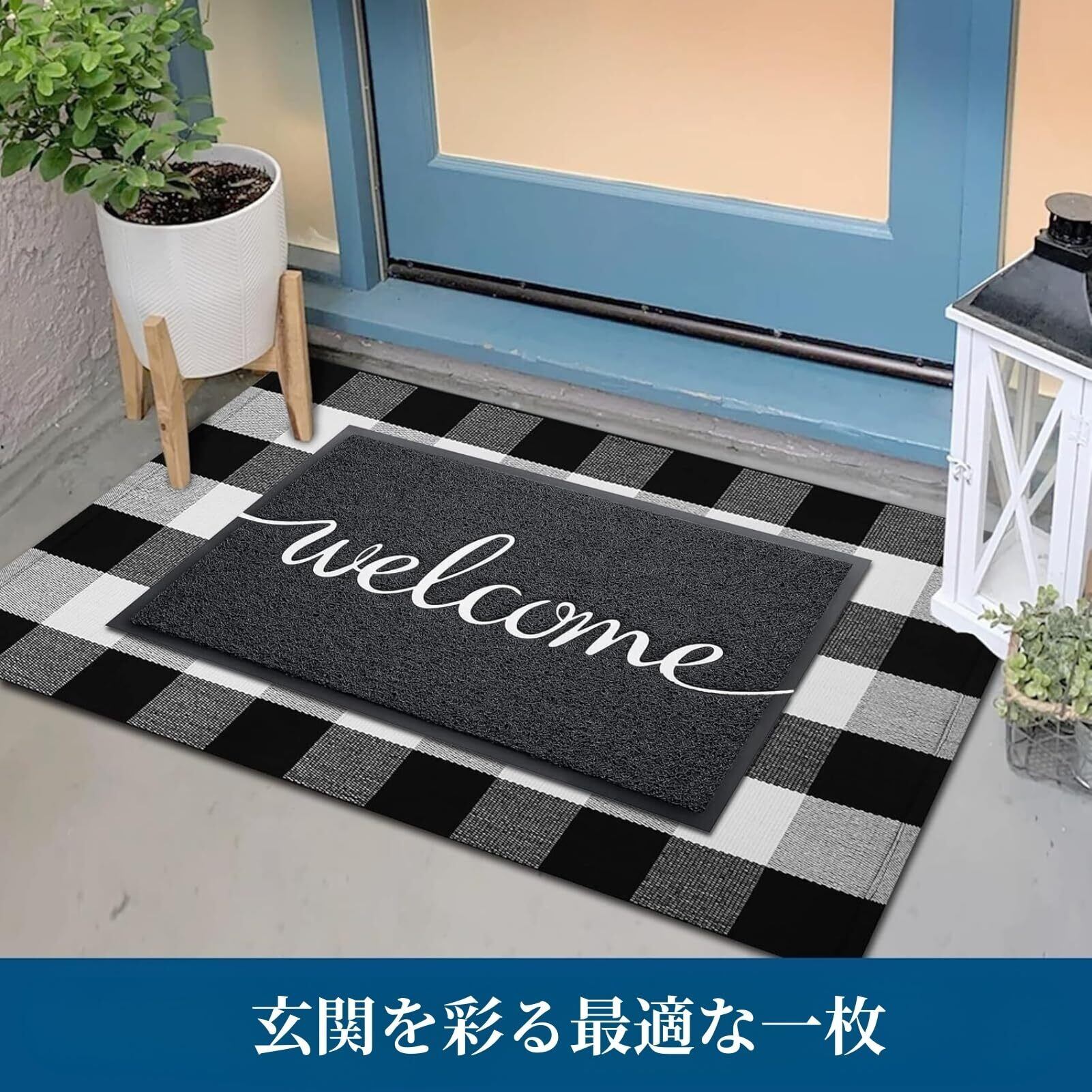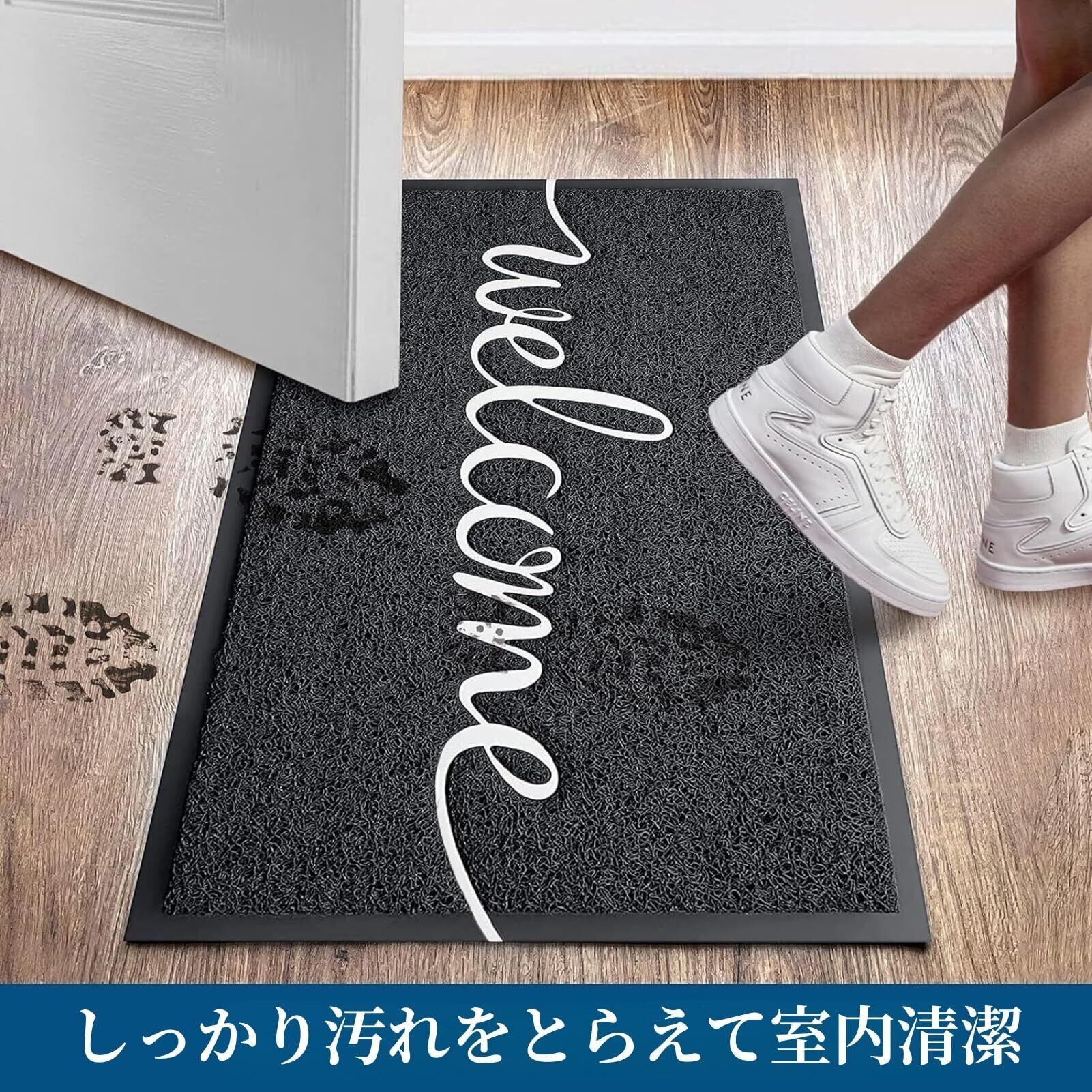 CHICHIC 玄関マット 屋外 泥落とし 滑り止め 吸水 welcome 店舗用玄関マット 業務用 約43×75㎝ 黒 wel4376_b_01