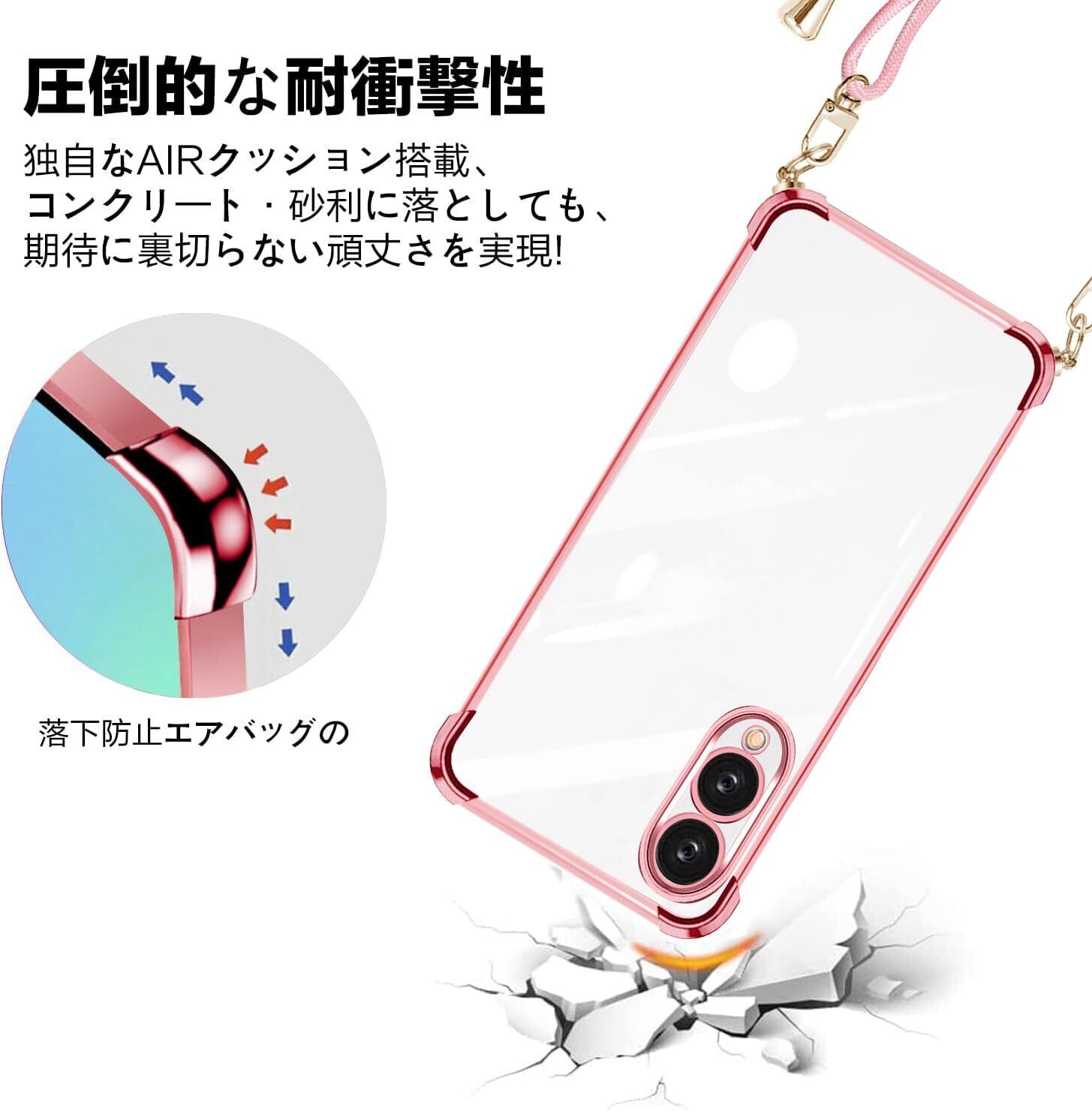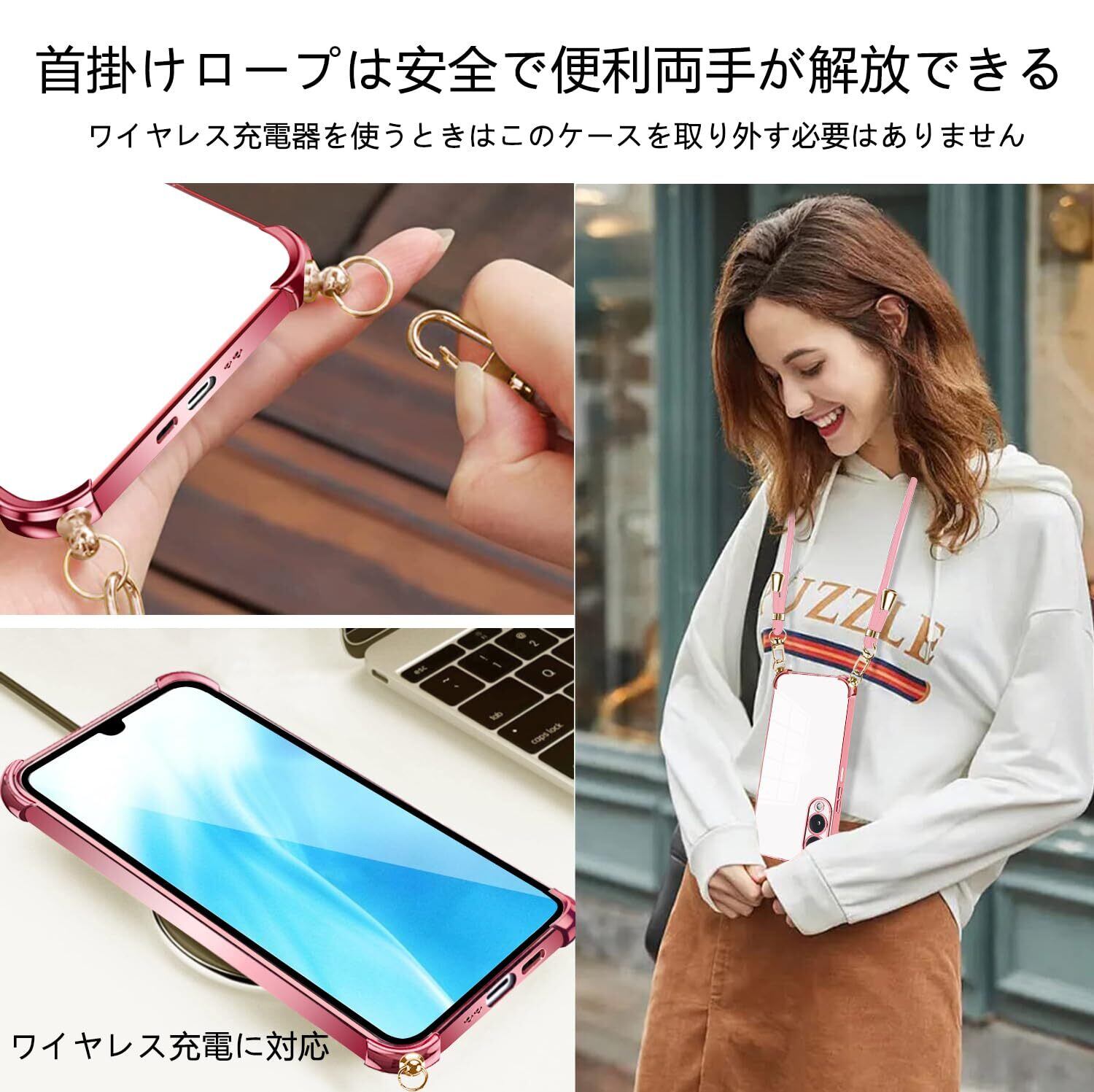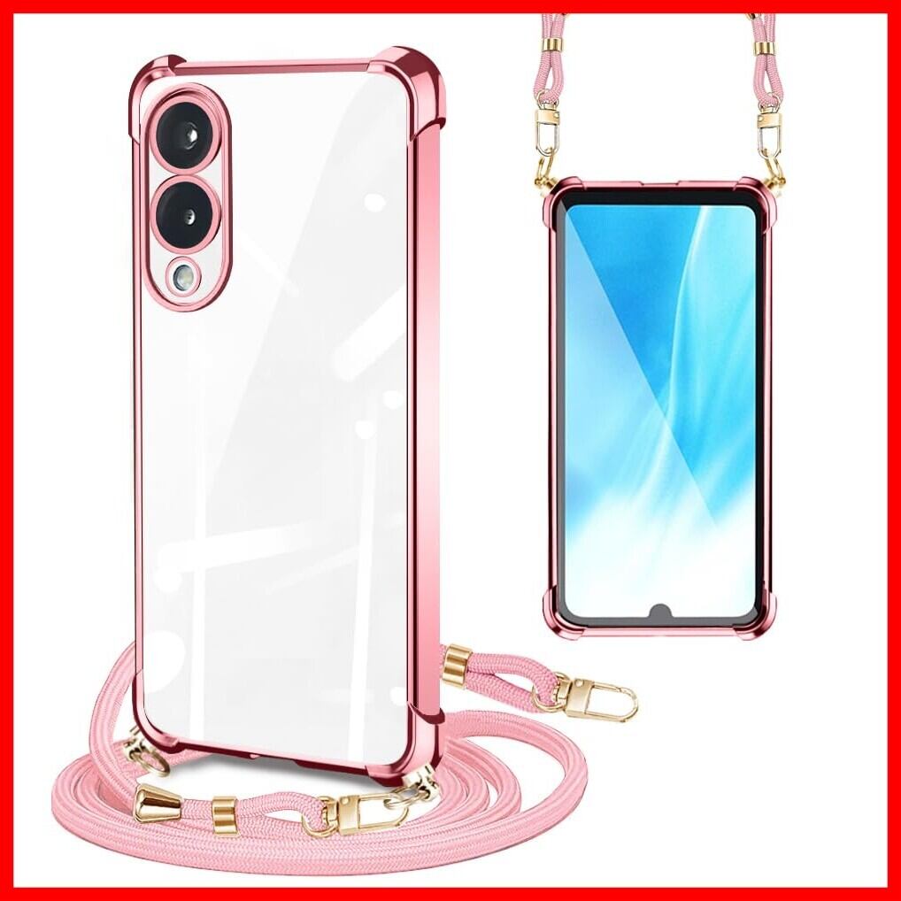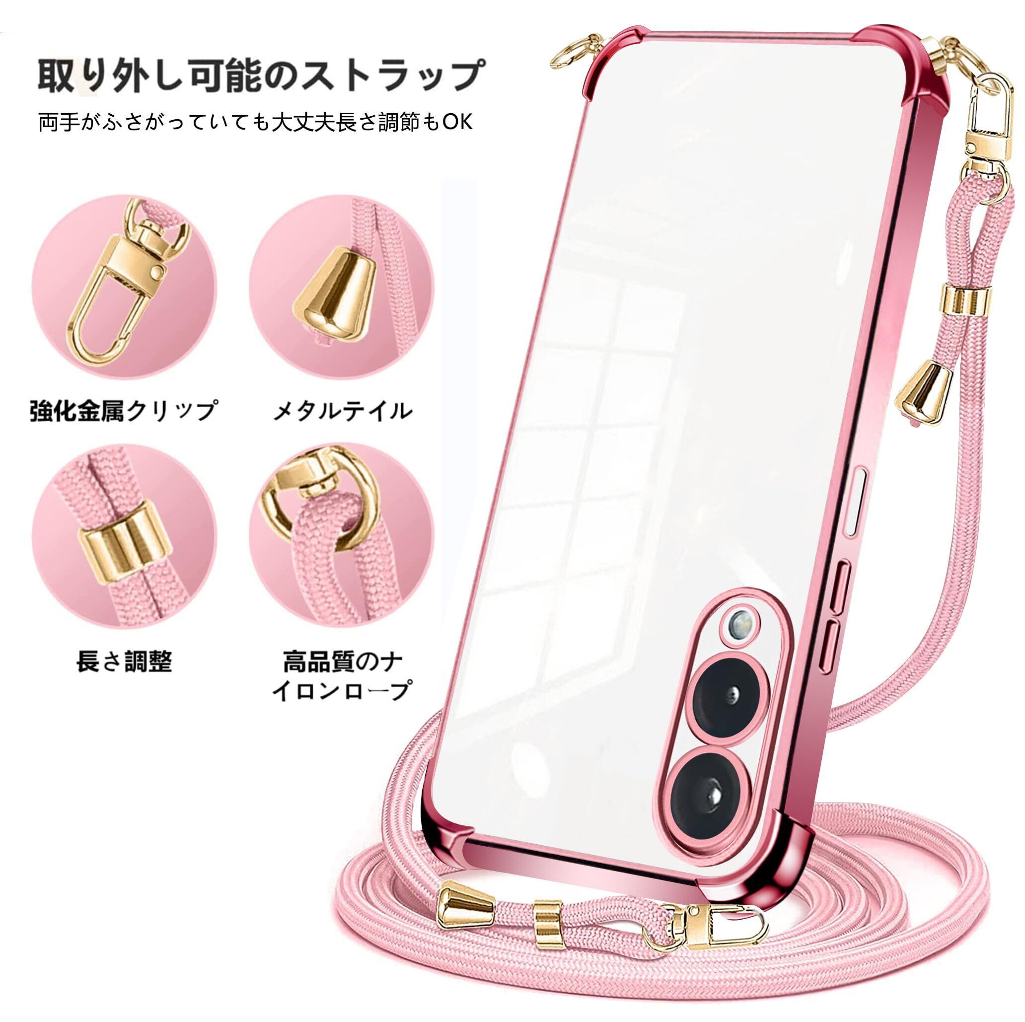 PAILAIMEN Arrows We2 用 ケース クリア 薄型 ショルダー F-52E カバー FCG02 スマホケース 耐衝撃 保護カバー サムスン 肩掛け 斜めかけ 縄掛けケース透明 TPU ストラップ付き 薄型 軽量 紐付き 取り外し可能 携帯ケース(ローズゴールド)