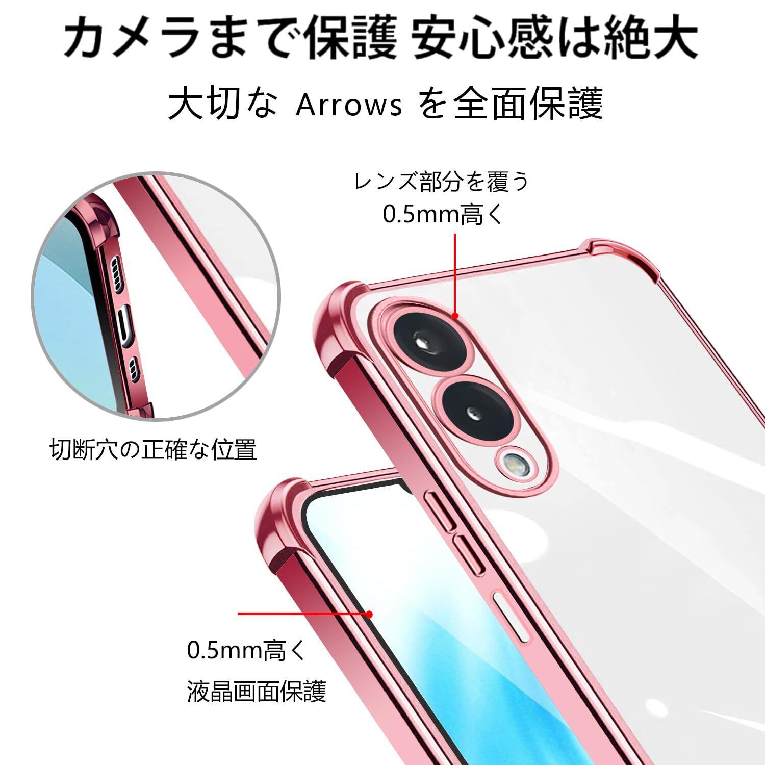 【 高い透明度 】 ケースは特別に開発されたハイテクTPU素材で作られています。 透明度が高く、本体の鮮やかな色をそのまま映し出すことができ、arrows we2 f-52e のオリジナルのカラーを損ねません。ケースの端はダイヤモンドカットプロセスを施すことでより洗練された美しい外観となっています。ケースは、型どりを緻密に実施しており、arrows we2 f-52eを保護しているのです。これは arrows we2 f-52e の Qiワイヤレス充電 と 指紋認証 を完全にサポートします。