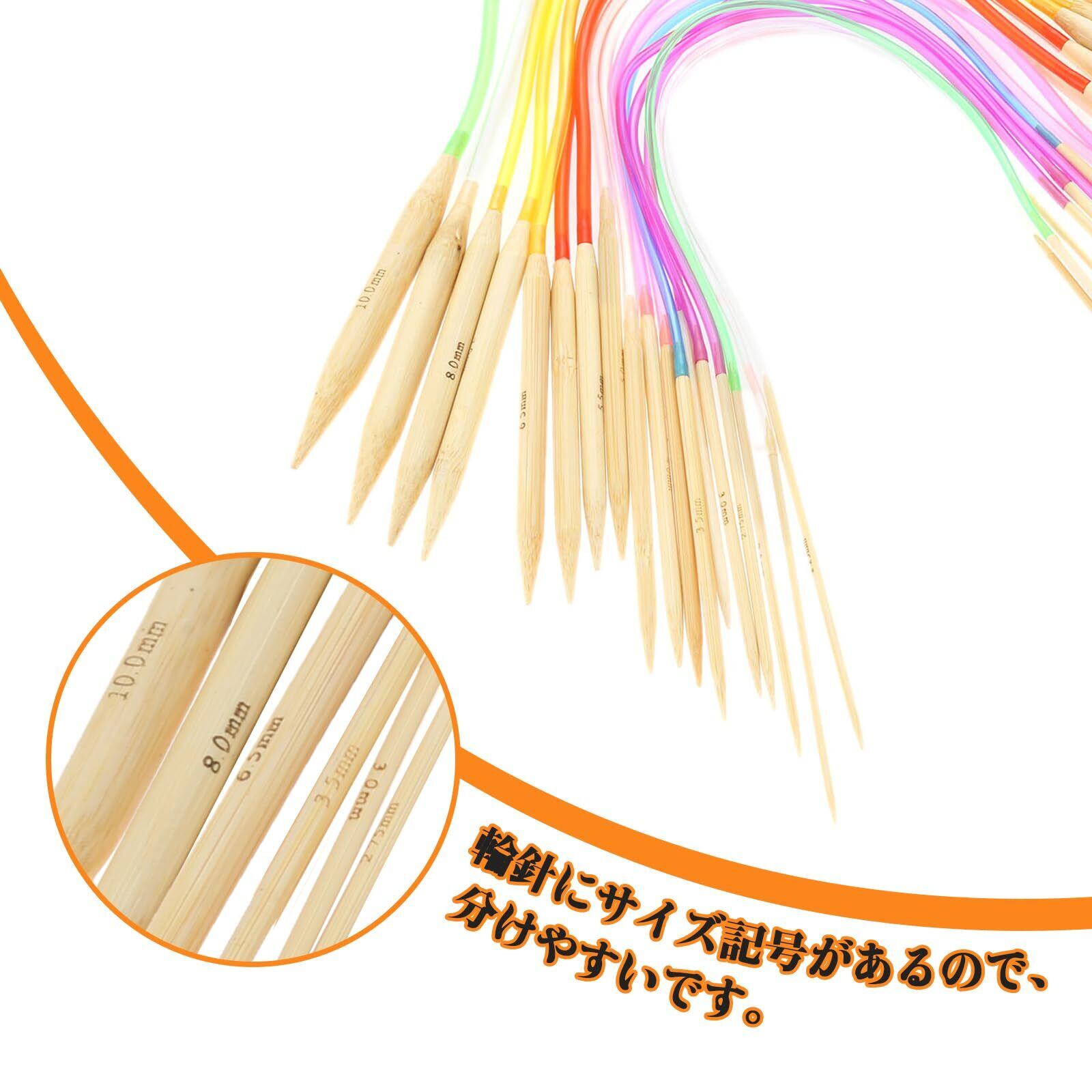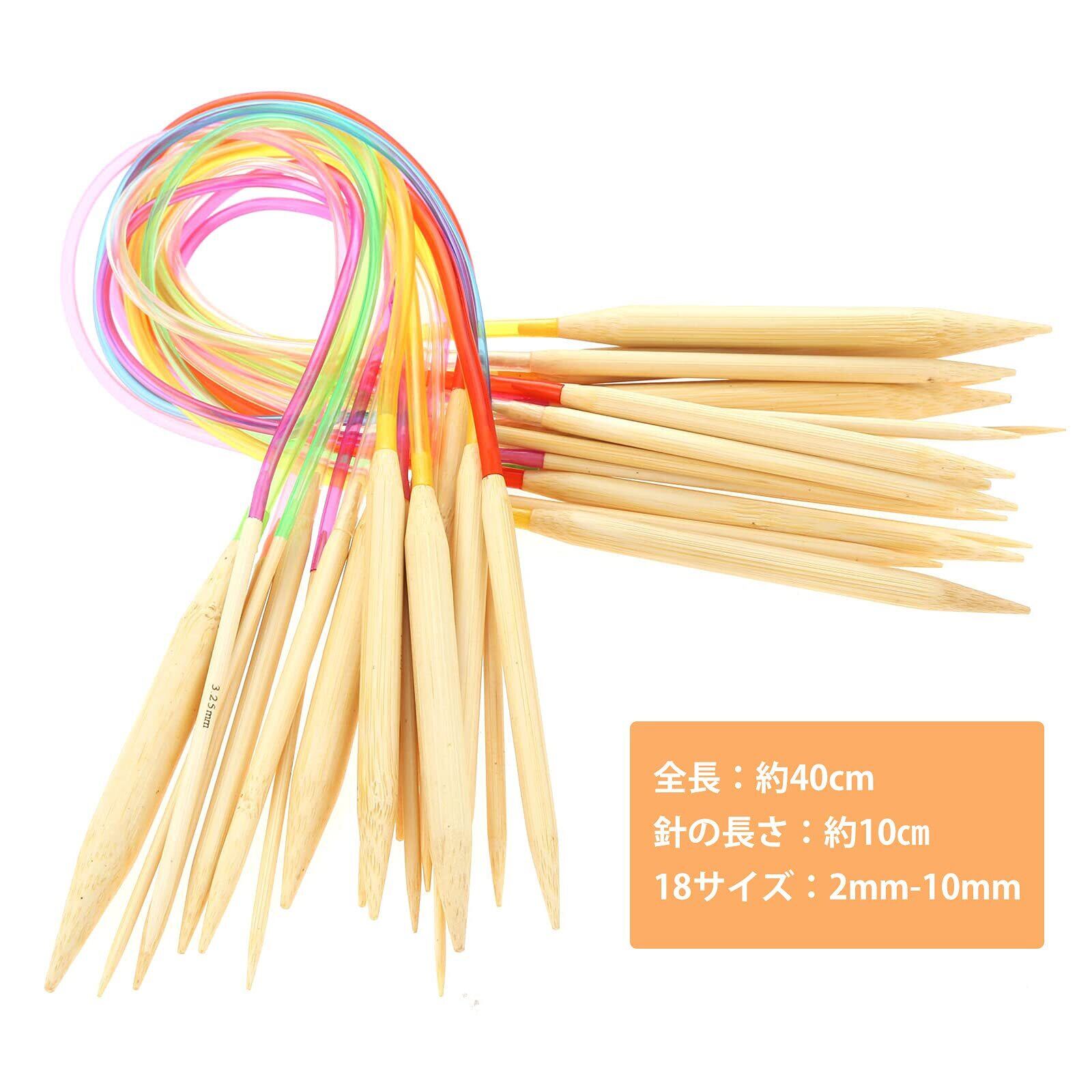 Yetaha 輪針セット 輪針 18本 編み針 2.0mmから10.0mm 竹製棒針 かぎ針 手あみ針 毛糸 手芸道具 全長40cm