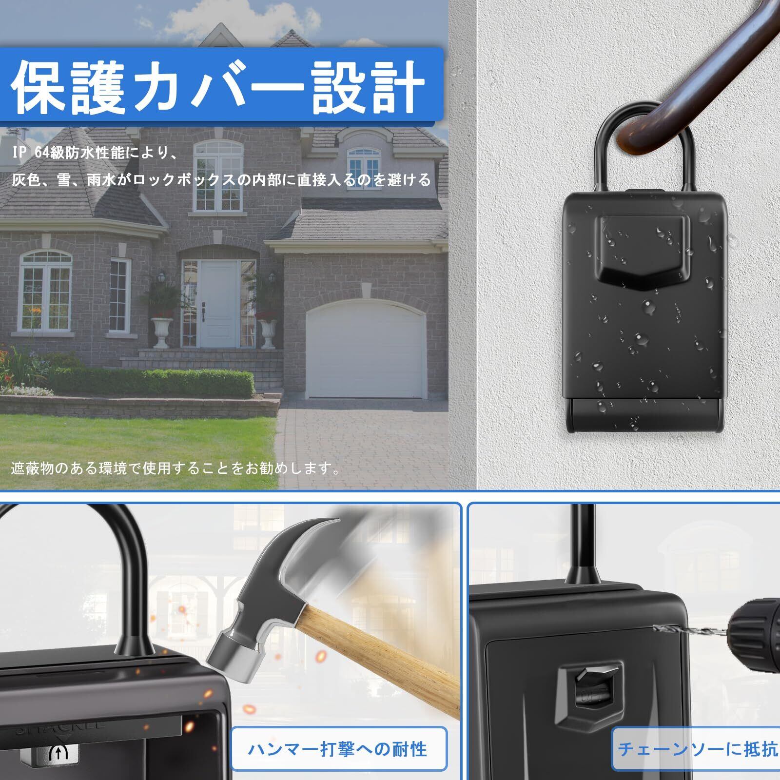 ▶新規アップグレード:キーボックスの裏面に特殊加工を施し、より滑らかになり、ドアやドアハンドルへのダメージを防ぎます。夜間でも数字が見やすく、操作しやすいLED照明付き。キーロックボックスの外カバーは、防風、防雨、防雪、防塵仕様。(注:完全防水ではないので、保護された環境での使用を推奨)