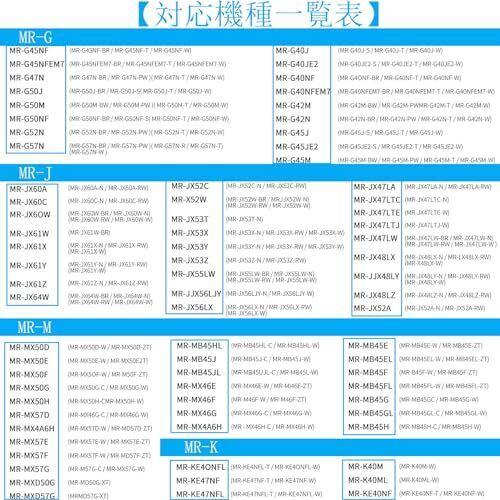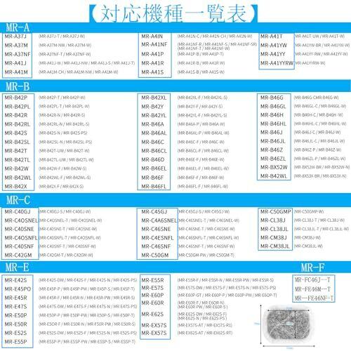 【対応機種】 MRPR-01FT、MR-JX52W、M20VJ5526、MR-JX53Z、MR-JX61Y、M20KW0526、M20KWO526、MR-JX60W、MR-MB45E、MR-WX47C、MR-WX71Z、MR-B46D、MR-RX47T、MR-RX52T、MR-WX60A、MR-MX50F、MR-MX57D、MR-B46A、MR-R47W、MR-WX47D、M20CM5526、MR-A37JT、MR-A37M、MR-A37NF、MR-A41J、MR-A41JS、MR-A41M、MR-A41N、MR-A41NF、MR-A41NFS、MR-A41R、MR-A41SB、MR-A41T、MR-A41YW、MR-A41YY、MR-B42T 三菱冷蔵庫製製氷機専用のフィルターです。多くの三菱冷蔵庫のアイスメーカーに対応していますが、具体的な機種については写真と製品説明をご参照ください。