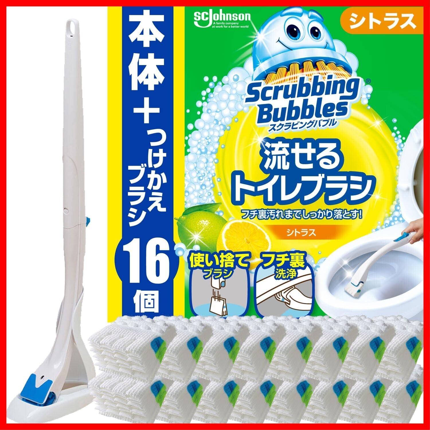スクラビングバブル (Scrubbing Bubbles) 流せるトイレブラシ シトラスの香り 本体+付け替え用 (16個) トイレ洗剤 黒ズミ トイレ掃除 ブラシ 使い捨て 洗剤 まとめ買い