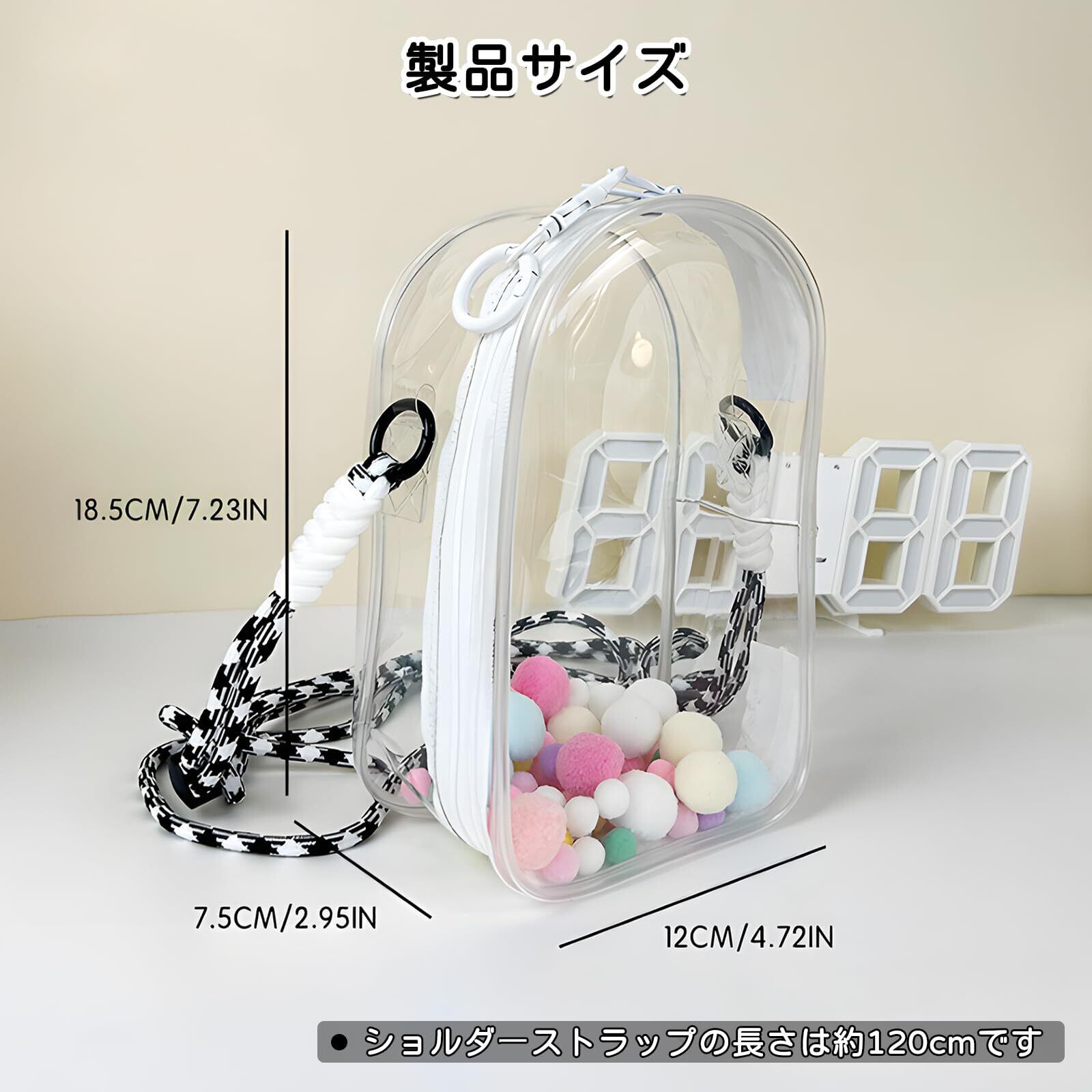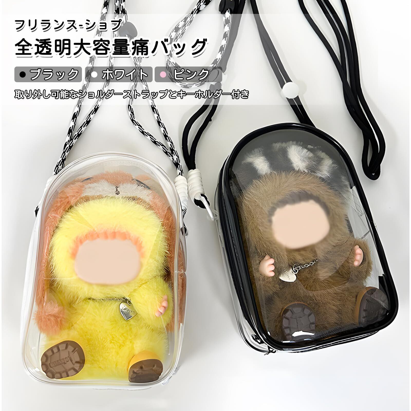 フリランス-ショプ 痛バッグ 18.5cm ぬいぐるみ 収納 全透明 大容量 ぬいぐるみポーチ 推し活 防水 PVC 透明ポーチ 取り出し便利 コンサート 旅行用 (ホワイト)