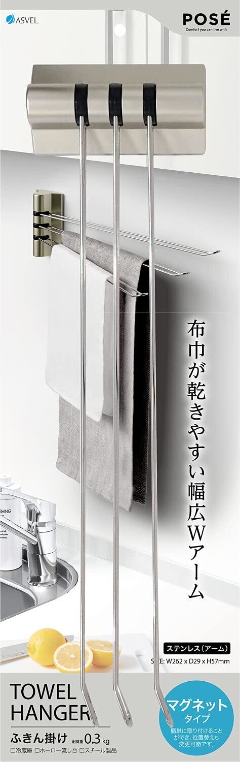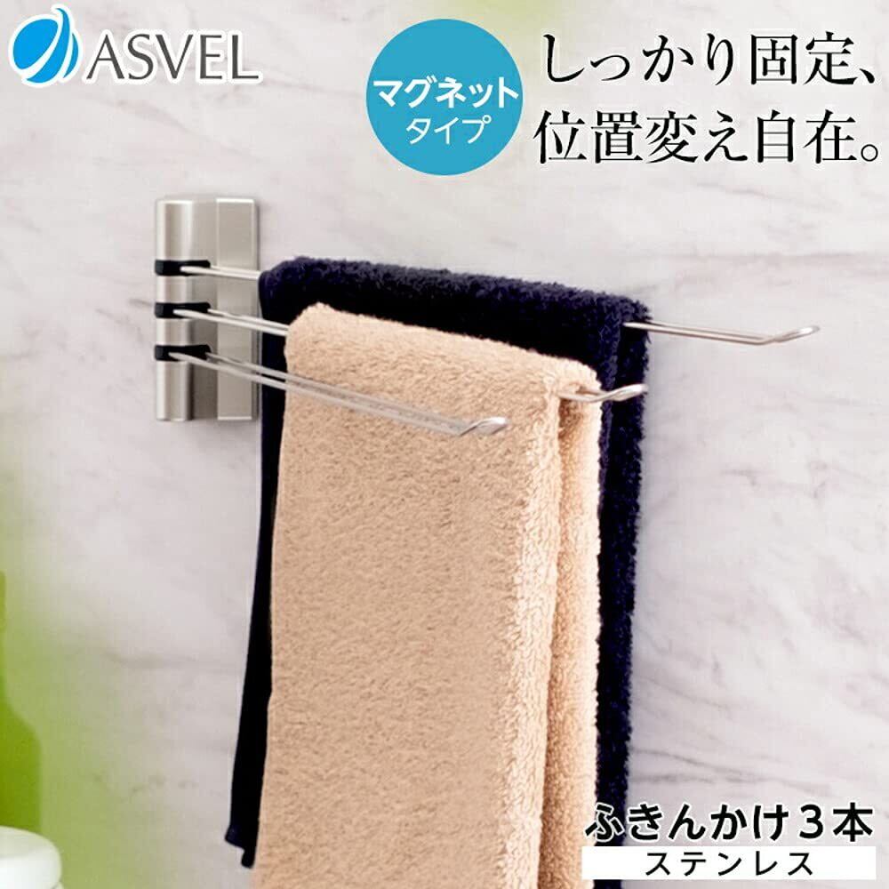 アスベル ポゼ キッチン ふきん掛けステン3本 マグネット ホワイト K134116 33.7×3.4×9.1