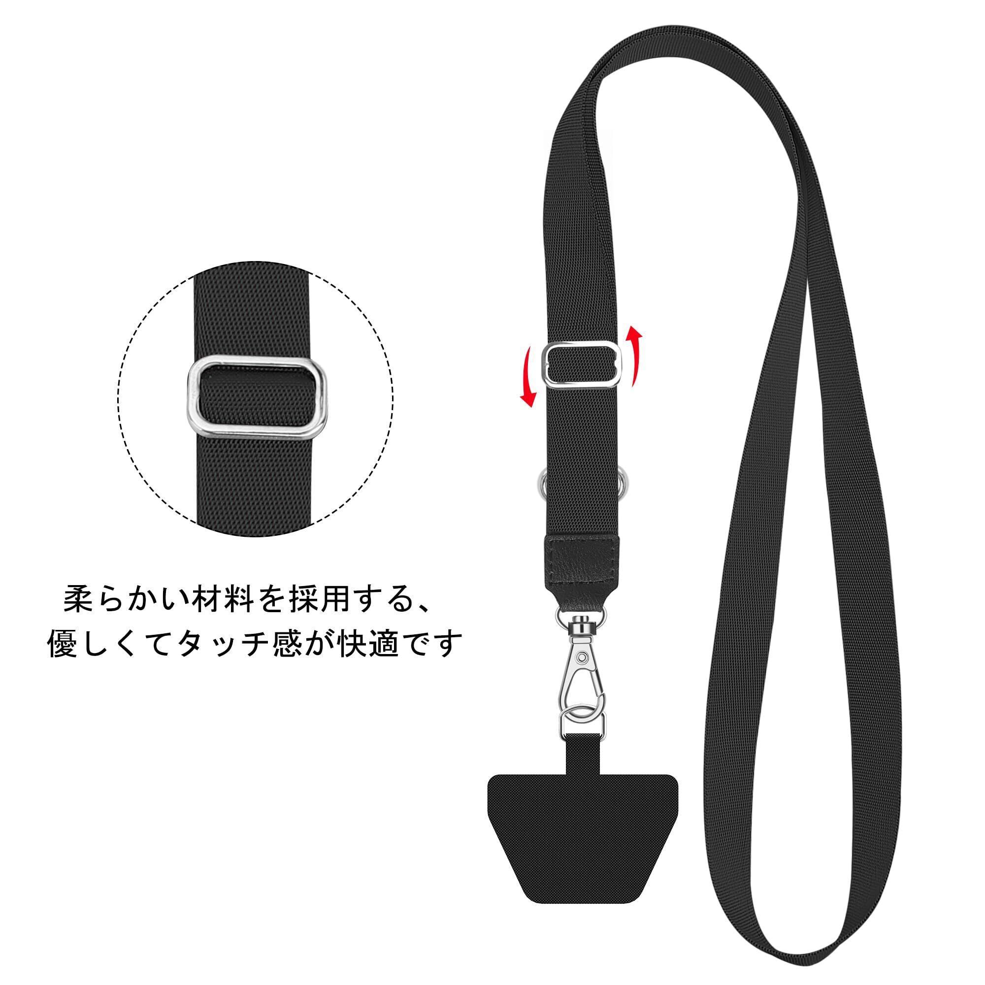 スマホストラップ 携帯ストラップ 首から下げる 長さ調整可能 斜め掛け ショルダーストラップ 着脱簡単 全機種対応 紛失/落下防止 ストラップホルダー 2枚 (ブラック)