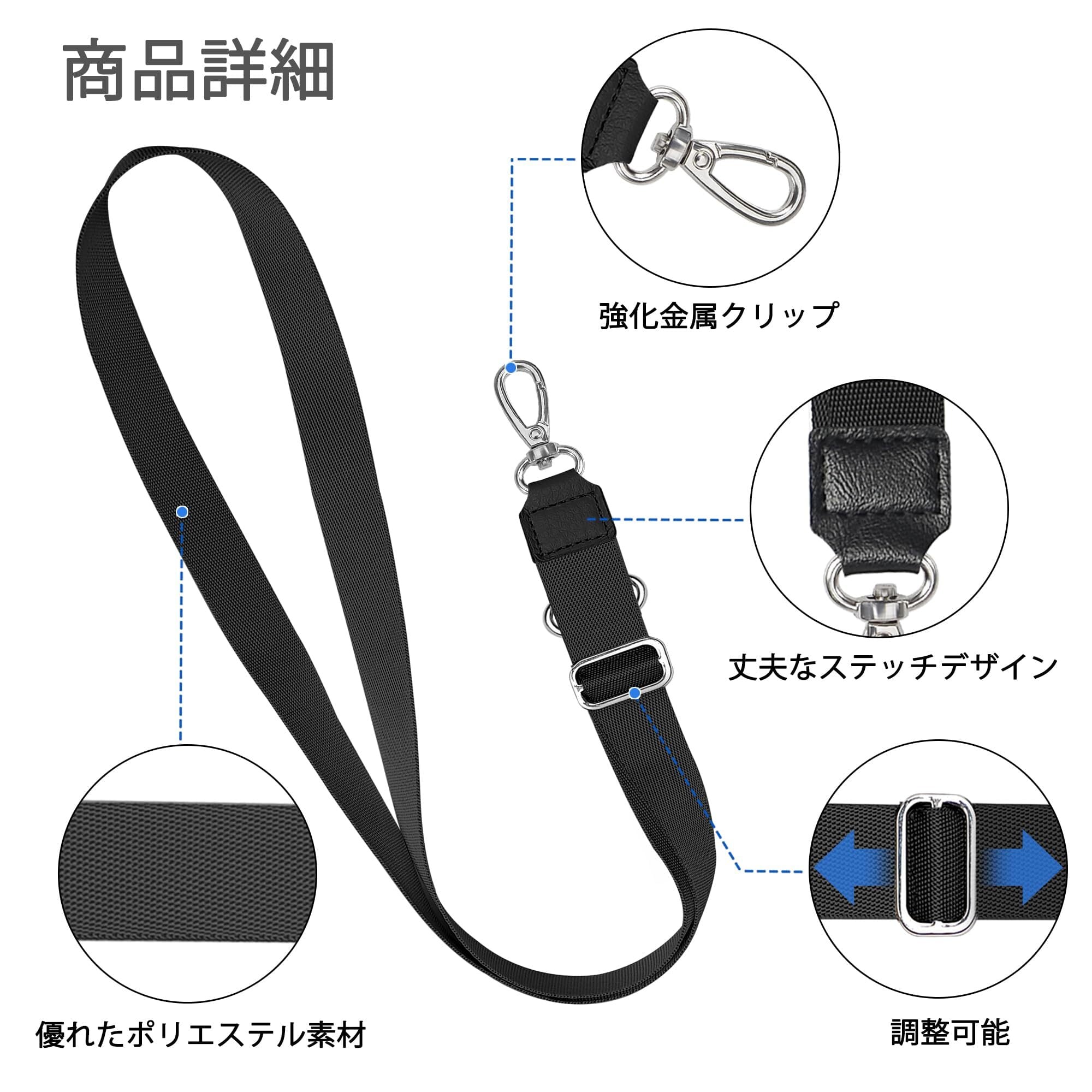 【セット内容】パッチ×2、ネックストラップ×1(最長約72cm、最短約39cm) ご注意:スマホケースを付属しておりません。【自由に操作】ネックスマホを首に掛けておけば、落下防止になり安心して操作できます。それにスマホを首からさげでおけば、着信にすぐ気が付くことができます。充電にも干渉しません。また、スマホケースのタイプをに限らず、汎用ストラップです。【充実した機能が満載】充電や食事中など一時的にスマホを置きたい時も、リングだけ外せば良いのでとても便利です。ネックストラップで調整ボタンがあります。ネックストラップの長さは自由に調節できます。それにスマホだけでなく、鍵、USBメモリなの小物を吊るして収納するから、紛失を防ぐことができます。【品質へのこだわり】ネックストラップ部分を柔らかくて平らなナイロンに使用して、首への負担を軽減しました。今まで首や肩が痛くて、ネックストラップの装着を悩んでいた方にもオススメです。