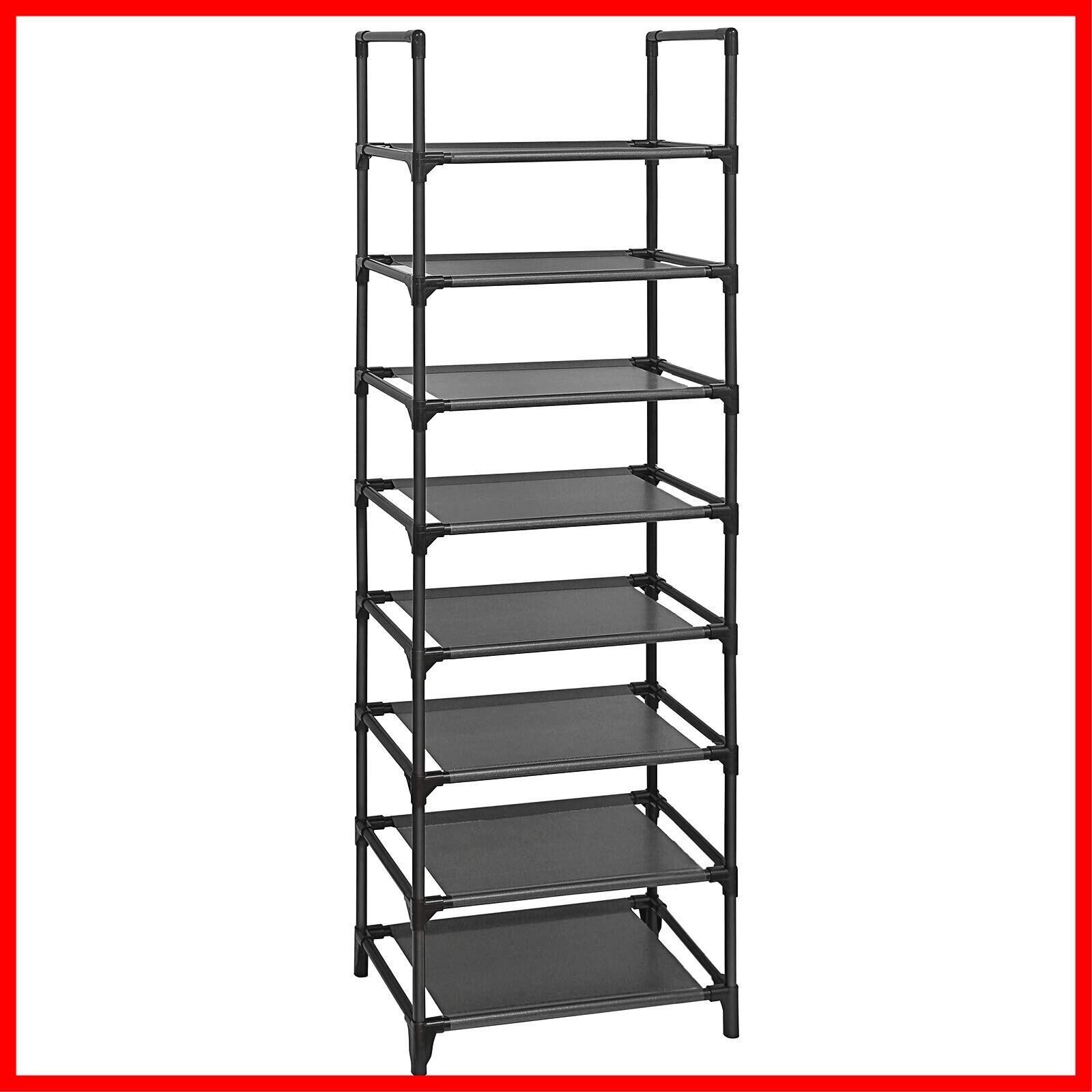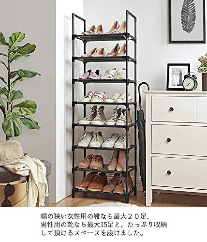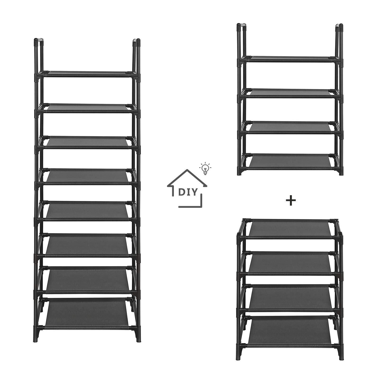 SONGMICS シューズラック 8段 靴棚 下駄箱 省スペース 分割可玄関すっきり 奥行スリム28cm 玄関に靴を効率収納 収納目安16-20足 LSR24BK