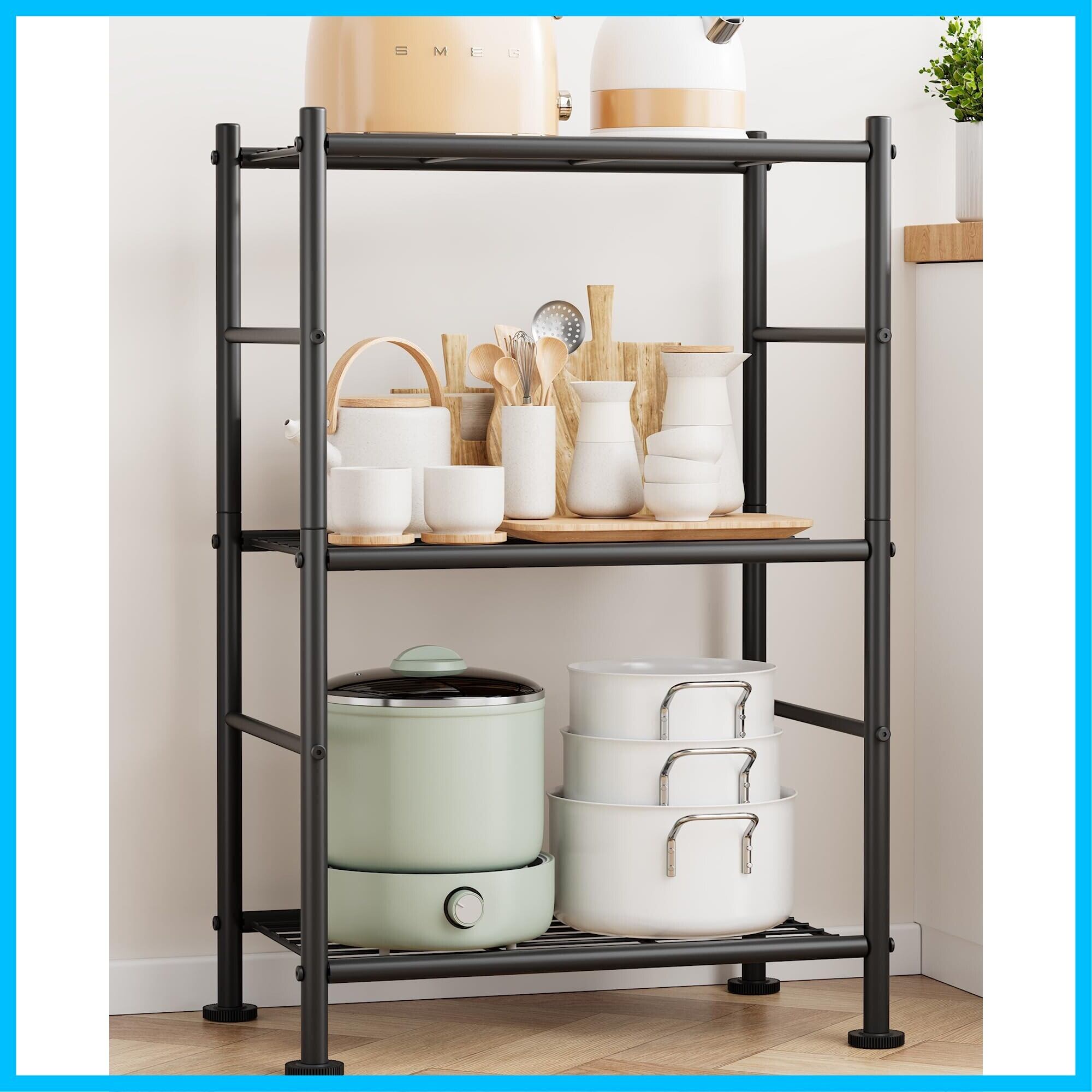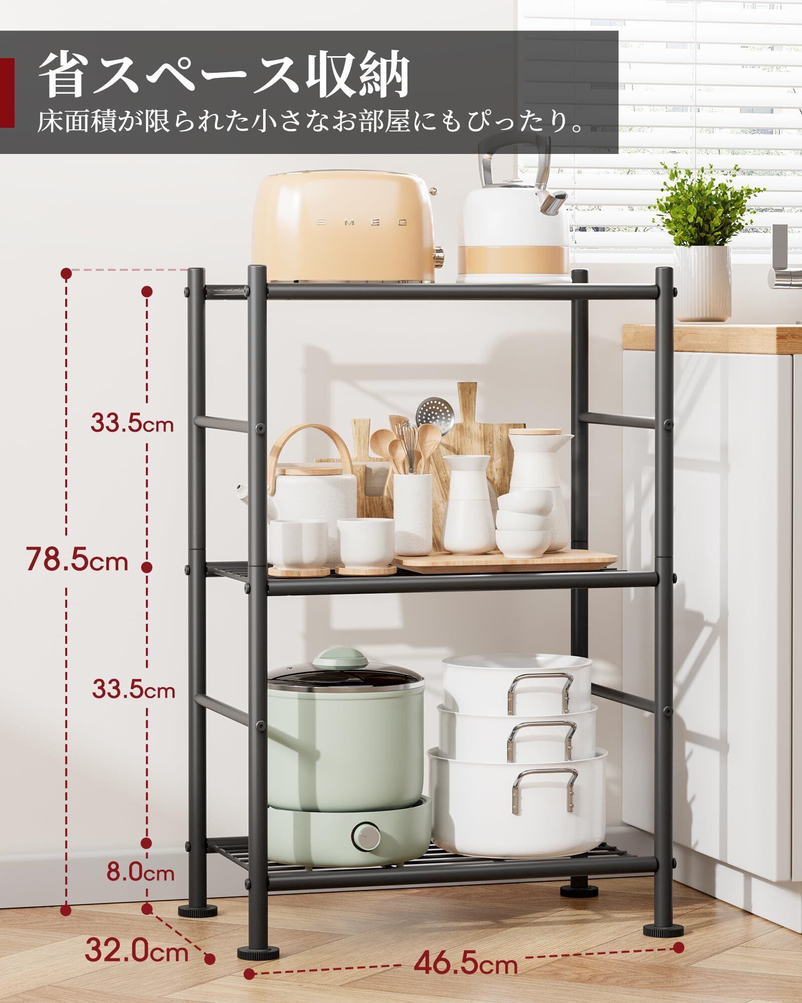 Sakugi ラック 3層 棚 防錆 スチールラック 調整可能なアジャスター付き 省スペース設計 リビング 洗濯室 キッチン対応 (長さ46.5cm × 幅32cm × 高さ78.5cm、ブラック)
