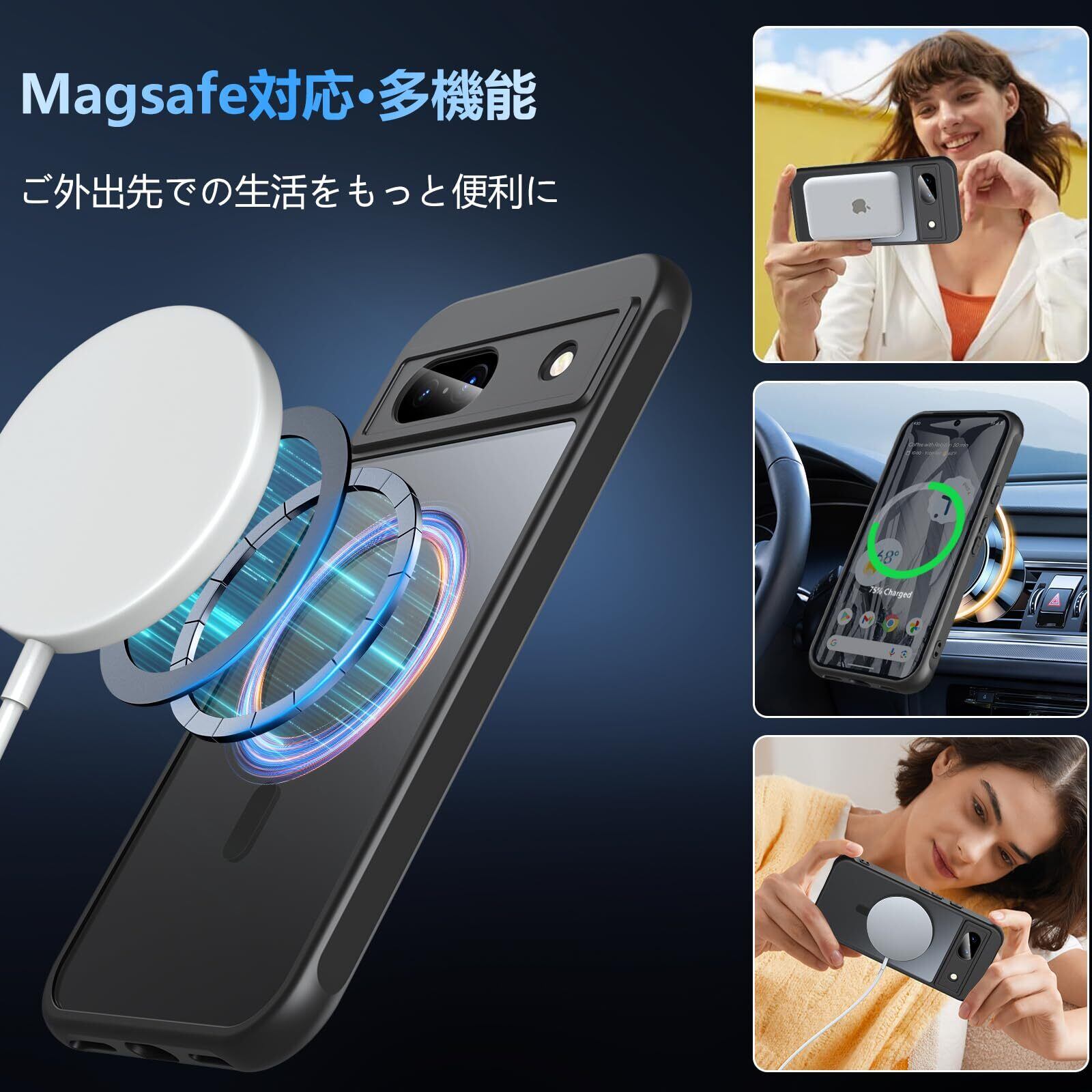【MagSafe対応・より便利】最新型の強力なマグネット搭載で差し込みのいらない超簡単充電を実現し、吸着力、安定性に優れ、いつでもどこでもワイヤレス高速充電を体験できます。また、MagSafeバッテリー、MagSafeカードケース、MagSafeワイヤレス充電器、MagSafeリング、MagSafe車載ホルダーなど、MagSafeを使用するシーンに対応した Google Pixel 8a ケース なので、Magsafeの便利さを満喫しましょう!