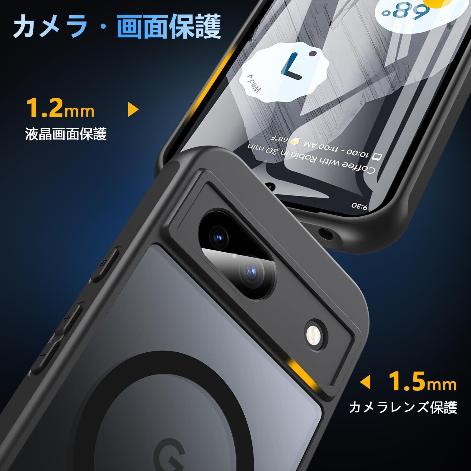 【抜群な耐衝撃性・細部までも保護】厳選された高品質なTPU+PC素材の組み合わせは、耐衝撃性、耐擦り傷性、耐汚れ性、耐久性に優れ、毎日の使用に安心の保護を提供します。また、液晶画面より1mm、カメラより1.2mm高さの高低差デザインに加え、カメラの周りを完全に覆うカメラレンズ保護設計を採用することでスマホ本体の保護を徹底し、平面に置いてもうっかり落としてもスマホをしっかり保護する Pixel 8a ケース です。
