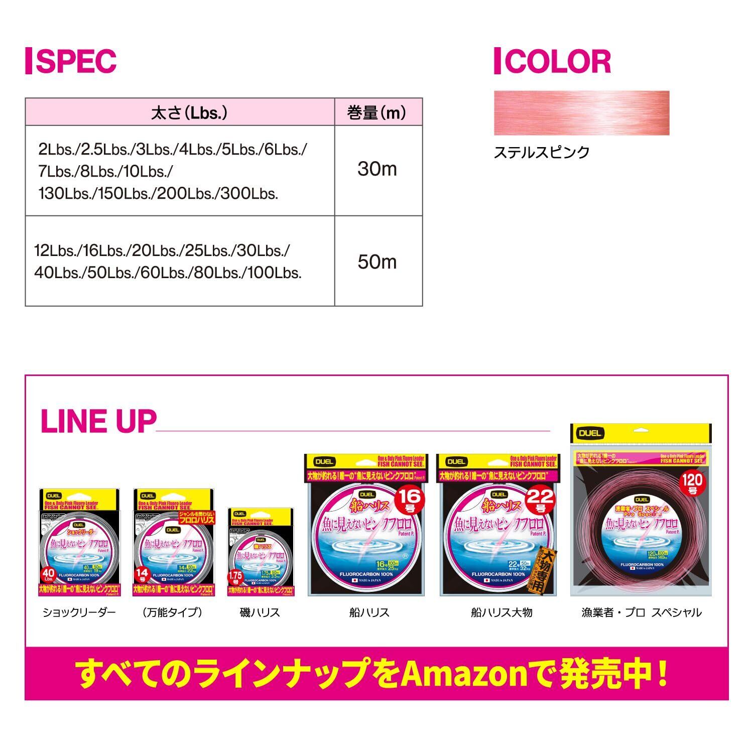 DUEL(デュエル) 魚に見えないピンクフロロ ショックリーダー 50m 16Lbs