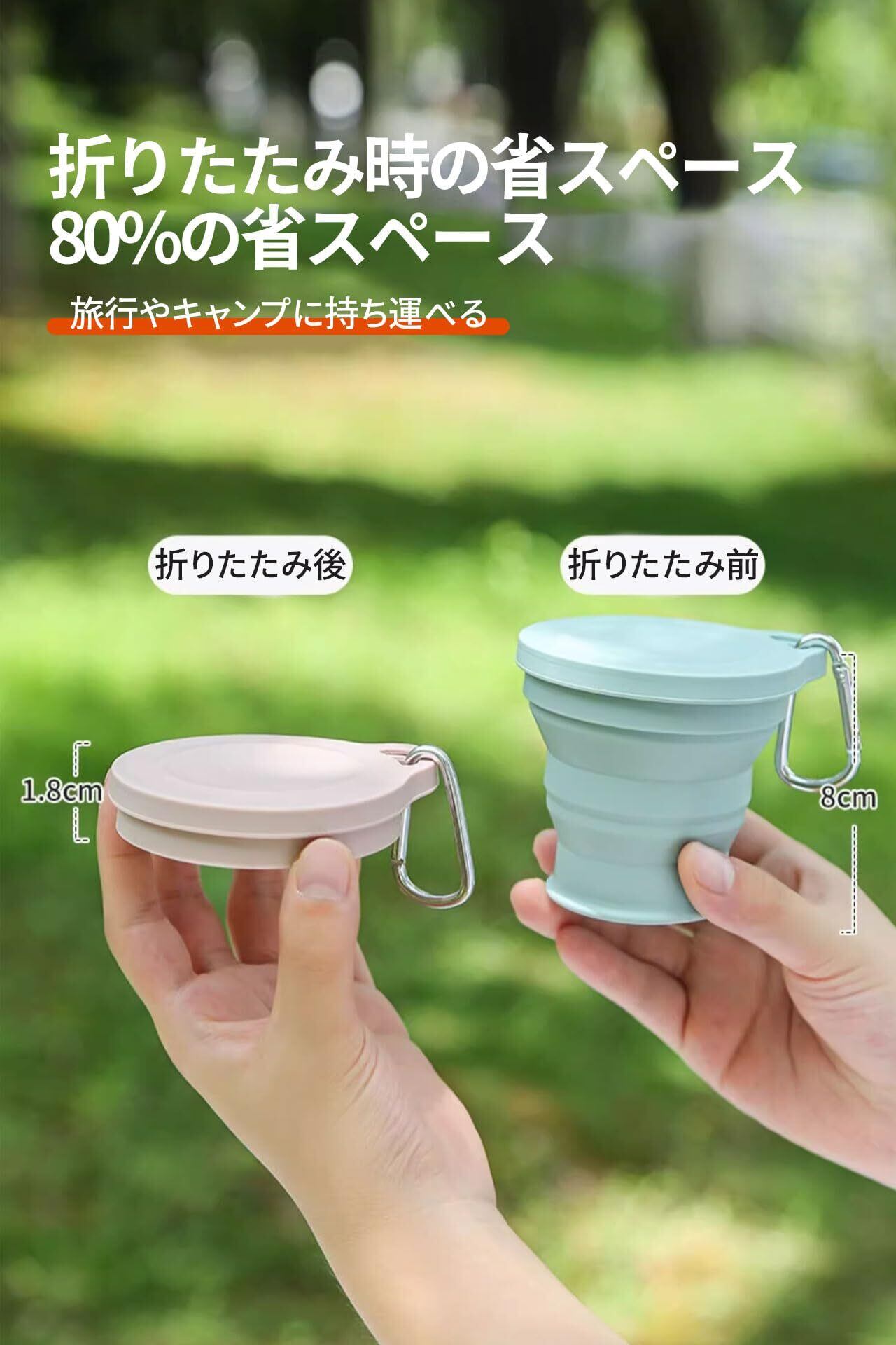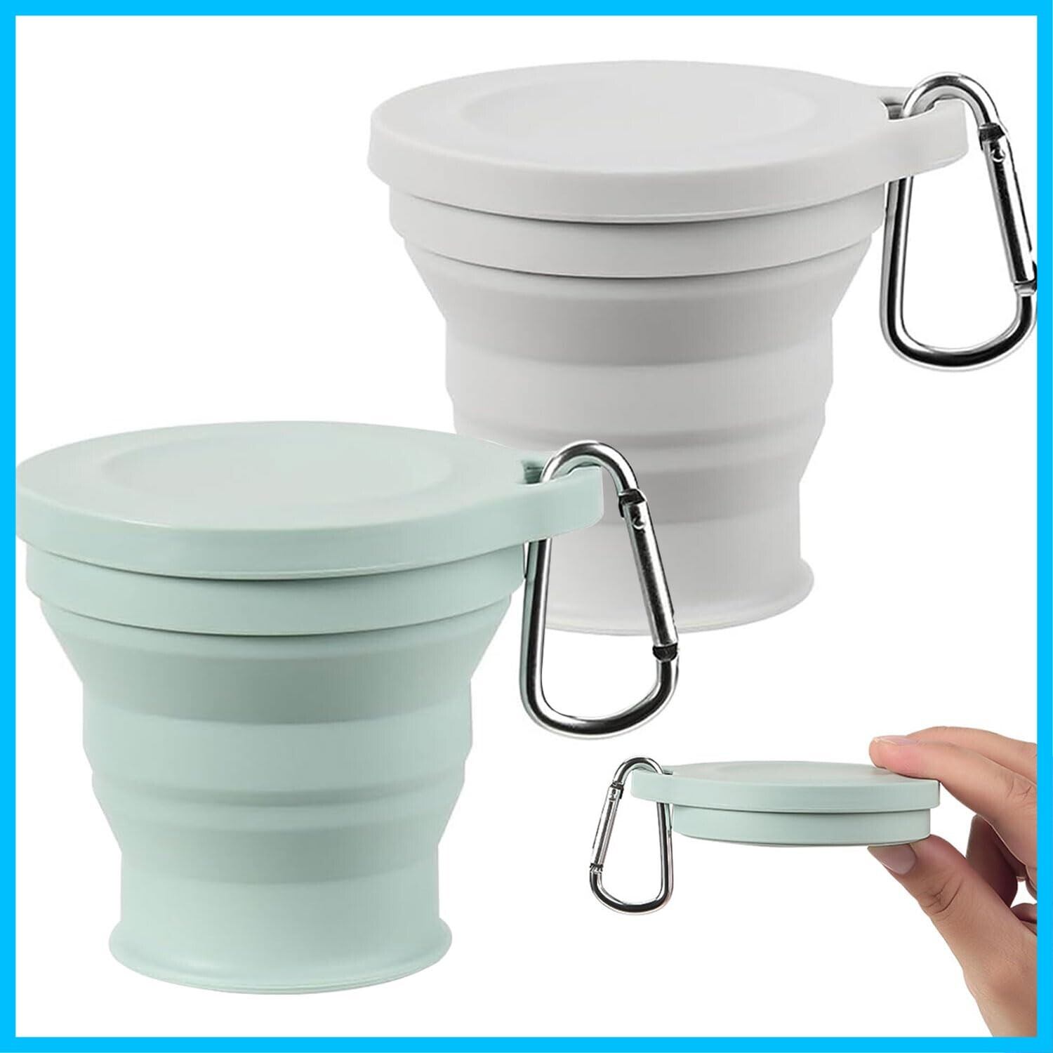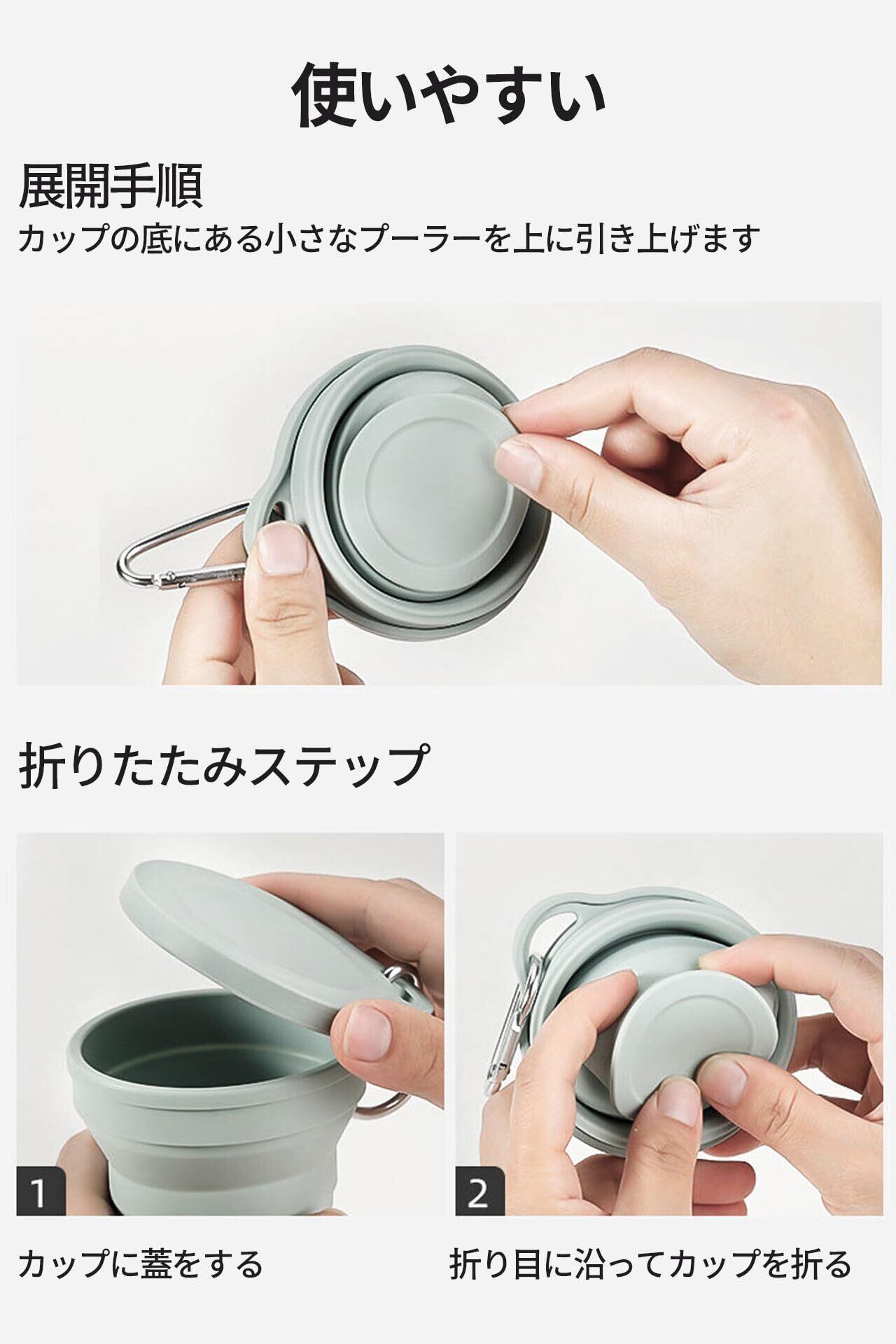 折り畳みコップ 2個入り 折りたたみコップ 蓋 180ml 多機能 耐熱 ポータブル おしゃれ 平皿 軽量 旅行 キャンプ アウトドア 通勤 (グリーン+グレー)