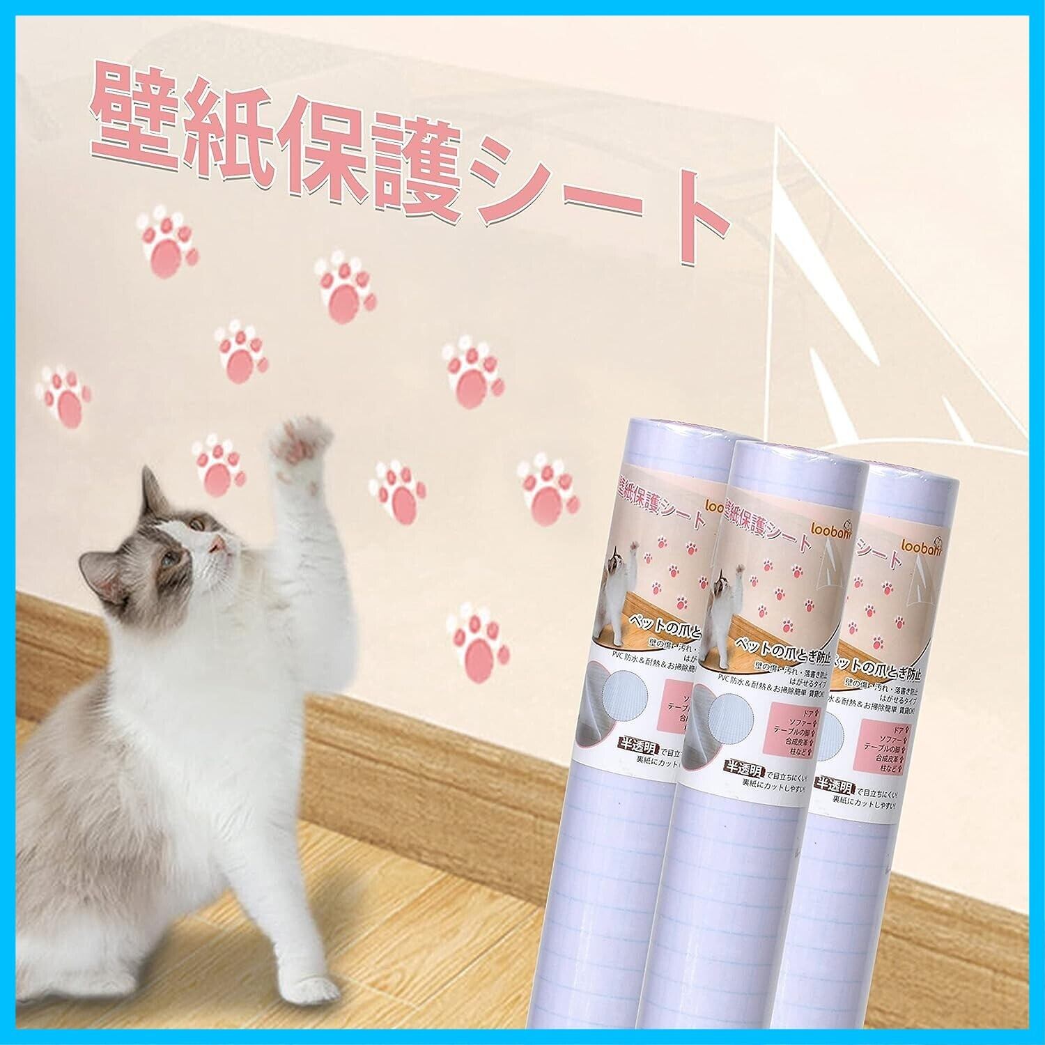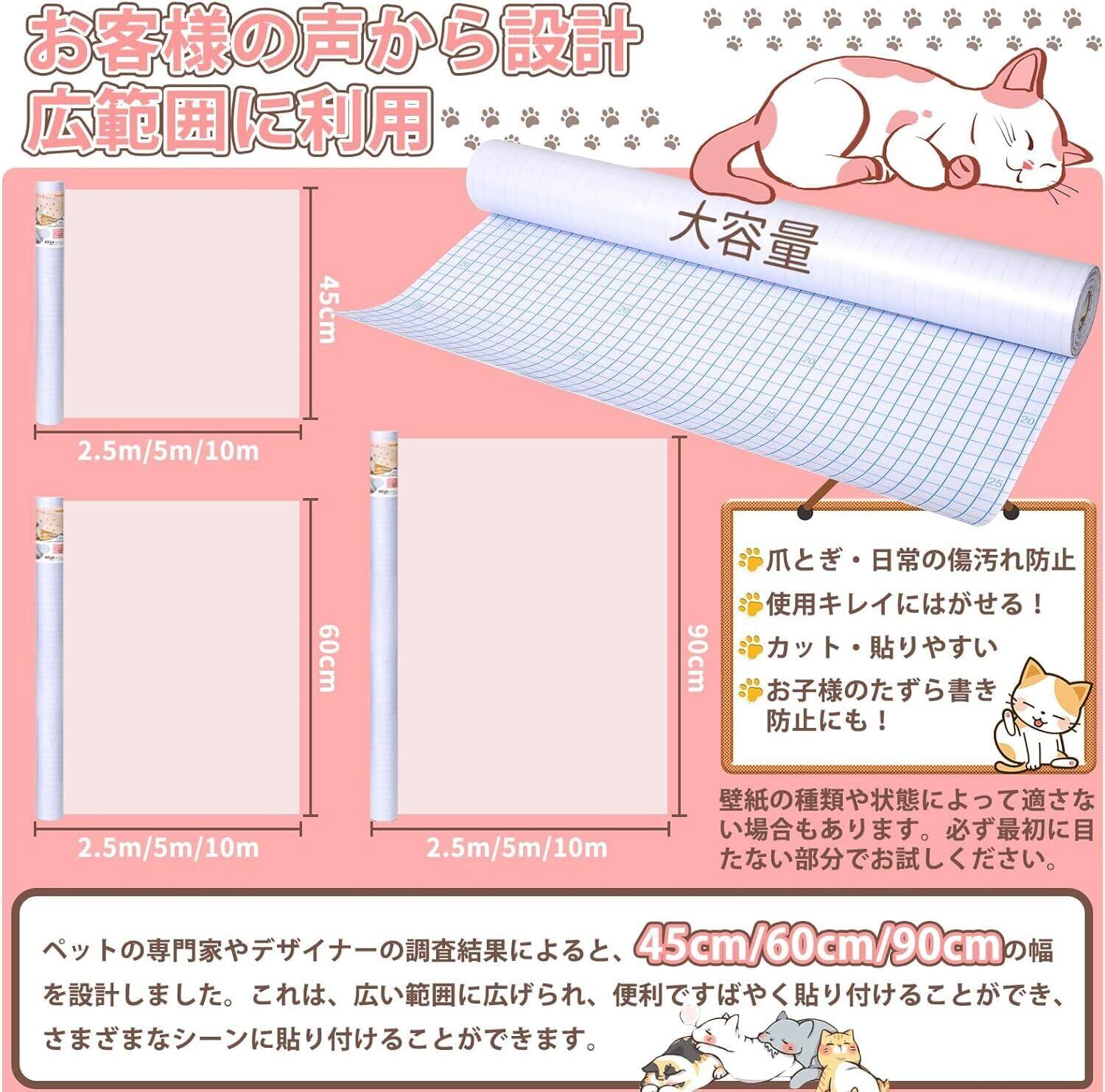 LOOBANI 猫 壁紙保護シート 壁紙シール おしゃれ はがせる壁紙 爪とぎ防止シート 半透明 ペット ひっかき 防止 はがせるタイプ 貼るだけ簡単 落書き防止 賃貸OK 壁/家具/柱/机/ドアなどの傷 汚れ防止 (45cm*2.5m)