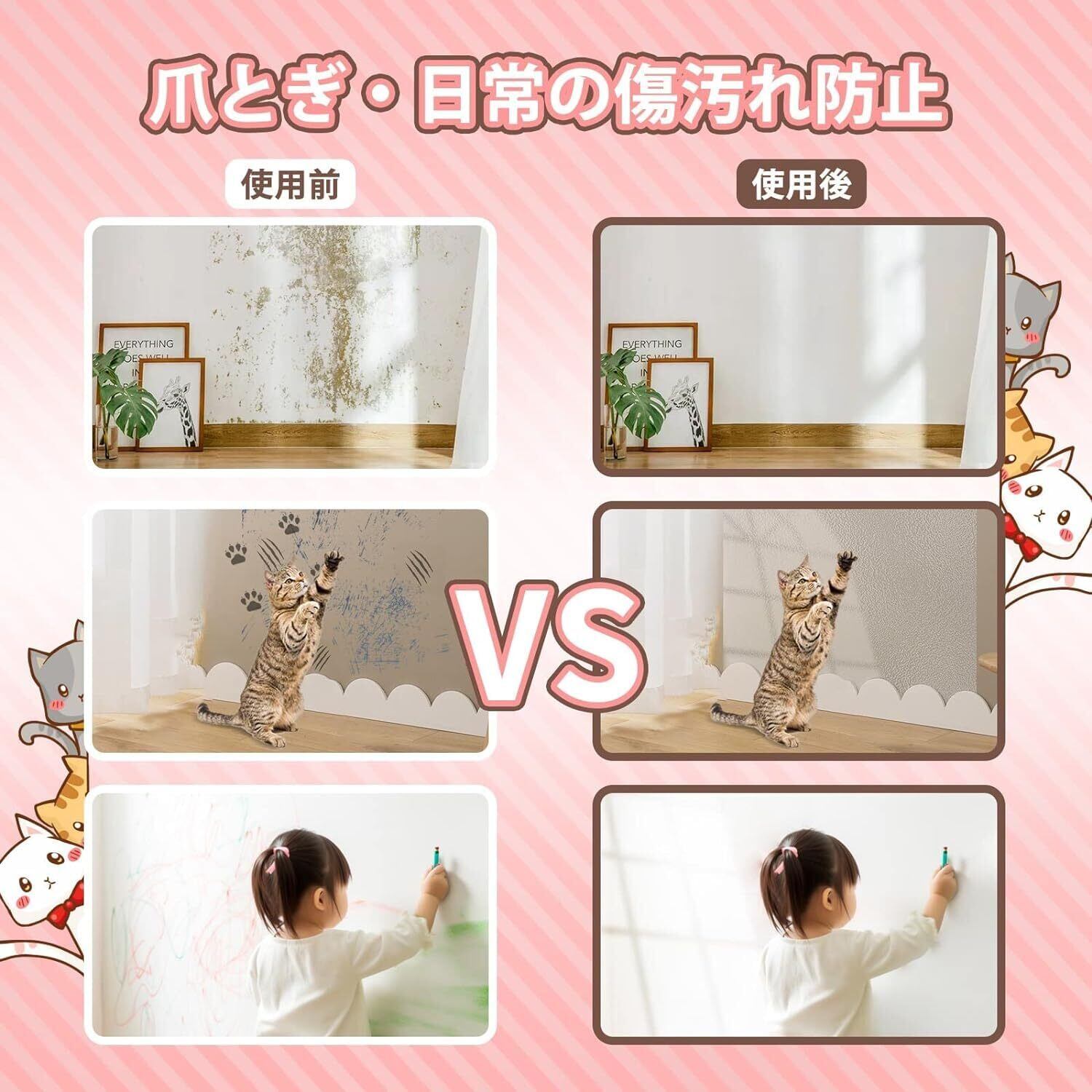 【防水&耐熱&お掃除簡単】:猫 かべ 保護シートは耐熱性のPVC接触紙で制作、PVC素材で防水効果。汚れた場合はすぐに拭き取ることができるので、お手入れにとても便利です。防水機能により、防カビにもなる長持ちの壁紙です。