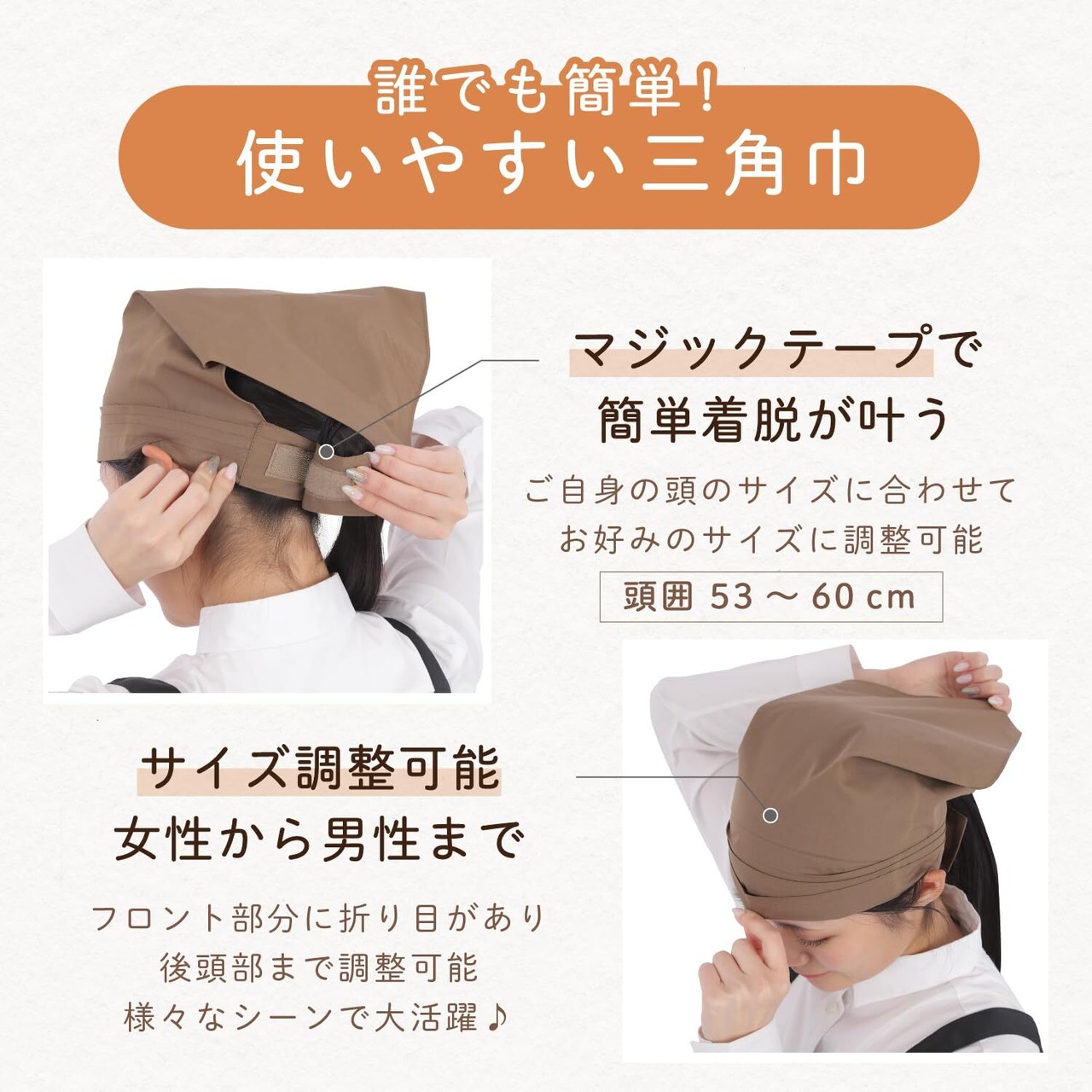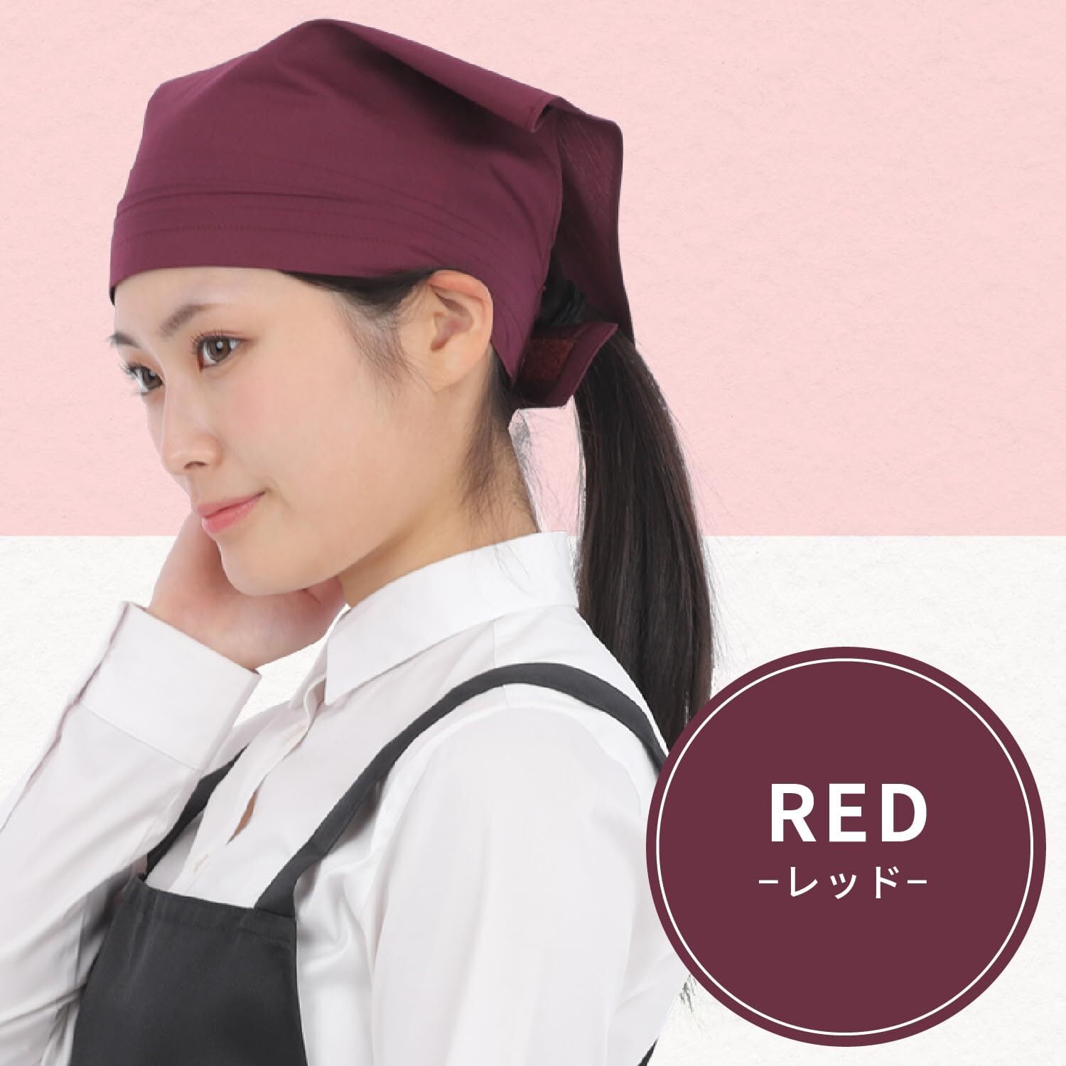 三角巾 マジックテープ 簡単着脱 カフェ 調理実習 料理教室 清掃 美容院 業務用 家庭用 男女兼用 レッド
