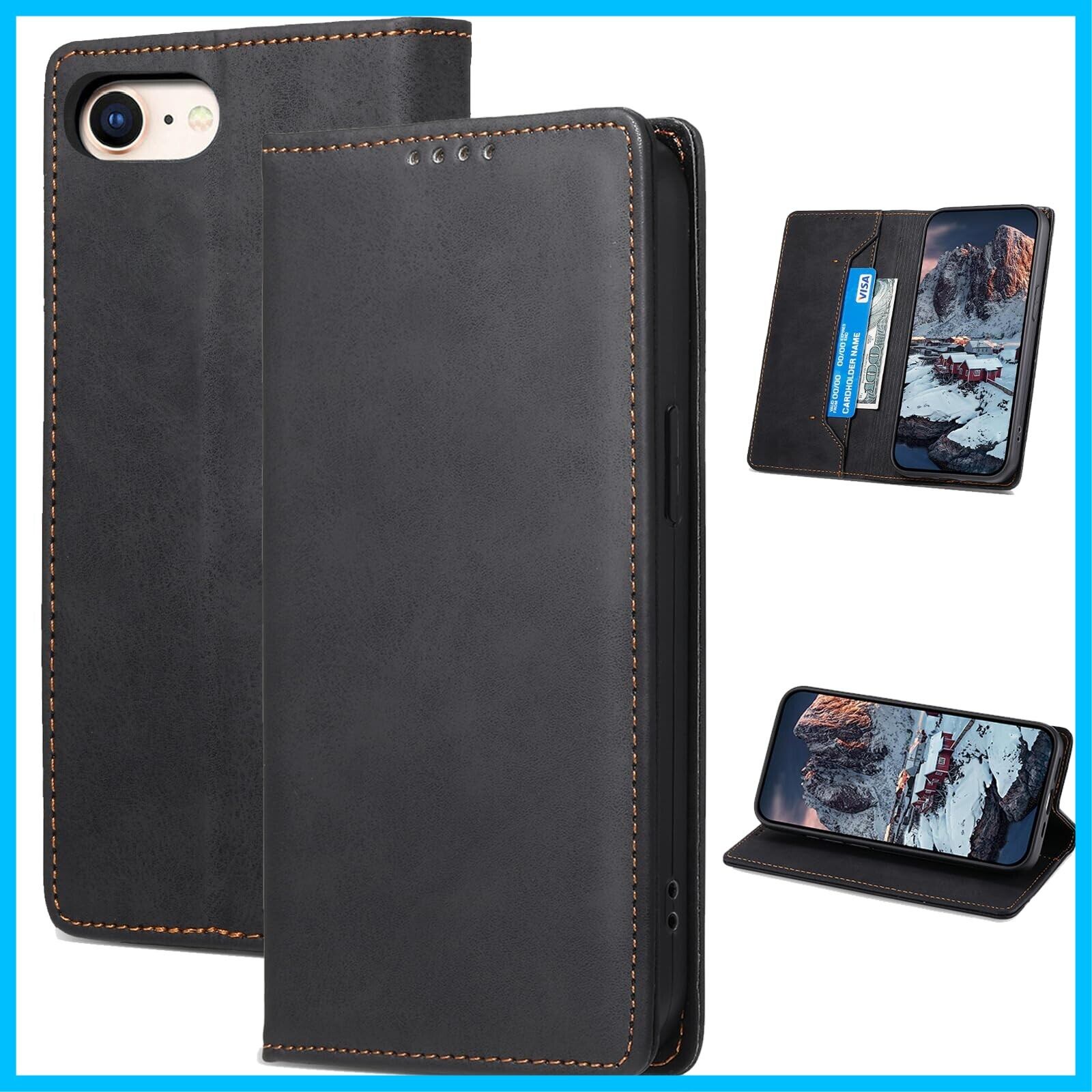 PinLiSheng iPhone SE ケース 手帳型 第2世代 第3世代 スマホケース iPhone 8 7 携帯カバー レザー 軽量 薄型 耐衝撃 耐摩擦 全面保護 マグネット式 カード収納 スタンド機能 4.7インチ対応,ブラック