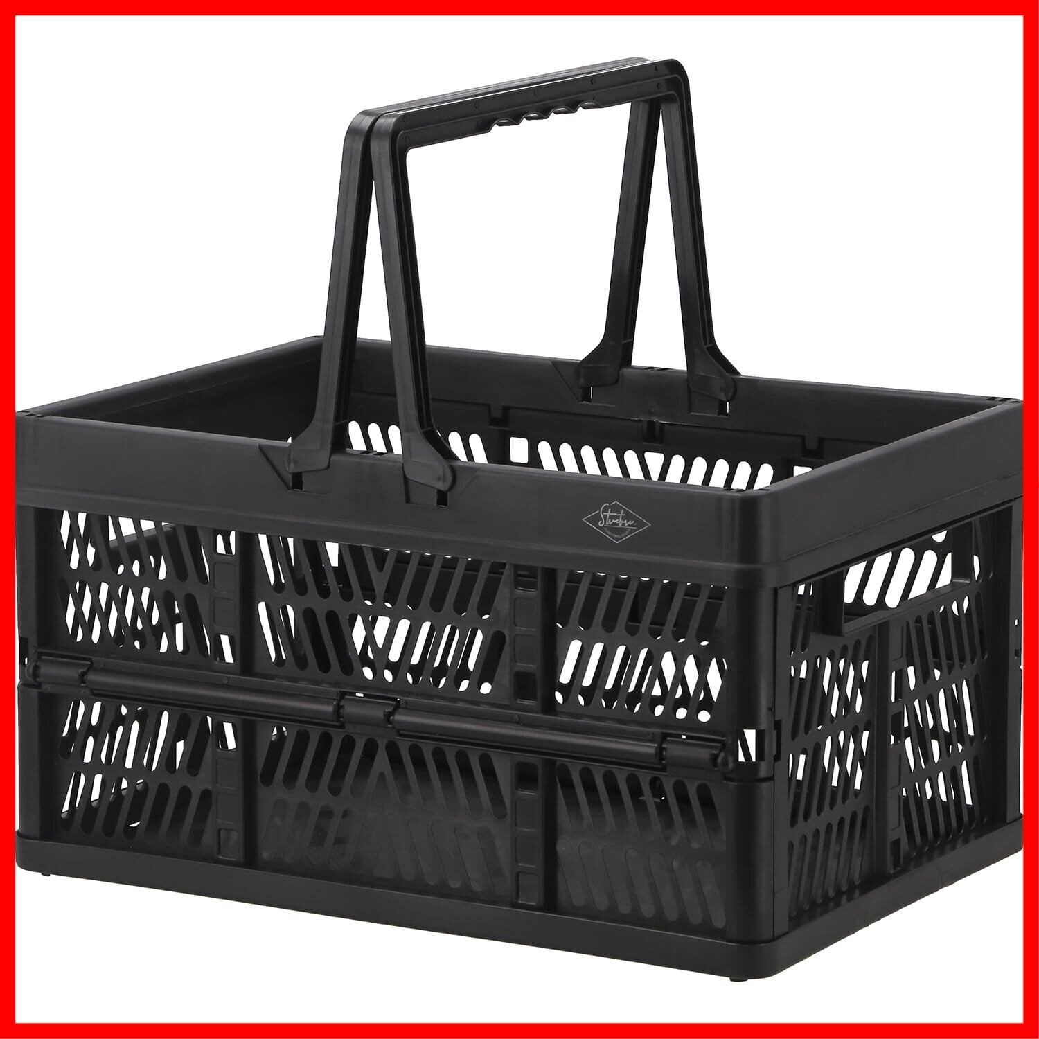 不二貿易(Fujiboeki) 折りたたみ コンテナ かご 幅45×奥行31.5×高さ25㎝ ブラック 取っ手付き 持ち運び簡単 内容量26L Lサイズ 86450