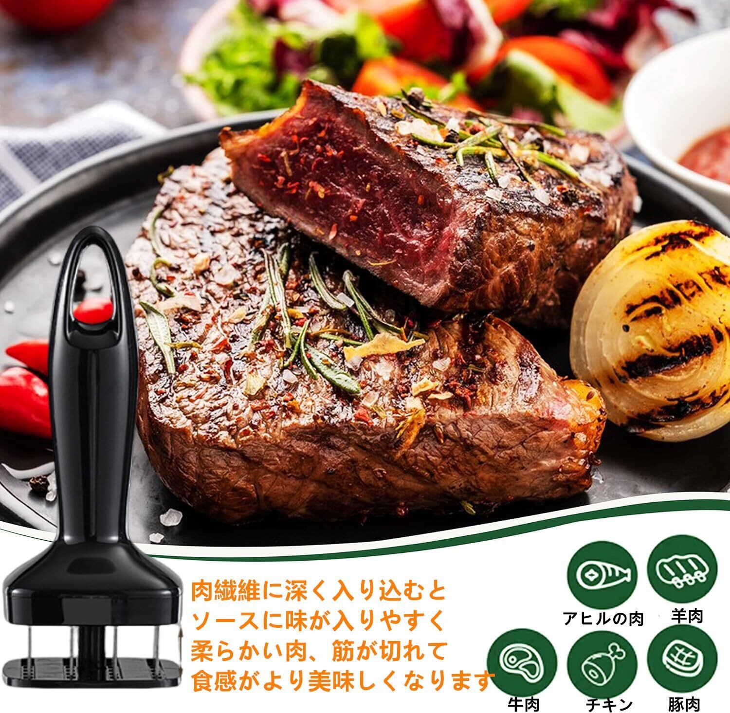 SensaBliss 肉筋切り器 ミートテンダライザー 肉叩き 肉たたき 24本刃 ステンレス鋼製 お肉が柔らかくなる 肉刺し器 筋切り ミートプレス キッチン便利グッズ ビーフ/チキン/ポーク 肉押さえ 調理ミート ニードルツール 調理器具 (ブラック)