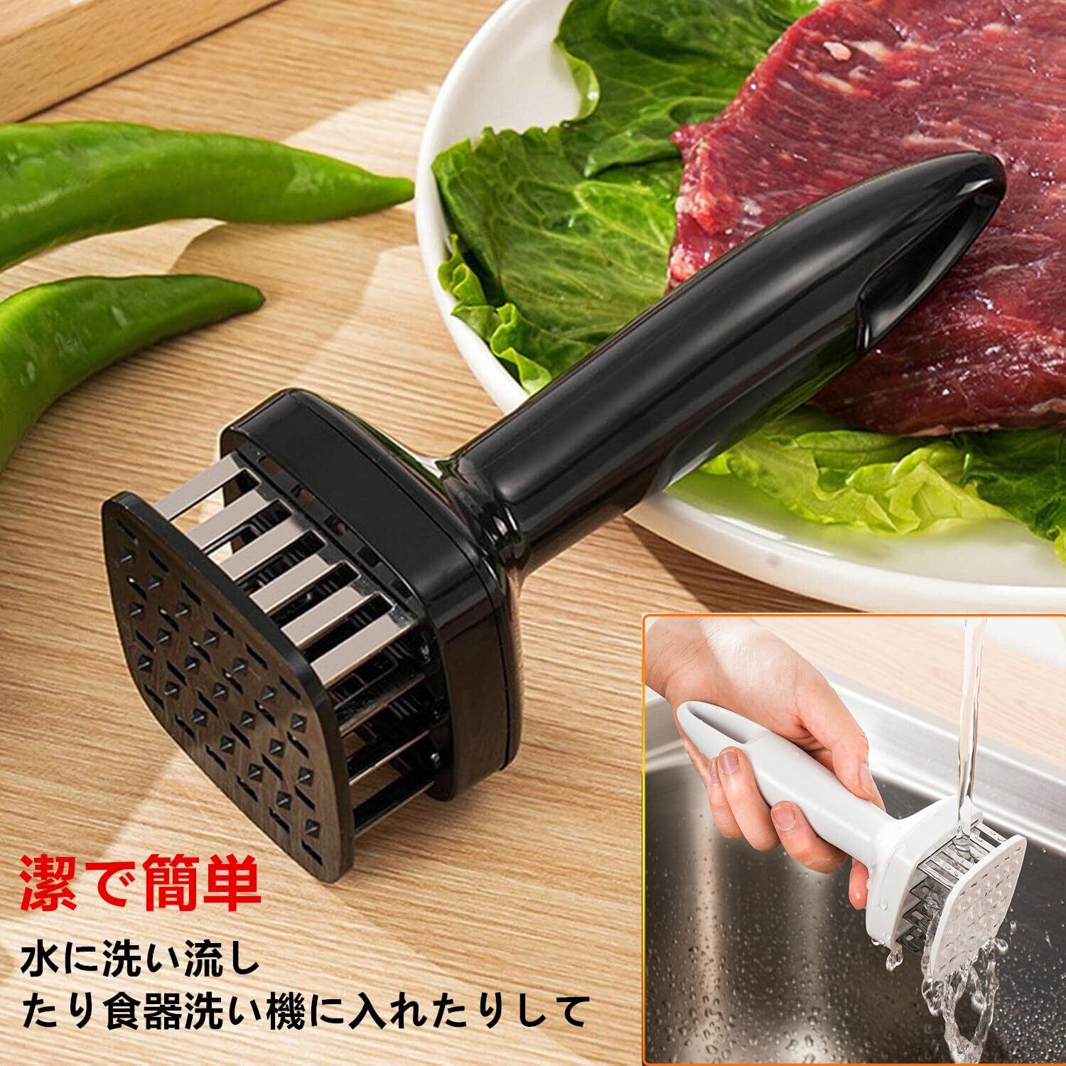 【高品質】ミートテンダライザーは高品質430ステンレス鋼で作られ、材質は硬く、耐久性があり、腐食やさびがない。均一に分布する24本の鋼針を持ち、肉類を急速に柔らかくすることができる。ブレードの両側は研磨先端処理されており、頻繁に使用しても鋭利さを維持することができます。